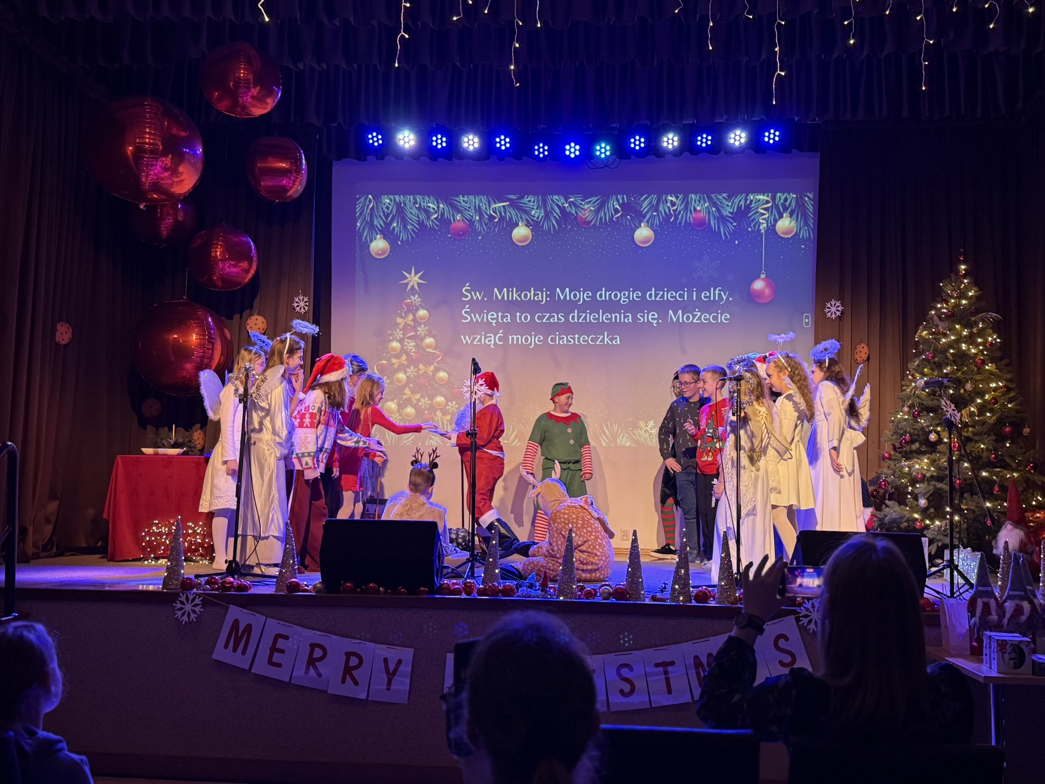 Spektakl wprowadził nas w niezwykle radosny i barwny nastrój świąteczny, wywołał wiele pozytywnych emocji i uśmiechów na twarzy. Aktorzy odgrywający role rodziców, dzieci, aniołków, elfów i babci mogli pochwalić się wspaniałym śpiewem, tańcem oraz oczywiście doskonałą znajomością swoich kwestii w języku angielskim! Nie zabrakło również najważniejszego bohatera - Świętego Mikołaja, który wraz ze swoimi pomocnikami - reniferami przypomniał nam jak ważną wartością jest umiejętność dzielenia się.