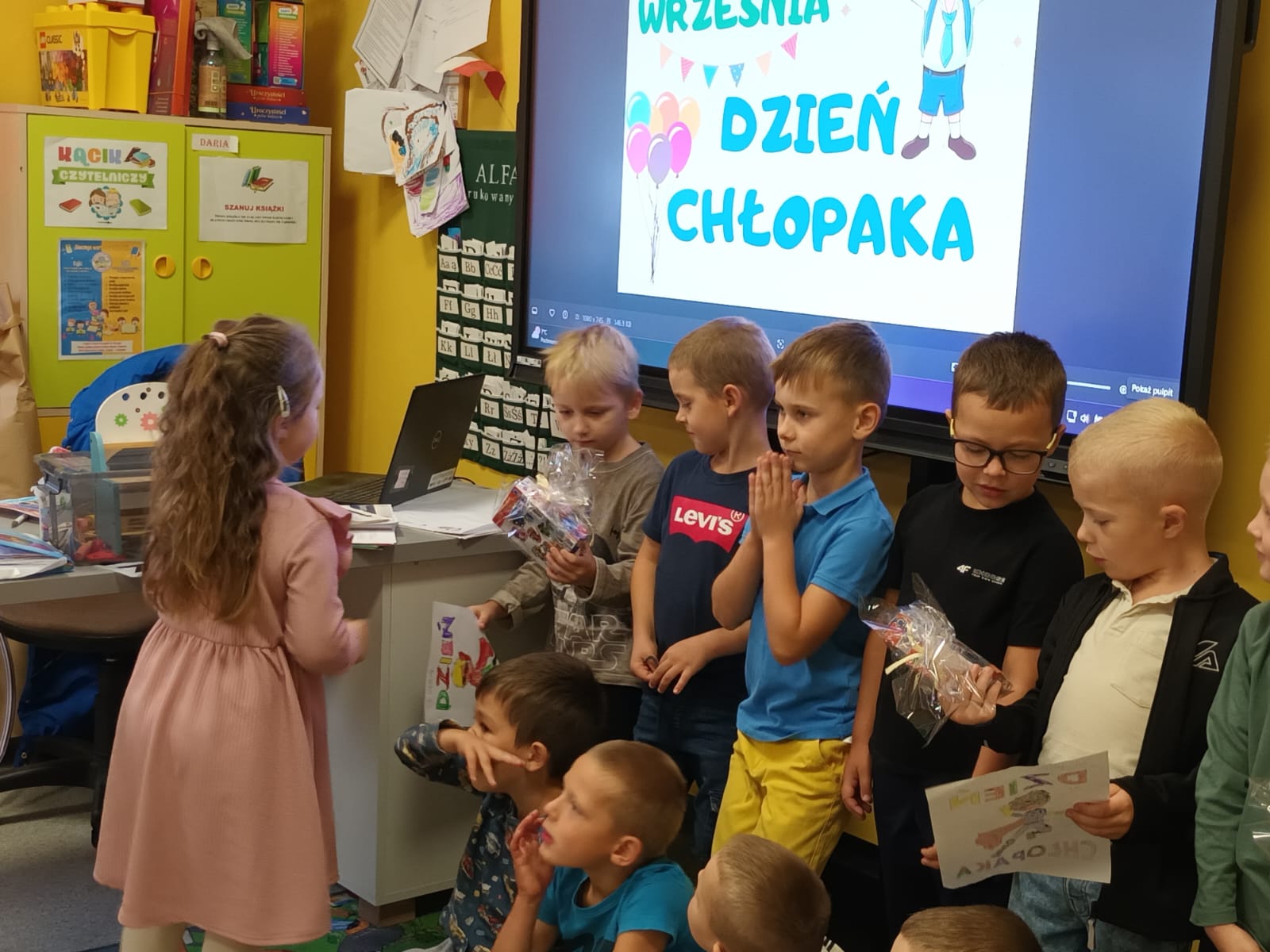 Zgodnie z tradycją chłopcy otrzymali od koleżanek upominki oraz kolorowe laurki.