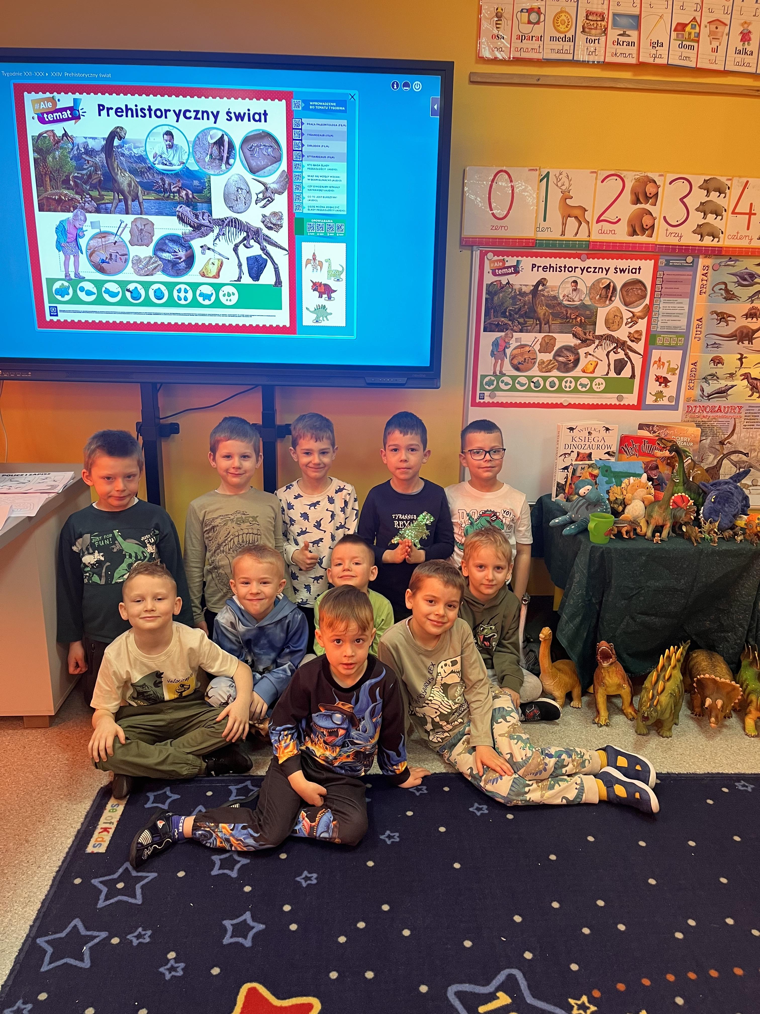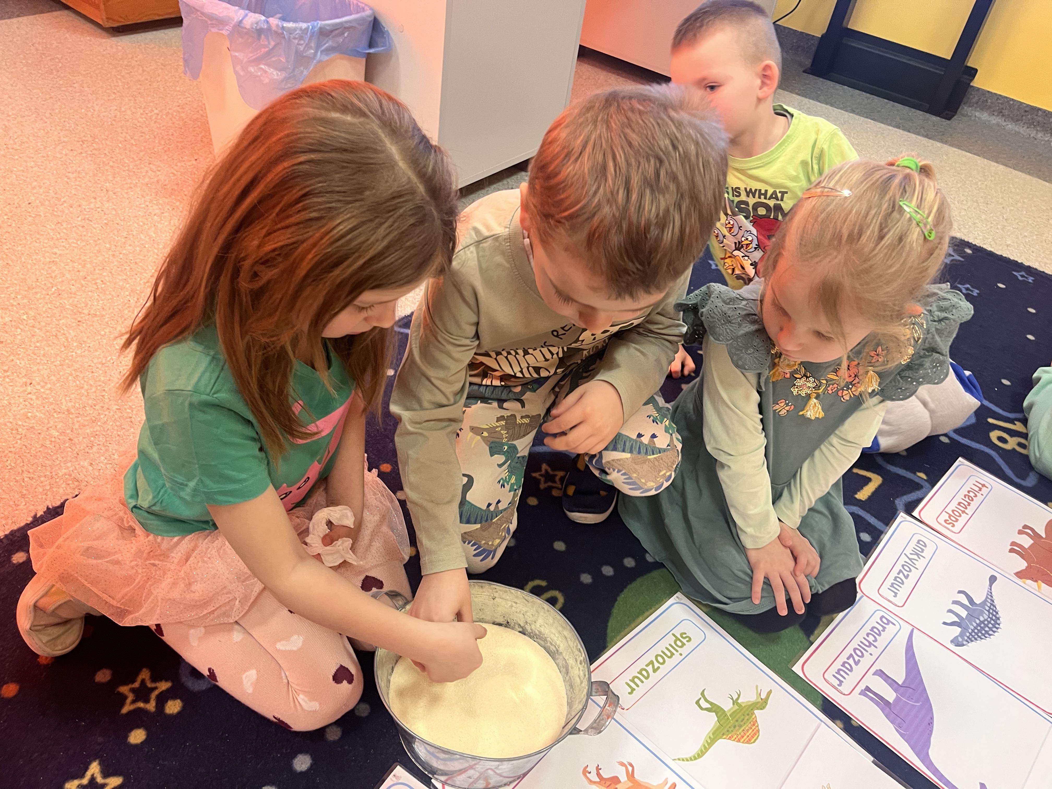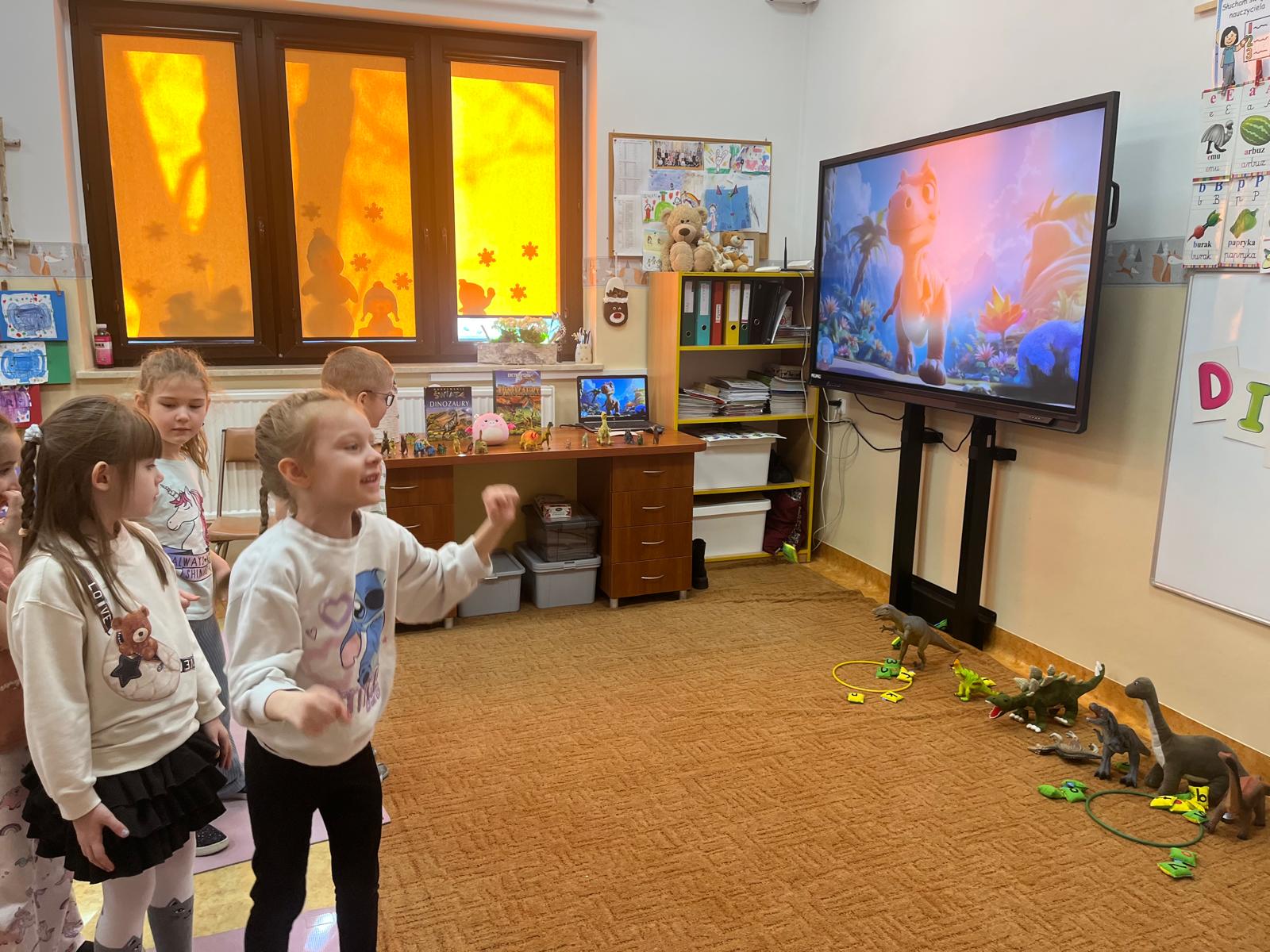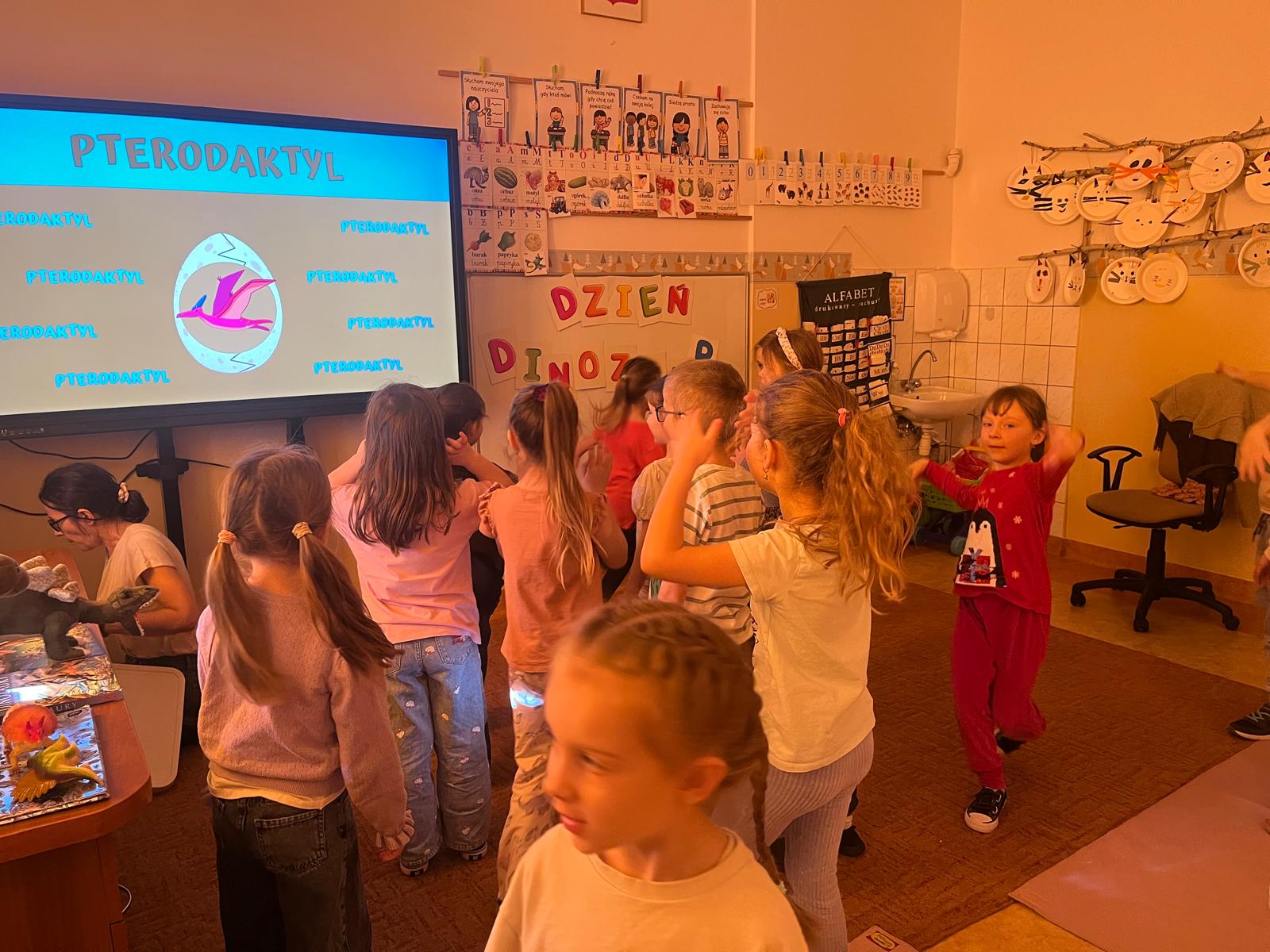 Przedszkolaki poznały gatunki, zwyczaje i życie prehistorycznych zwierząt,