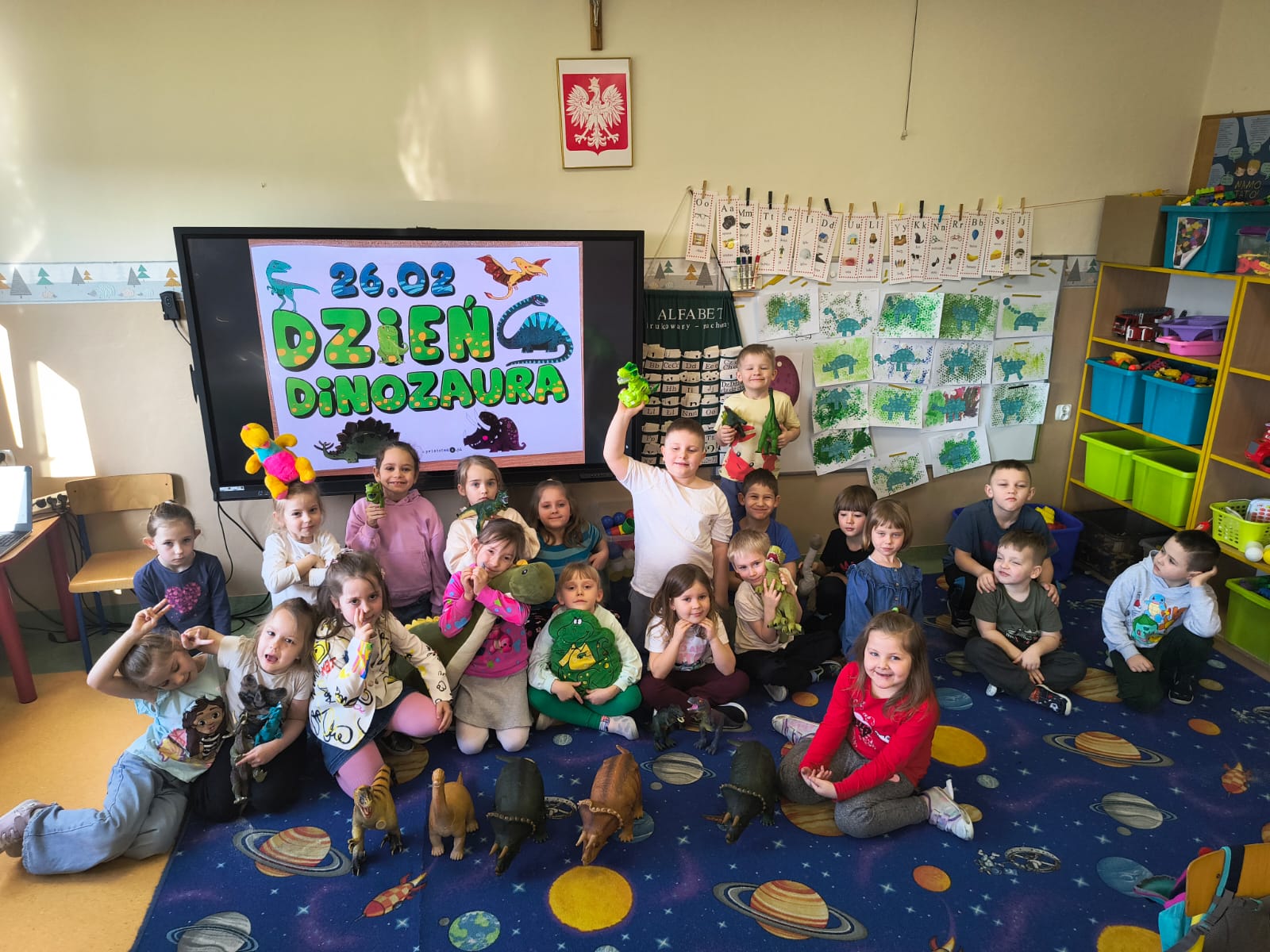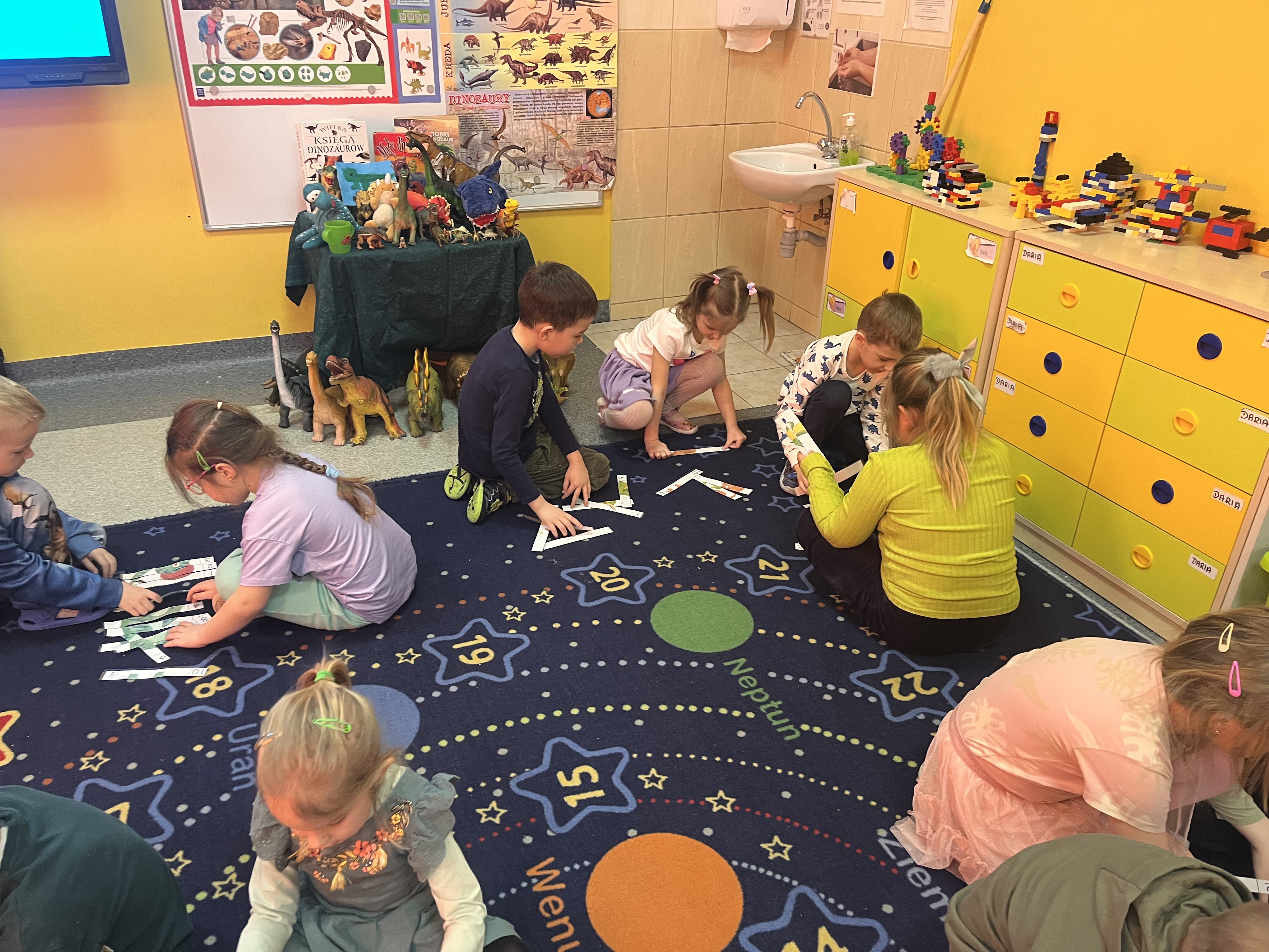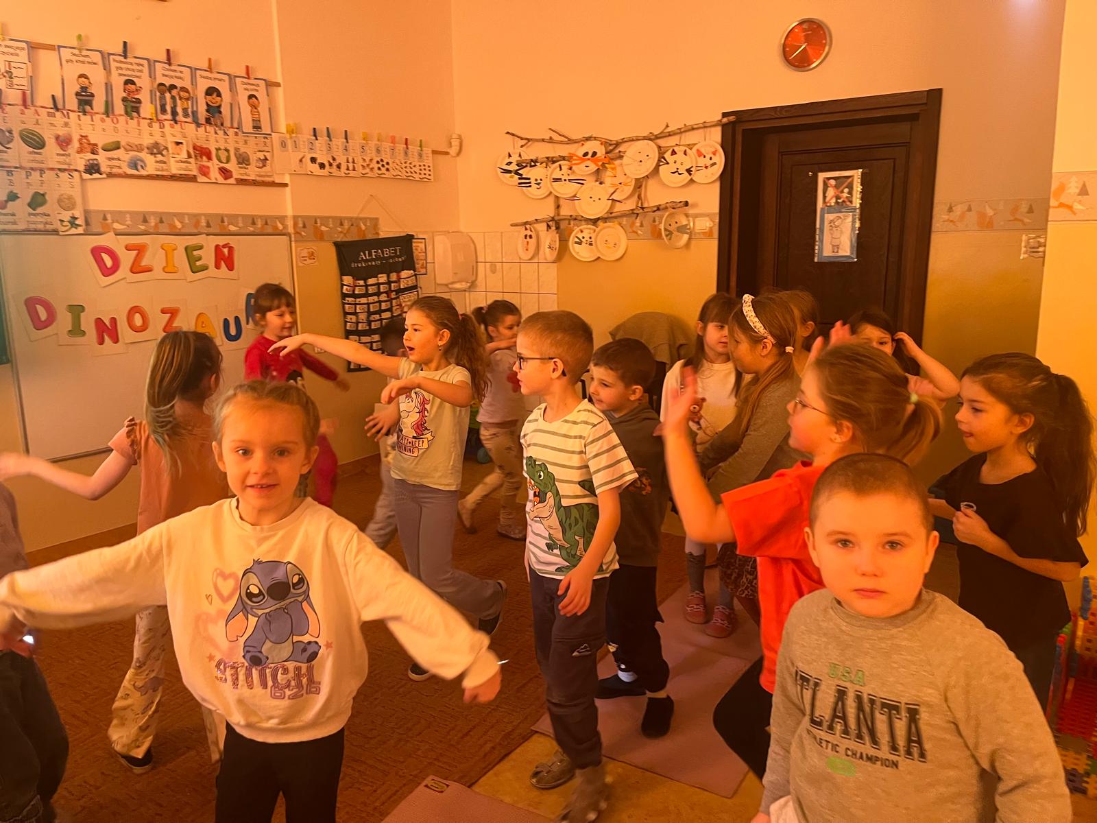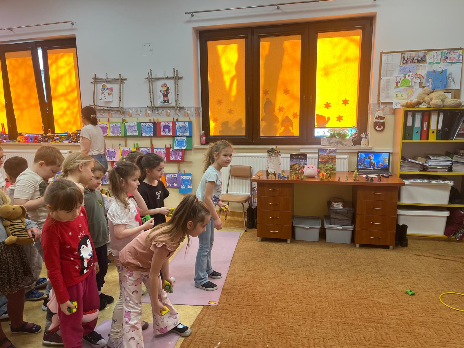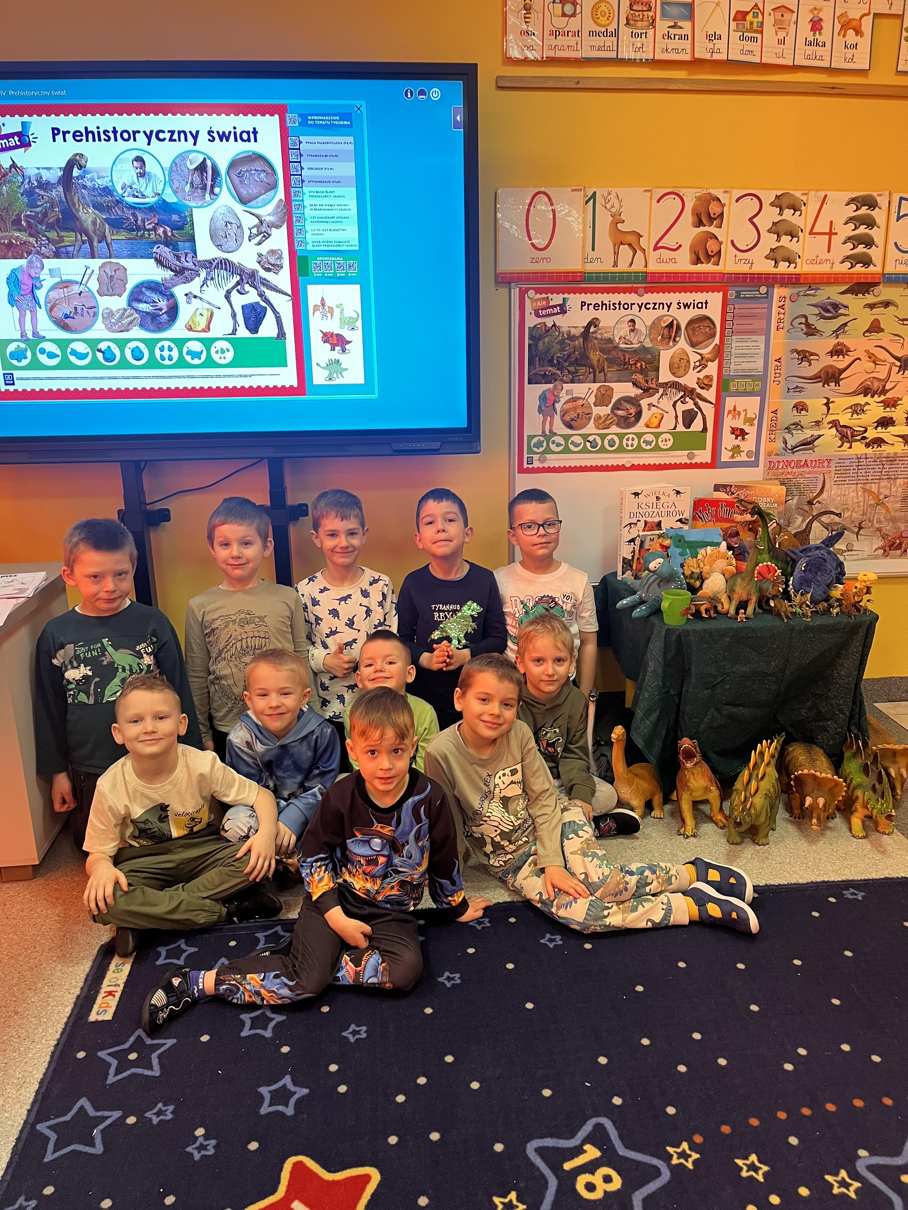 Przedszkolaki poznały gatunki, zwyczaje i życie prehistorycznych zwierząt,