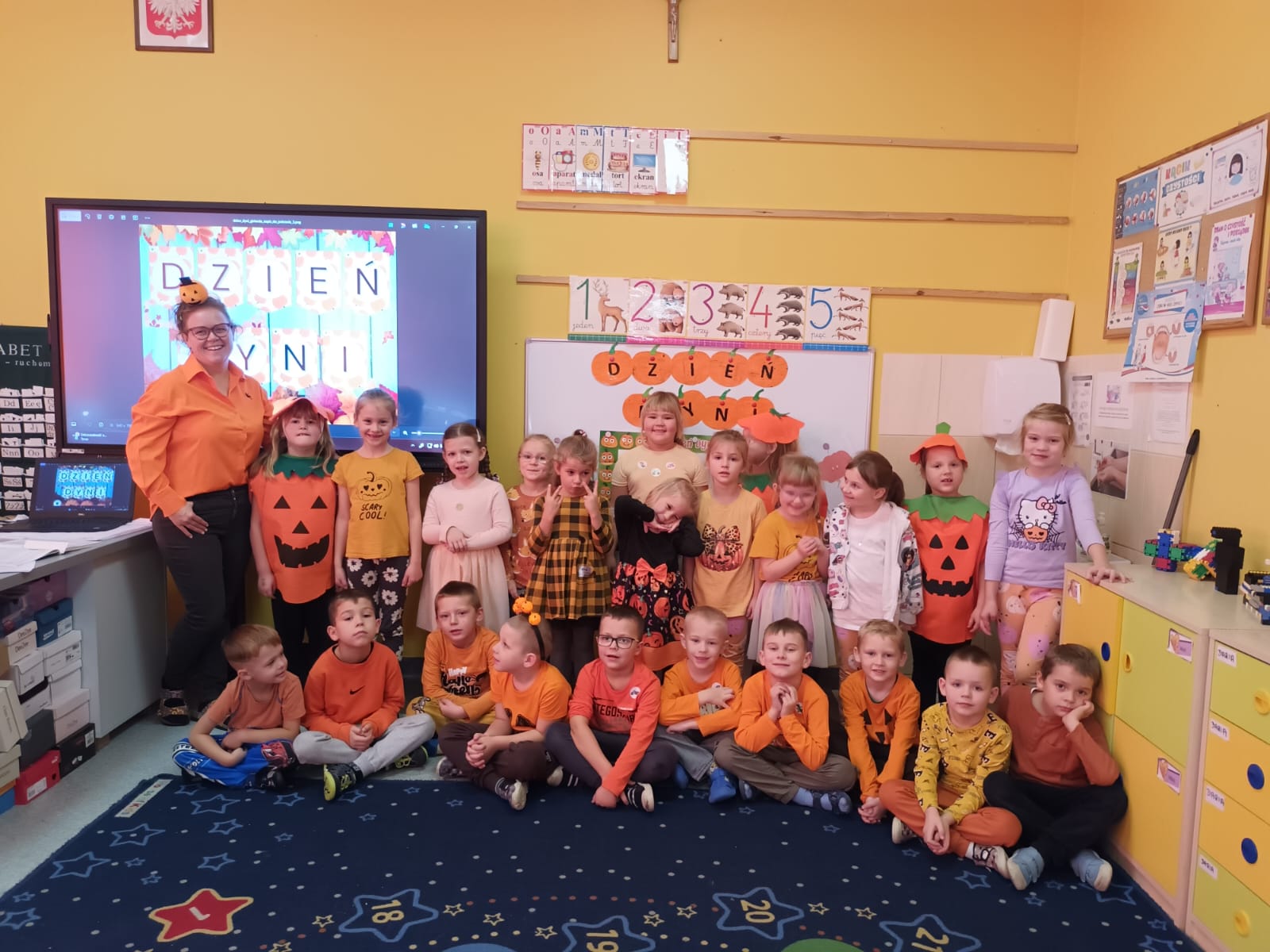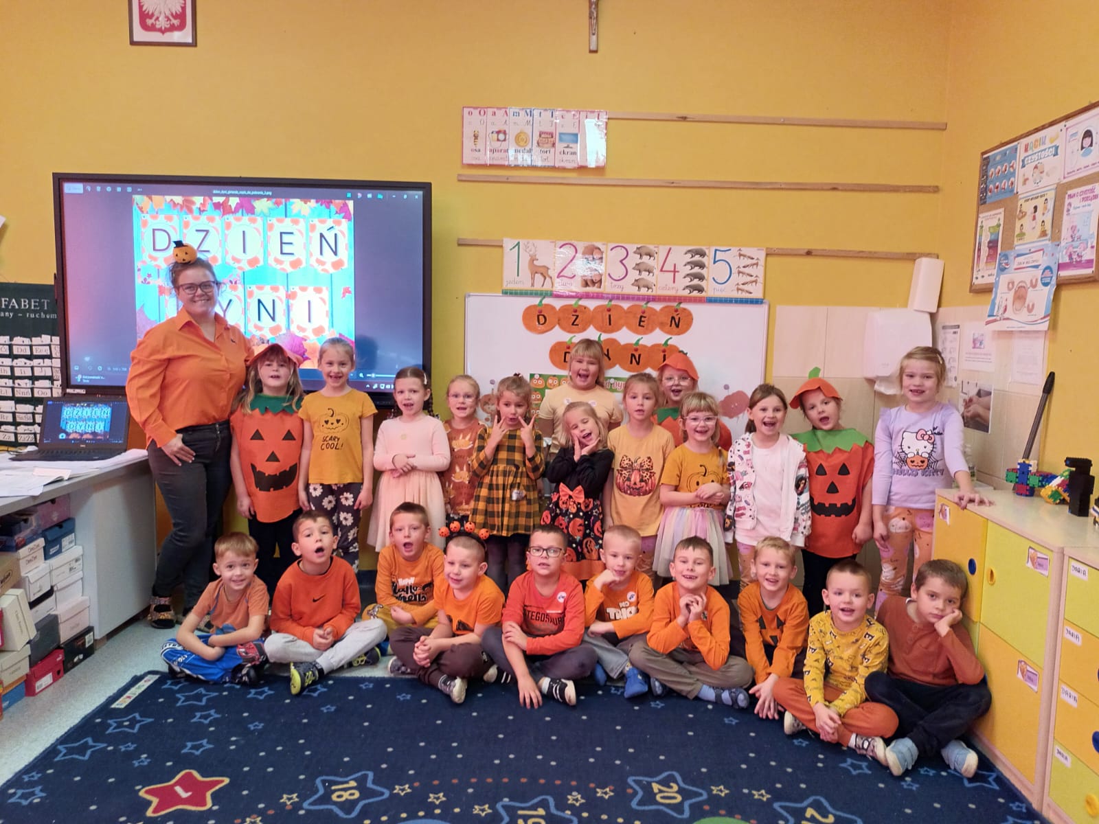 Dzieci w tym dniu ubrały się na kolor pomarańczowy.