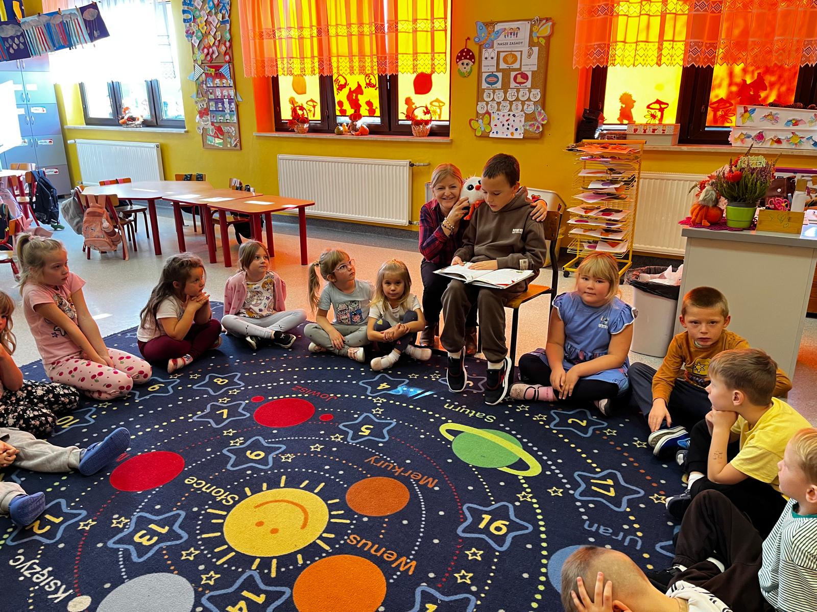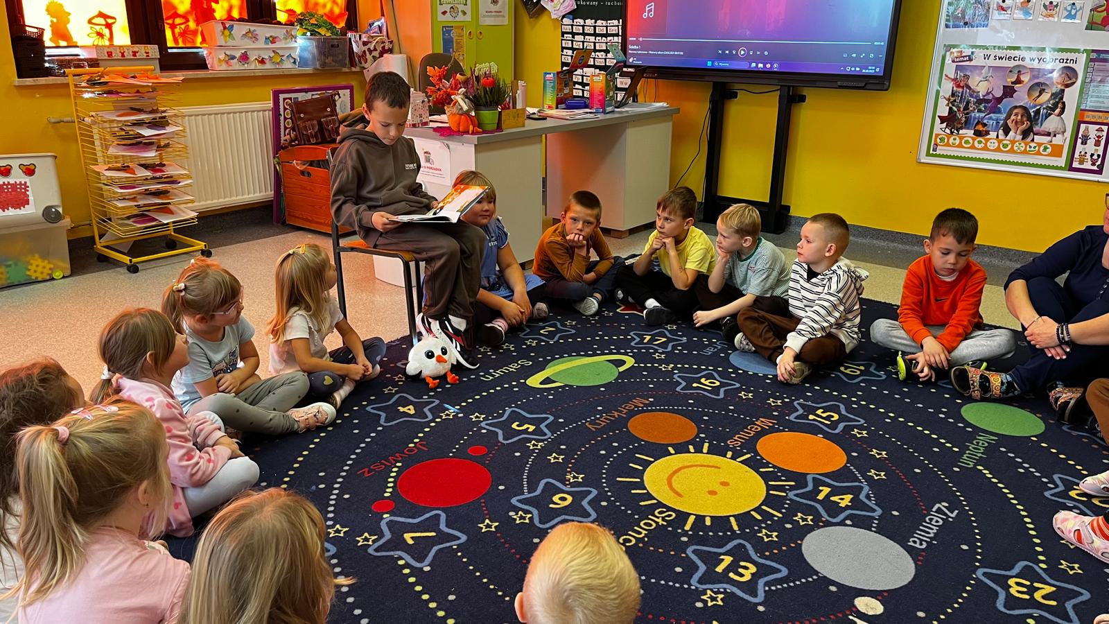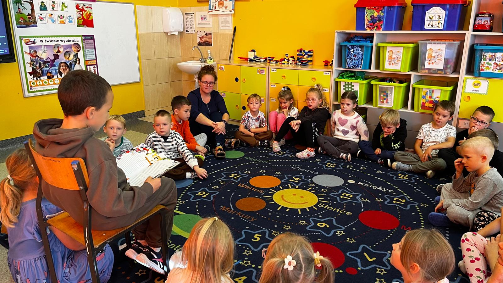 Dnia 20.10.25r., dzieci z grupy "Motylki" uczestniczyły w zajeciach z cyklu "Dzień głośnego czytania - starci czytają młodszym".