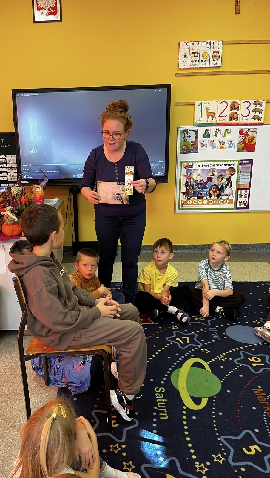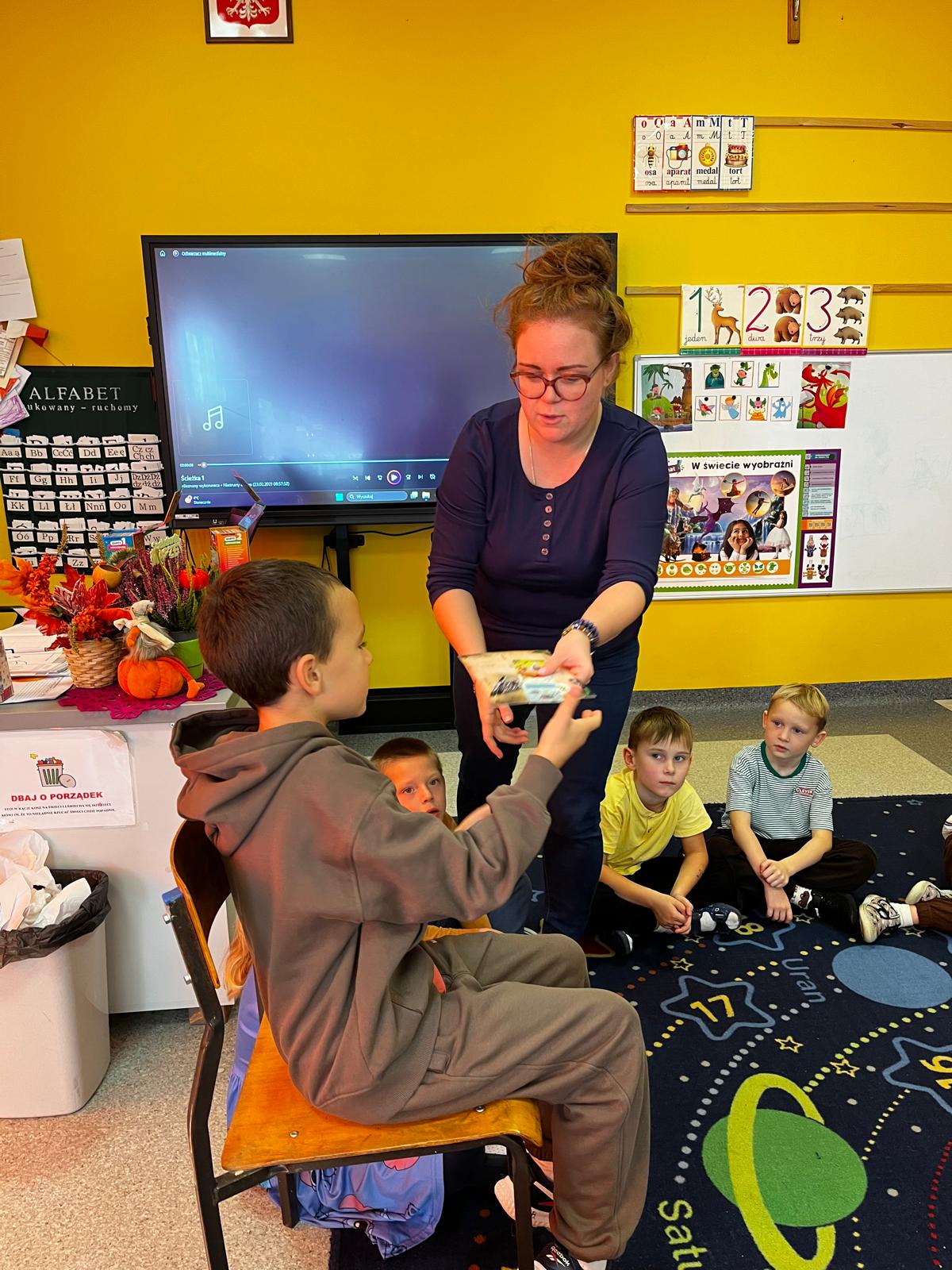 Dzieci z zaciekawieniem wysłuchały czytanego tekstu, po czym musiały odpowiadać na zadane pytania.