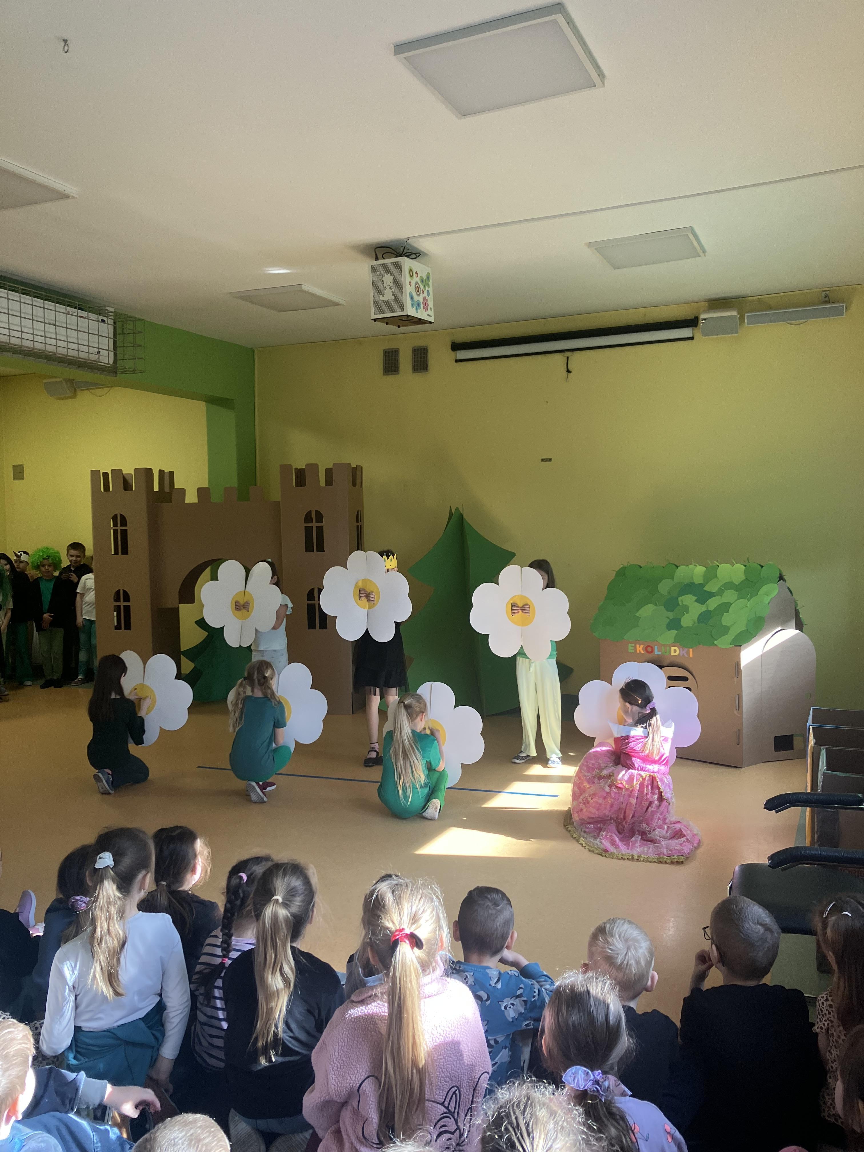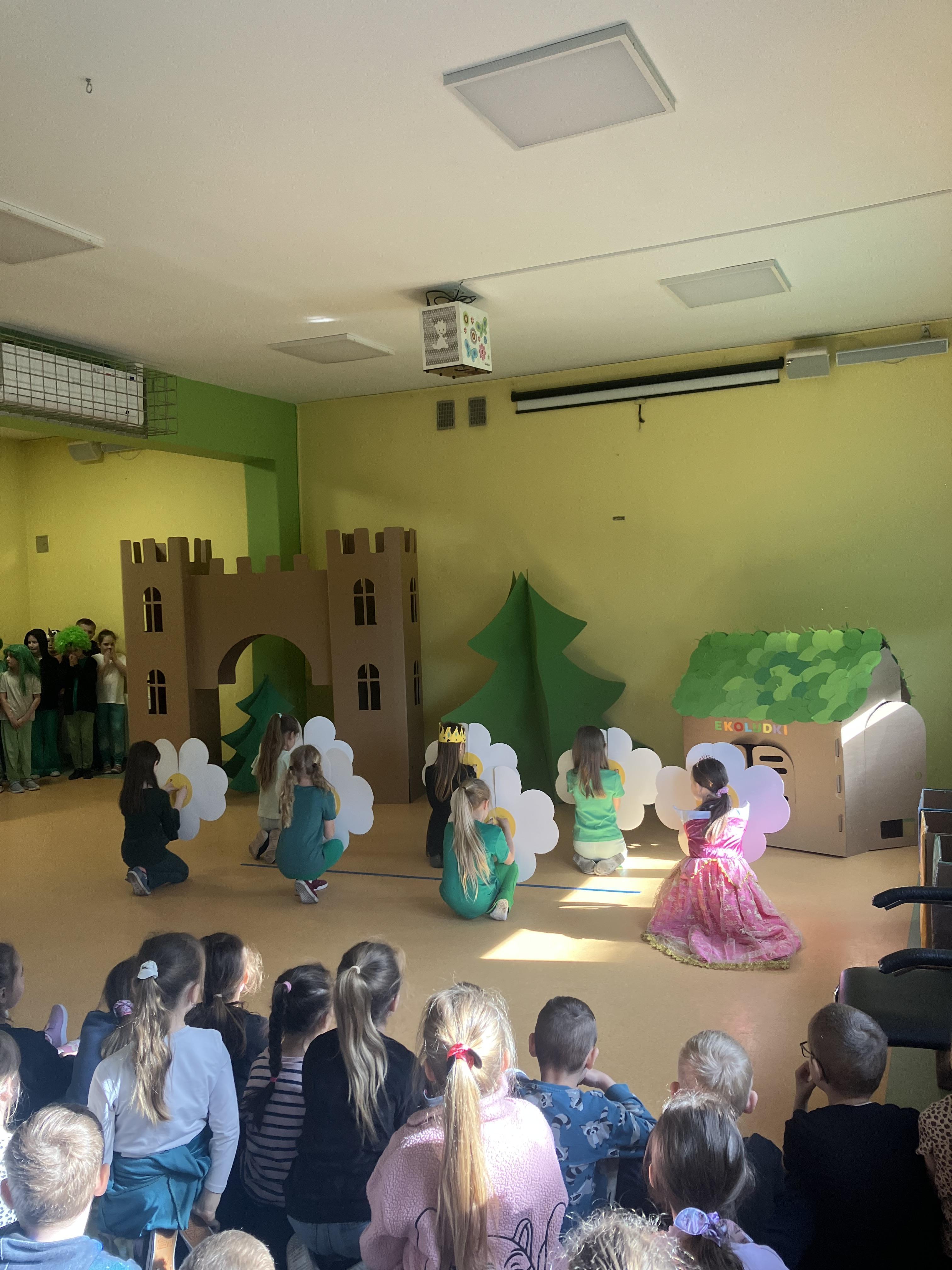 W dniu dzisiejszym klasa 2b przygotowała i zaprezentowała wyjątkowe przedstawienie pt. „Królewna Śmieszka i Ekoludki” z okazji obchodów Międzynarodowego Dnia Ziemi. Spektakl został wystawiony dla uczniów klas 0–3 oraz rodziców.
