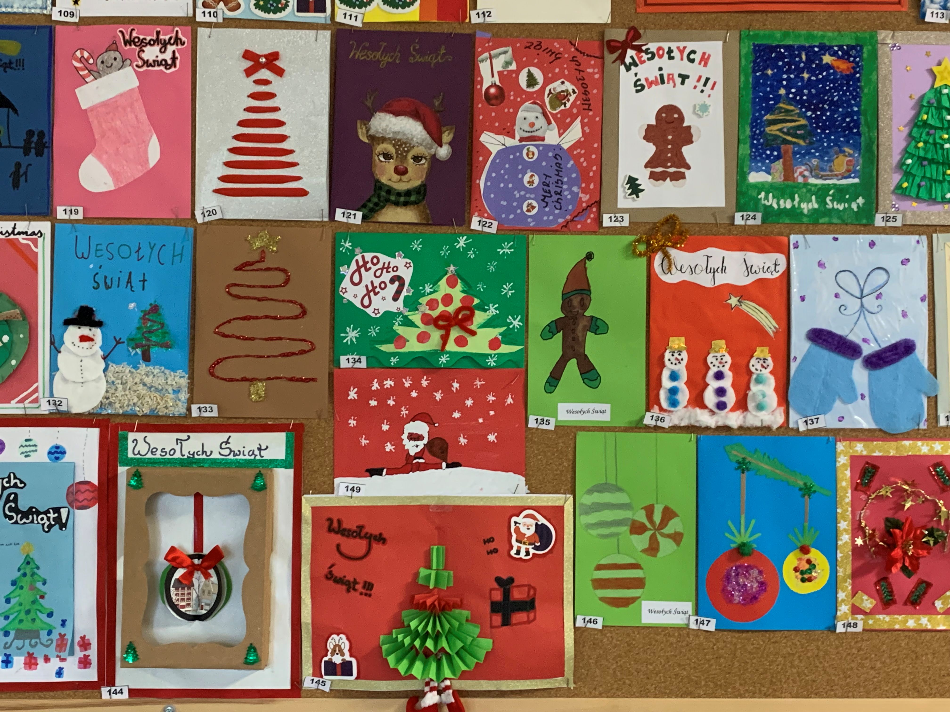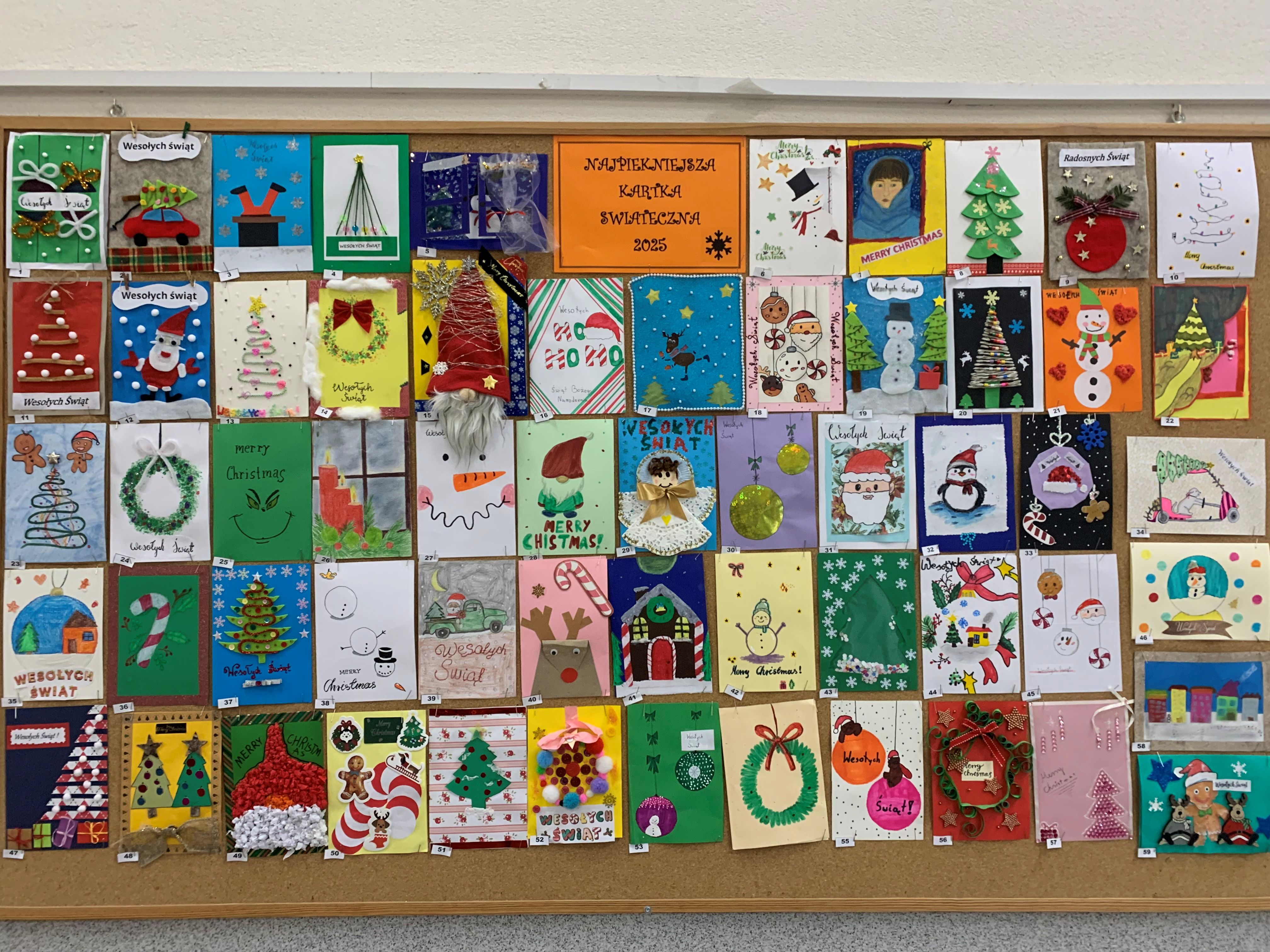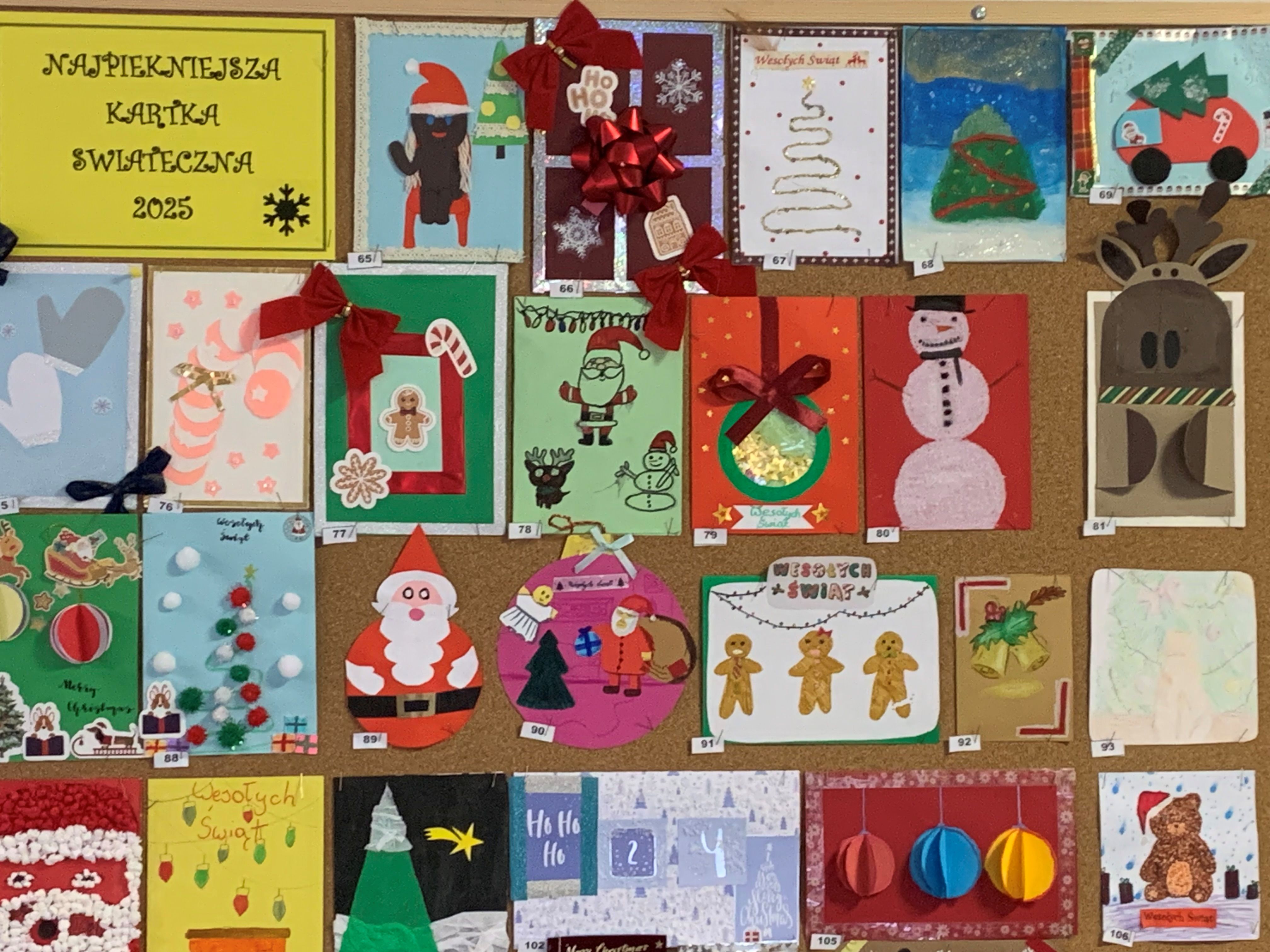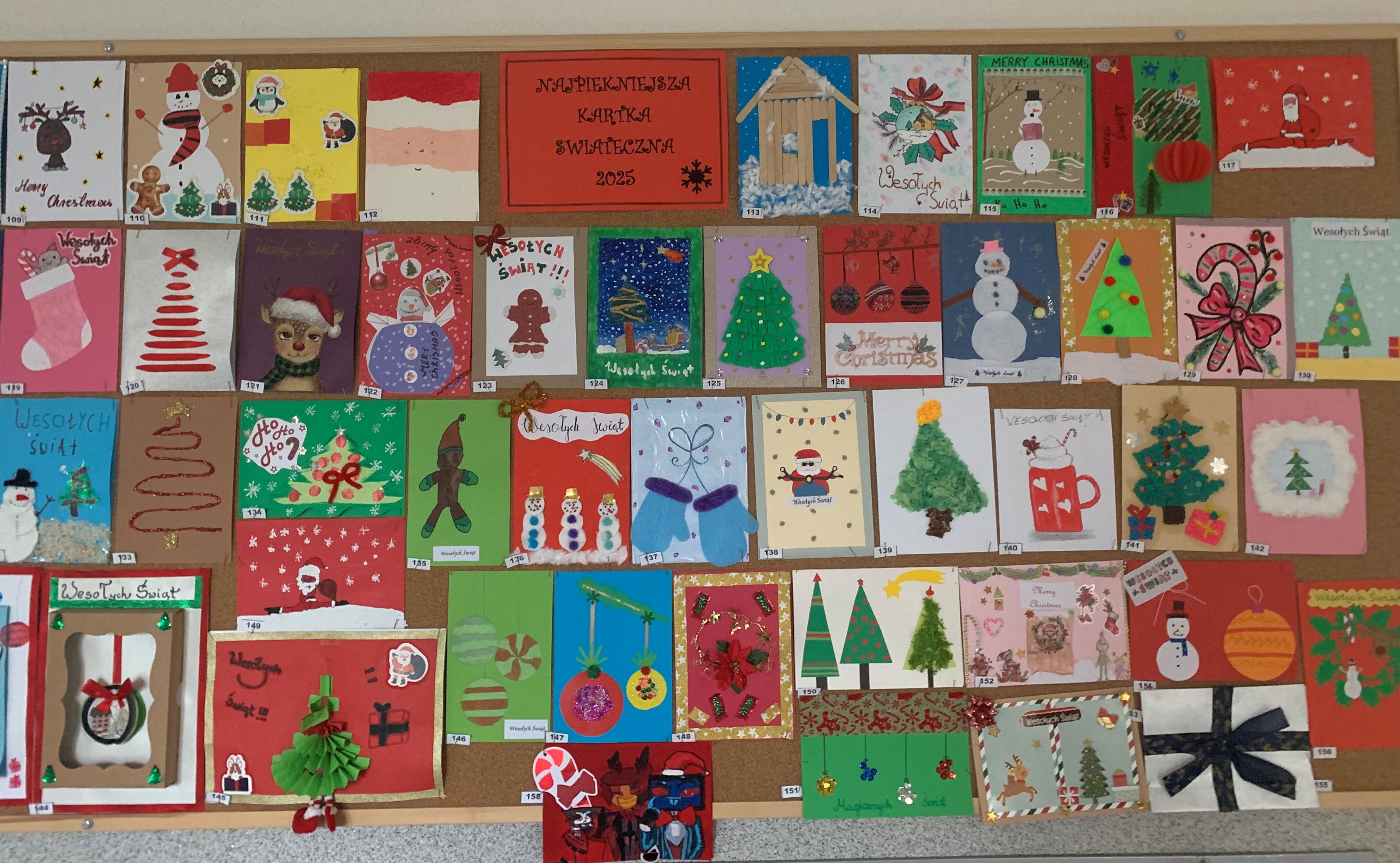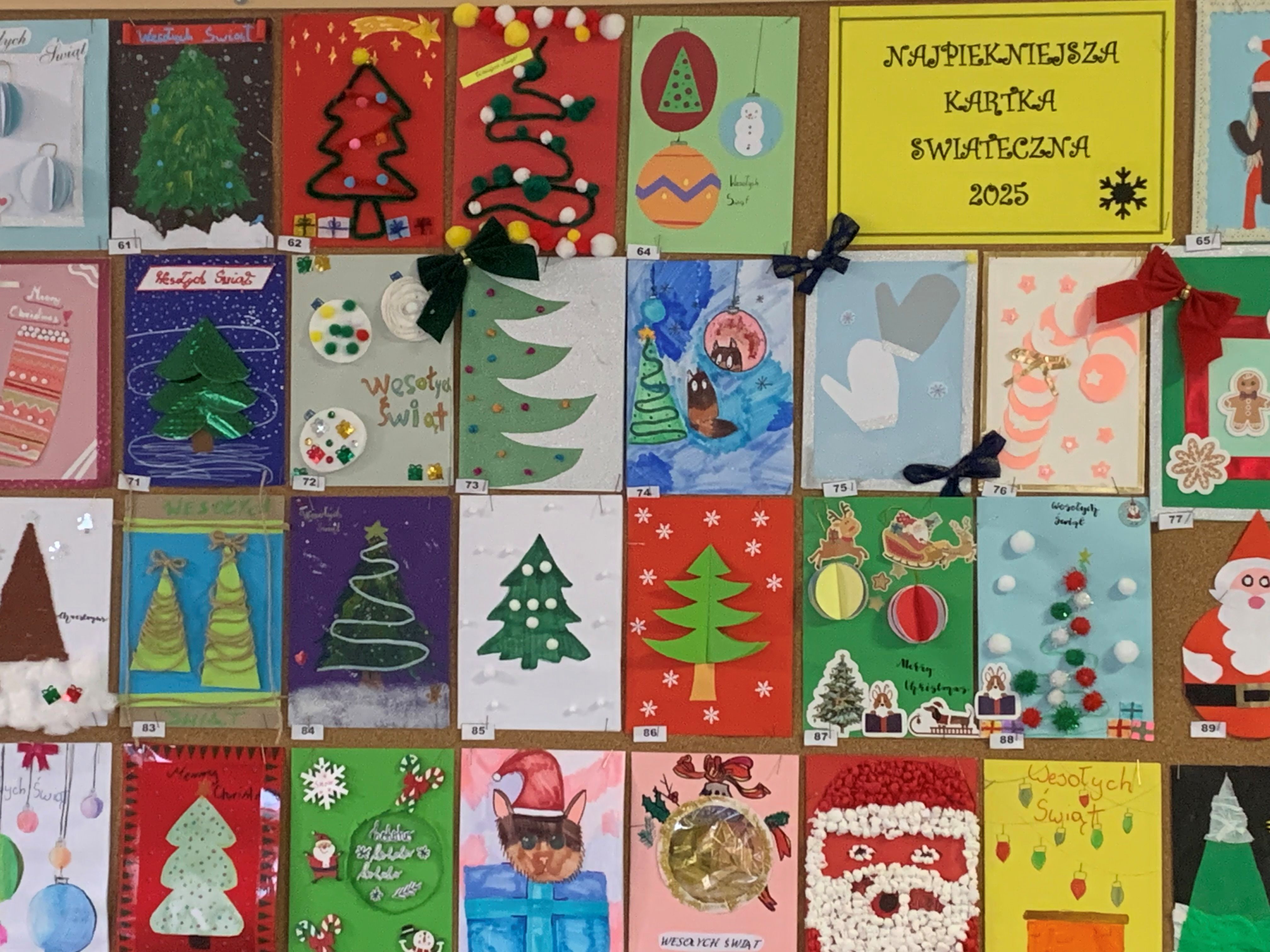 Tegoroczny konkurs plastyczny ,,Najpiękniejsza kartka świąteczna 2025” zgromadził 169 prac. Stworzyły one wystawę, którą można było oglądać na szkolnym korytarzu. Jak co roku uczniowie wykazali się dużą pomysłowością i inwencją twórczą. Jury postanowiło nagrodzić następujących uczestników konkursu: