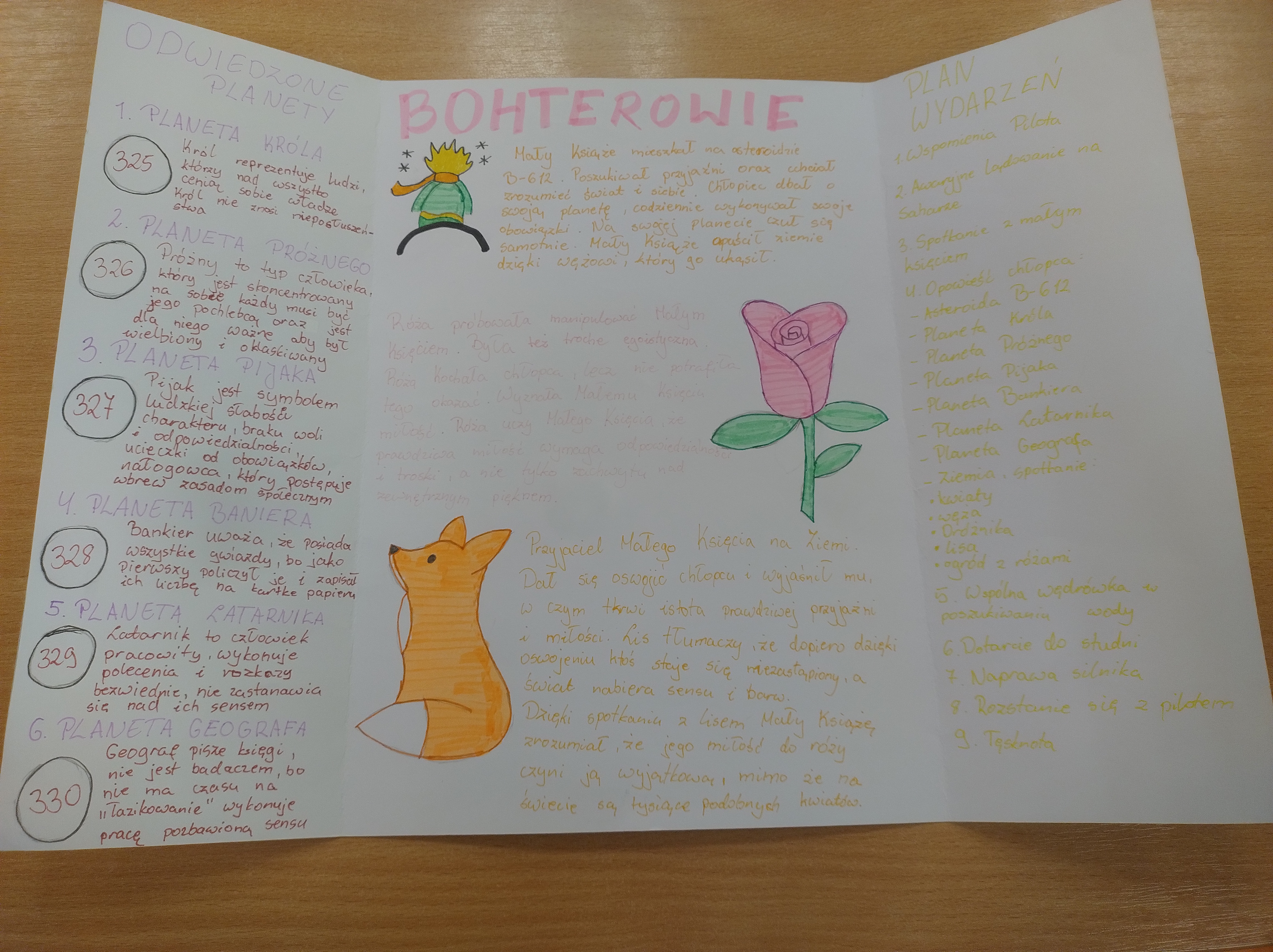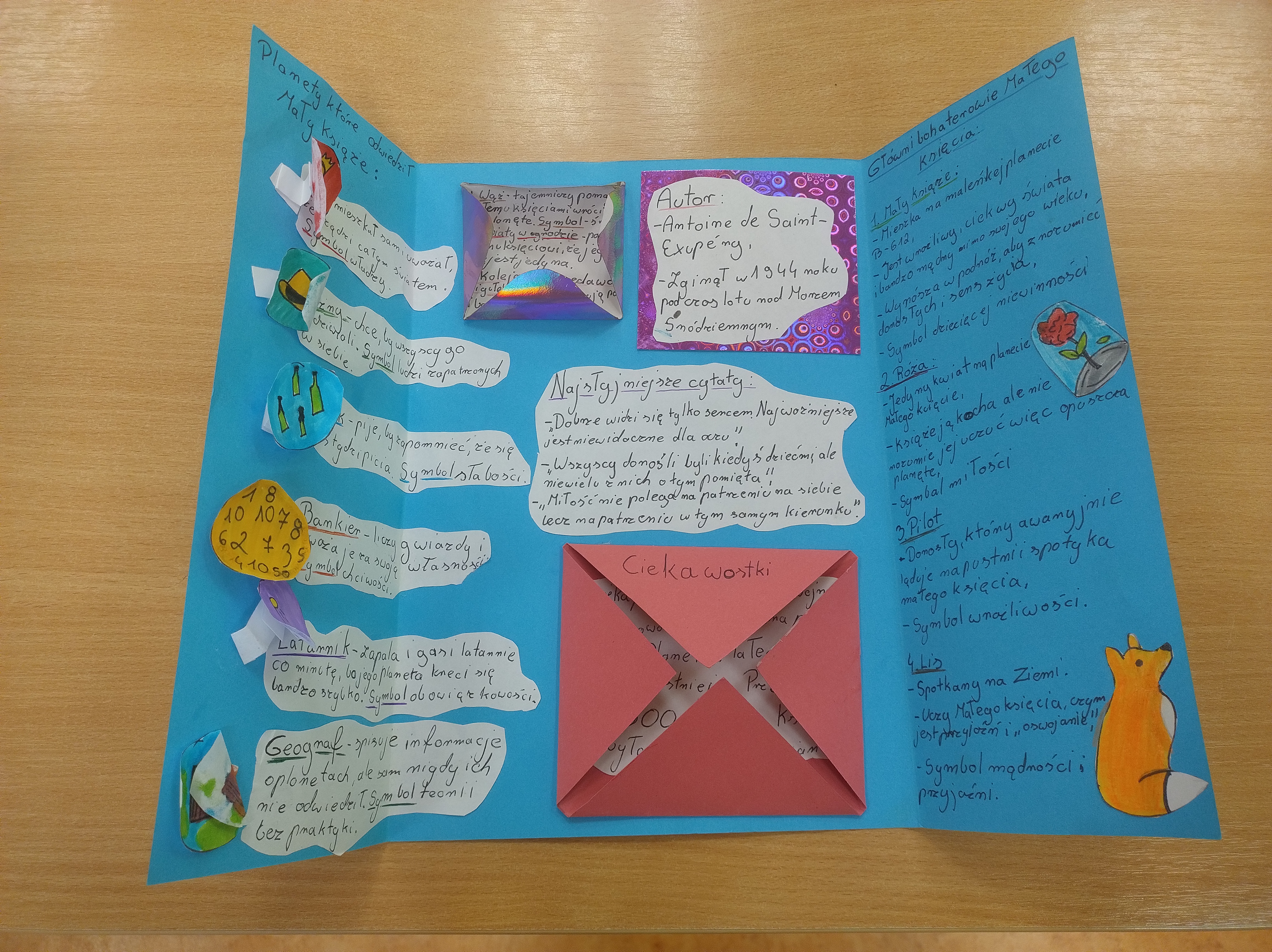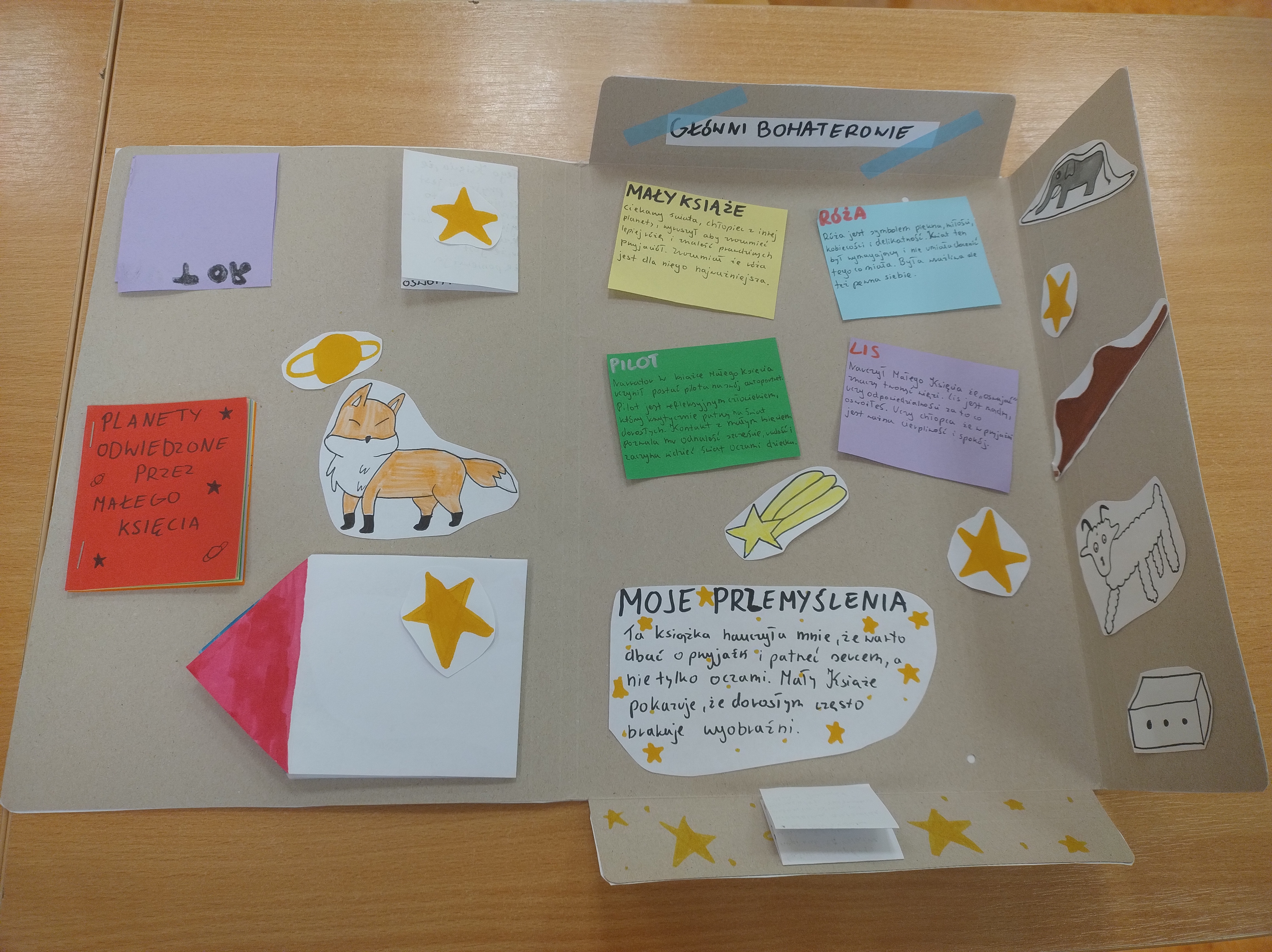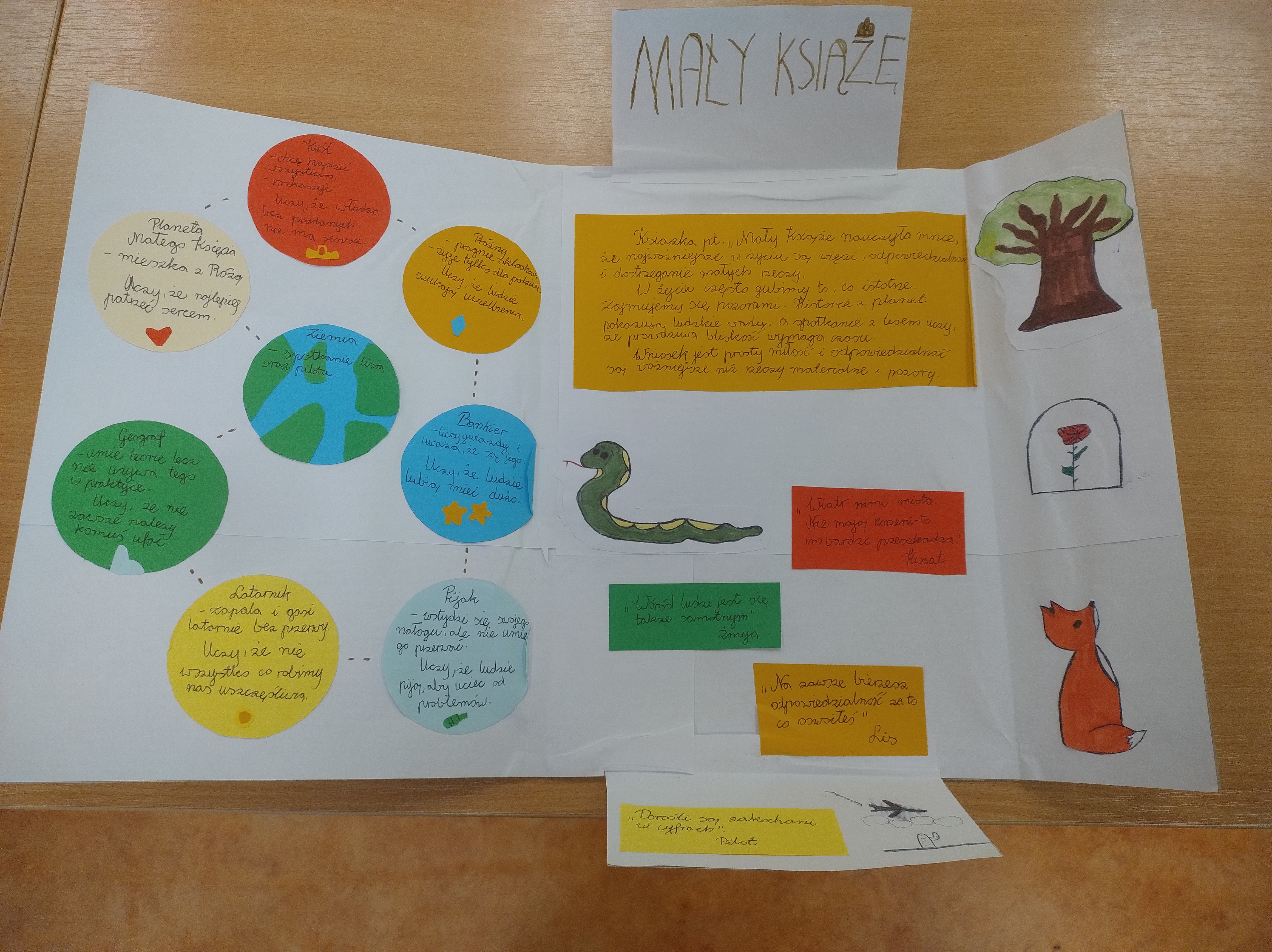 Dnia 07.11.2025r. uczniowie klas 7 złożyli swoje prace konkursowe pt. ,,Lapbook- Mały Książę”. Celem konkursu było rozwijanie pasji czytelniczych, propagowanie innowacyjnych metod pracy z lekturą oraz doskonalenie umiejętności prezentowania własnej wiedzy. Uczestnicy samodzielnie wykonali Lapbooki wykazując się przy tym znajomością lektury. Kreatywność uczniów nie znała granic.