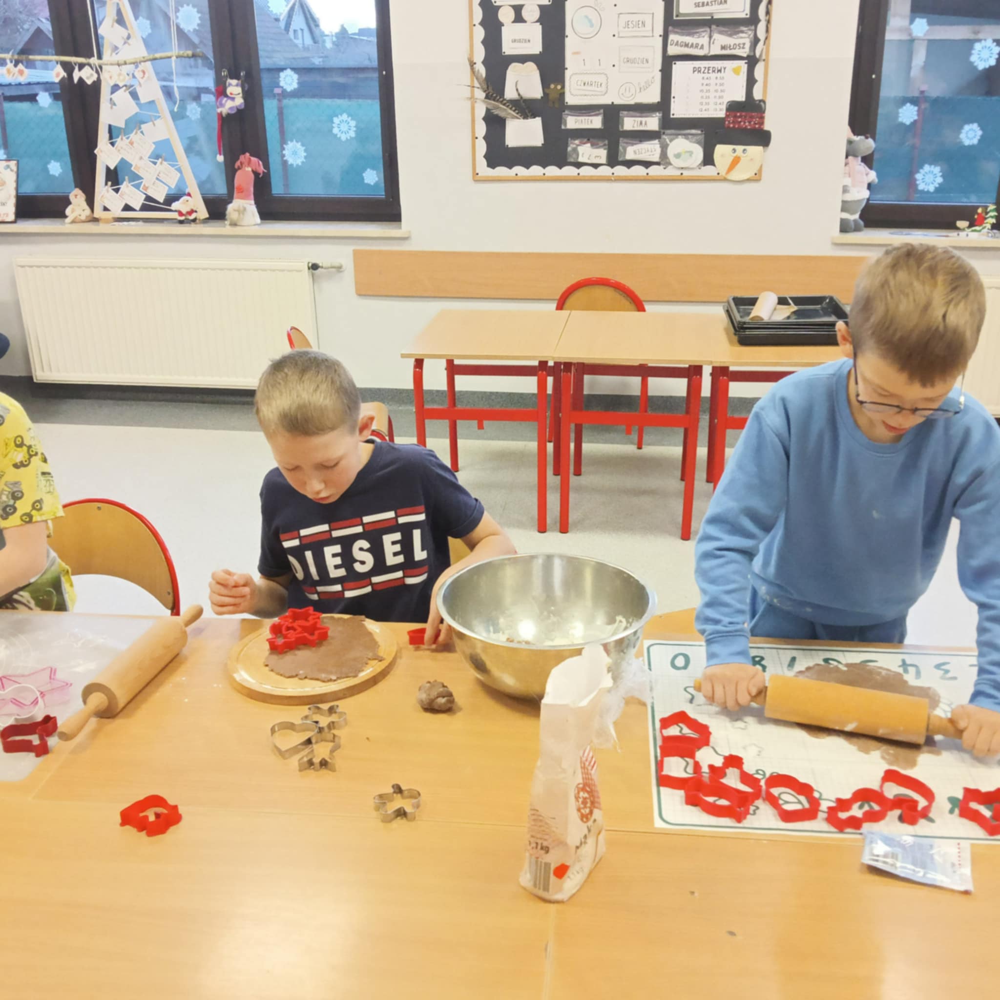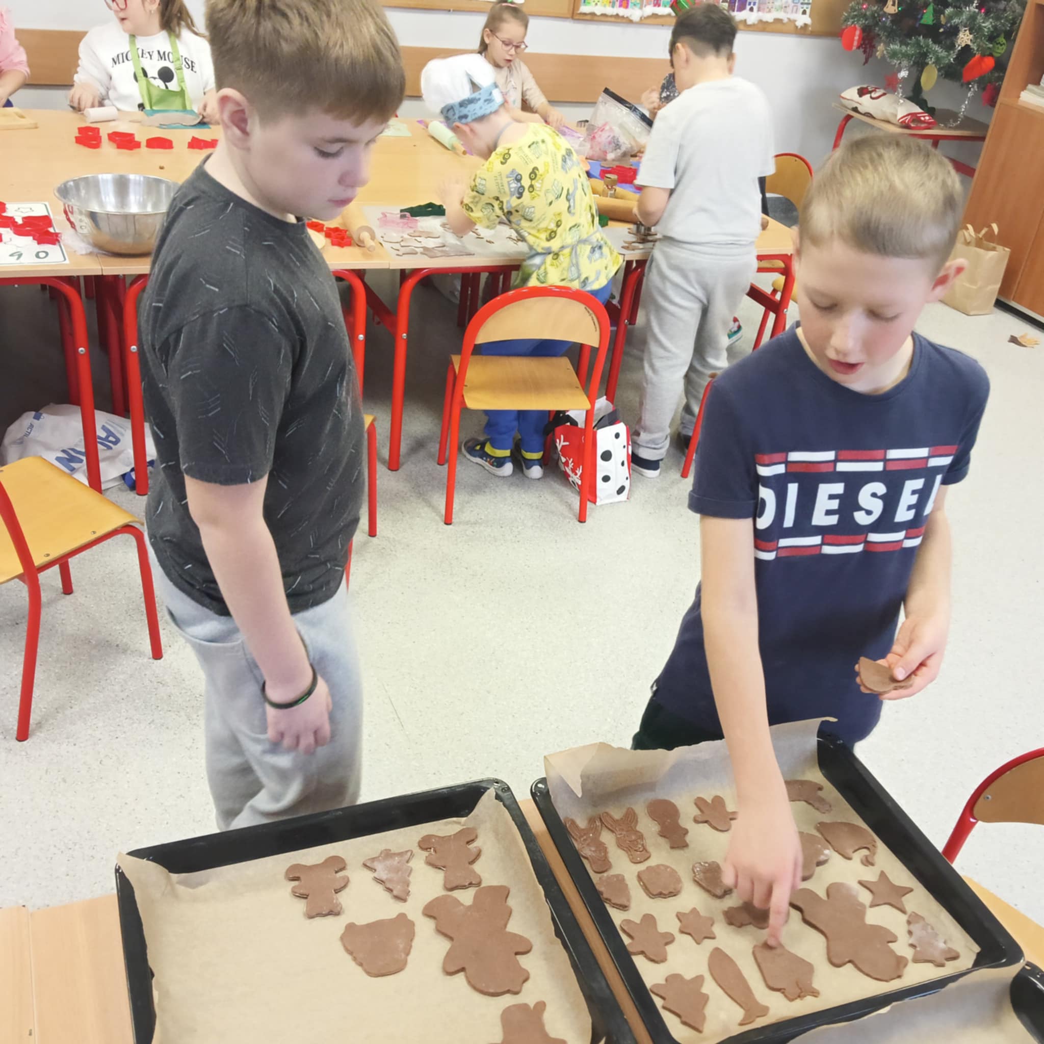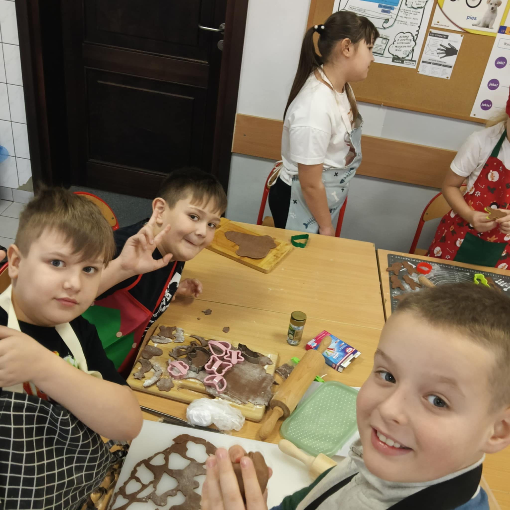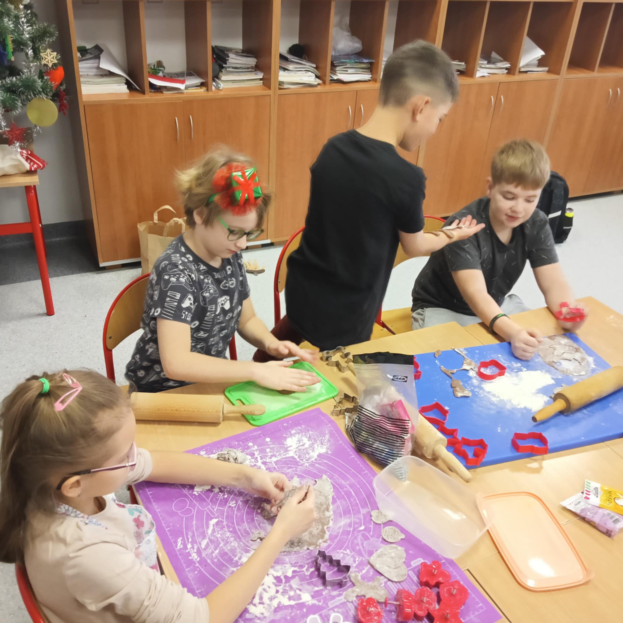 Uczniowie z ogromnym zaangażowaniem wykrawali różnorodne ksztaÅ‚ty ciasteczek, piekli je, a nastÄ™pnie dekorowali kolorowymi lukrami i posypkami. CaÅ‚oÅ›ci towarzyszyÅ‚y Å›wiÄ…teczne melodie, które wprowadziÅ‚y wyjÄ…tkowy nastrój i sprawiÅ‚y, że praca staÅ‚a siÄ™ prawdziwÄ… zabawÄ…. Wspólne przygotowania dostarczyÅ‚y dzieciom wiele radoÅ›ci, byÅ‚y okazjÄ… do wspóÅ‚pracy i integracji, a także pozwoliÅ‚y stworzyć piÄ™kne wspomnienia zwiÄ…zane z magiÄ… Å›wiÄ…t.