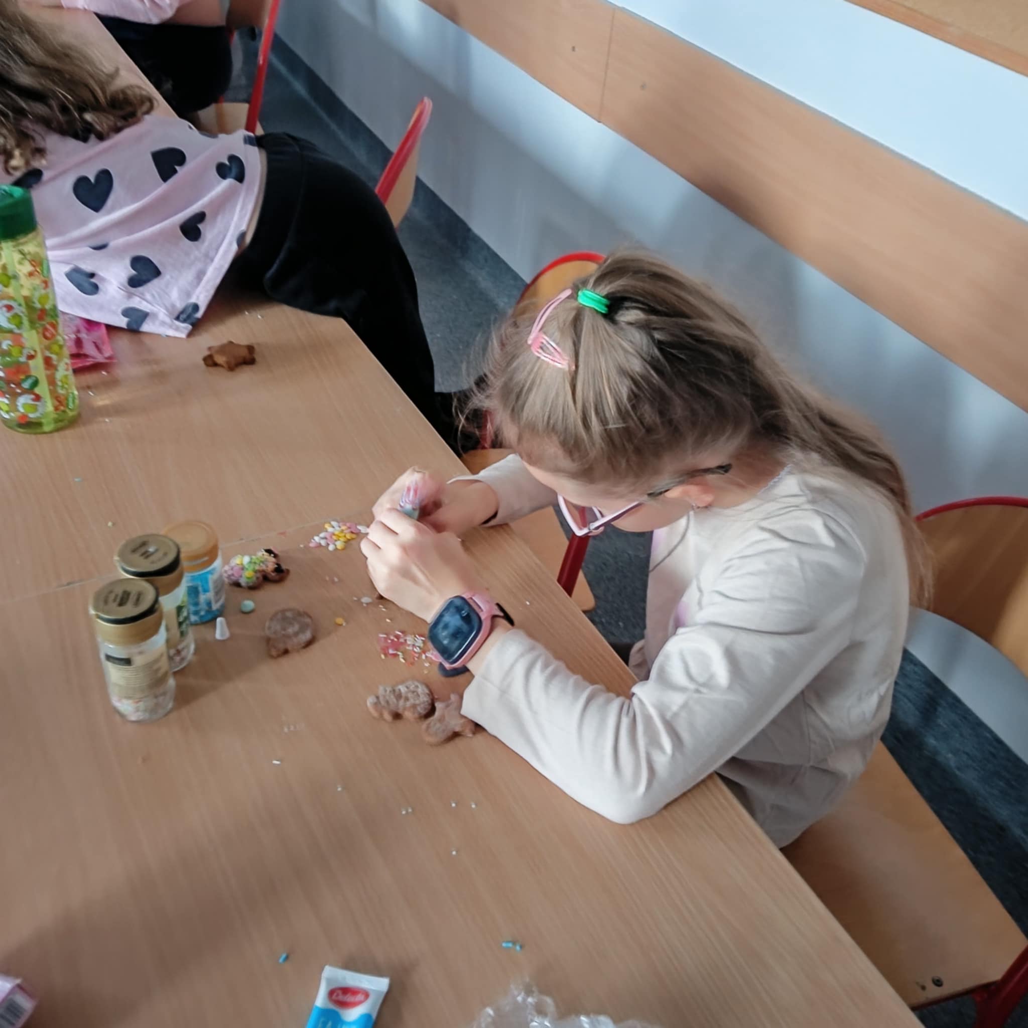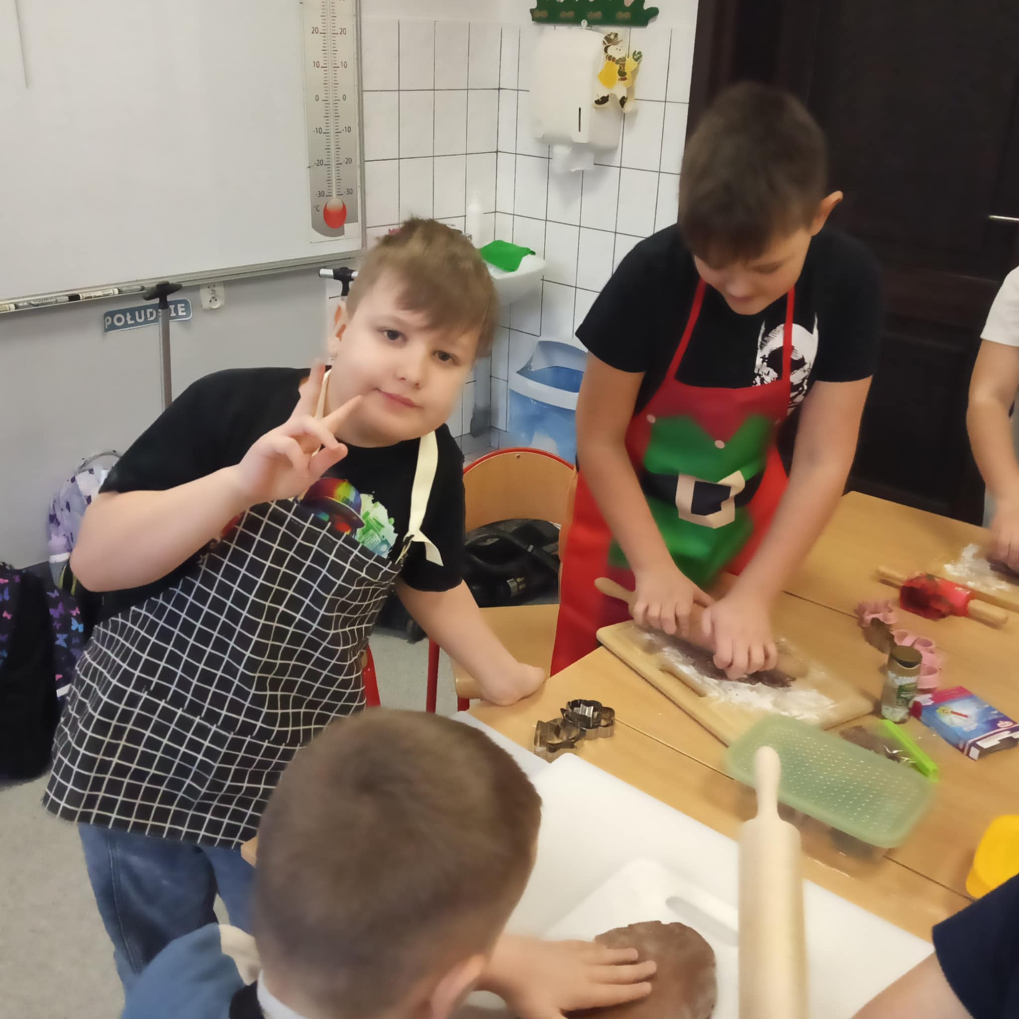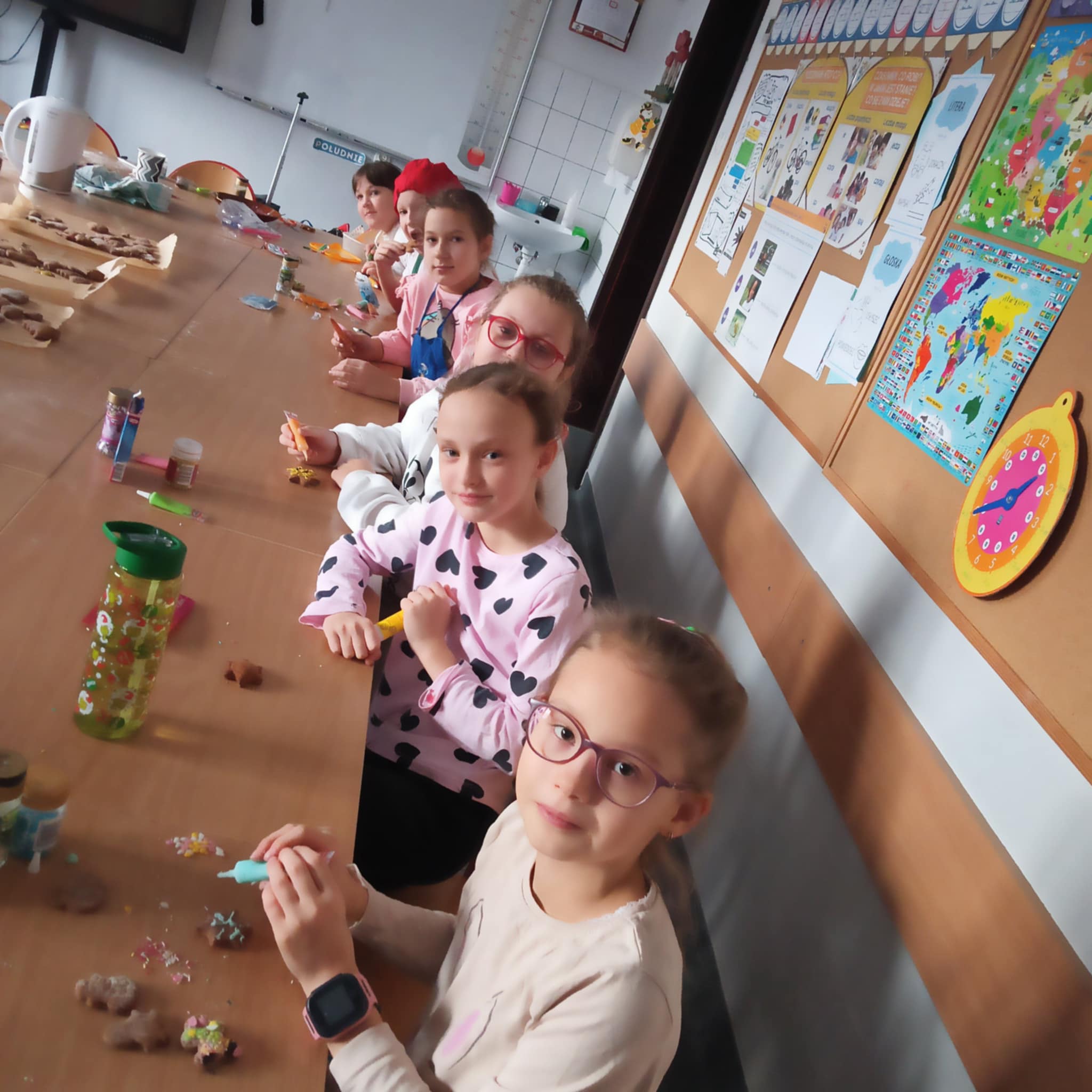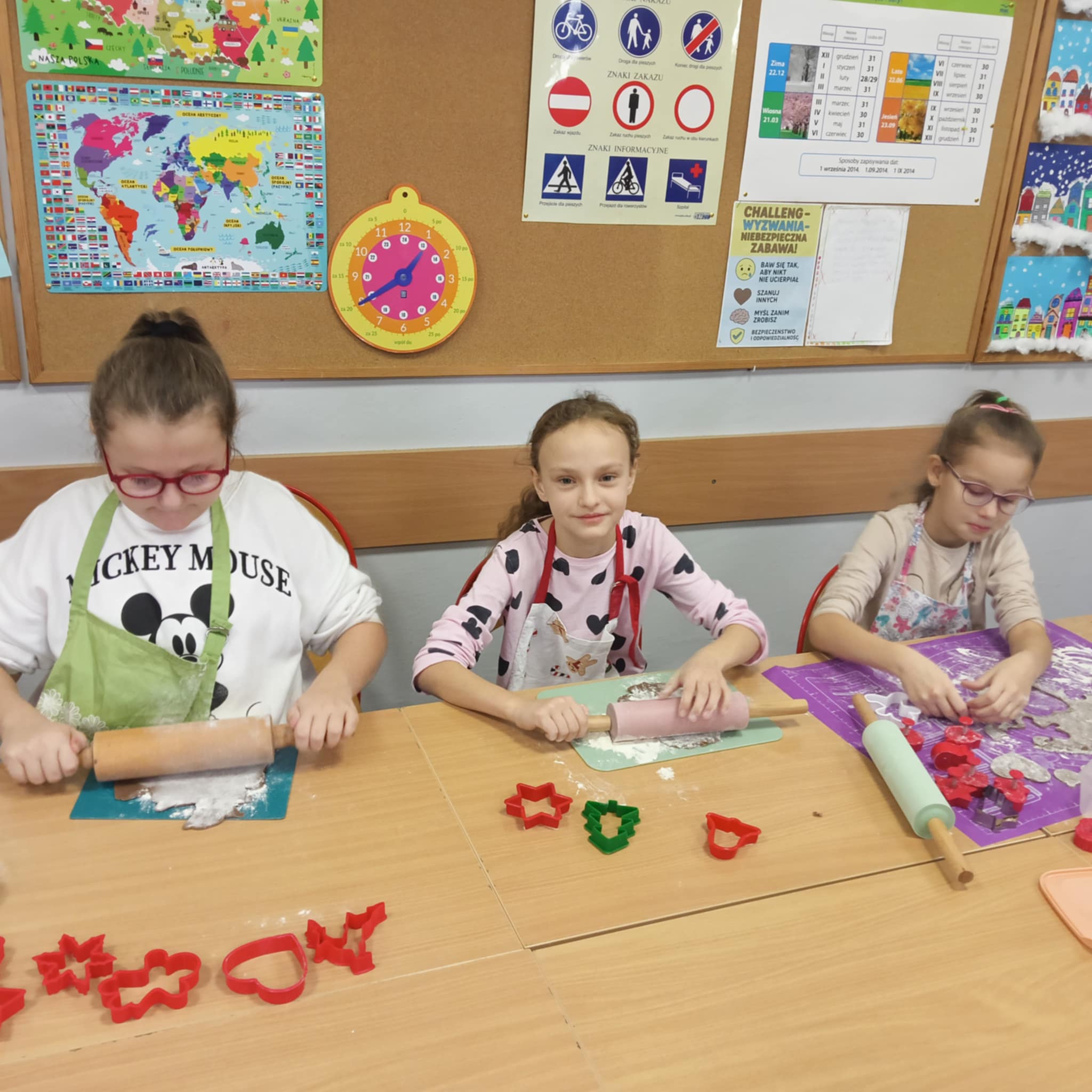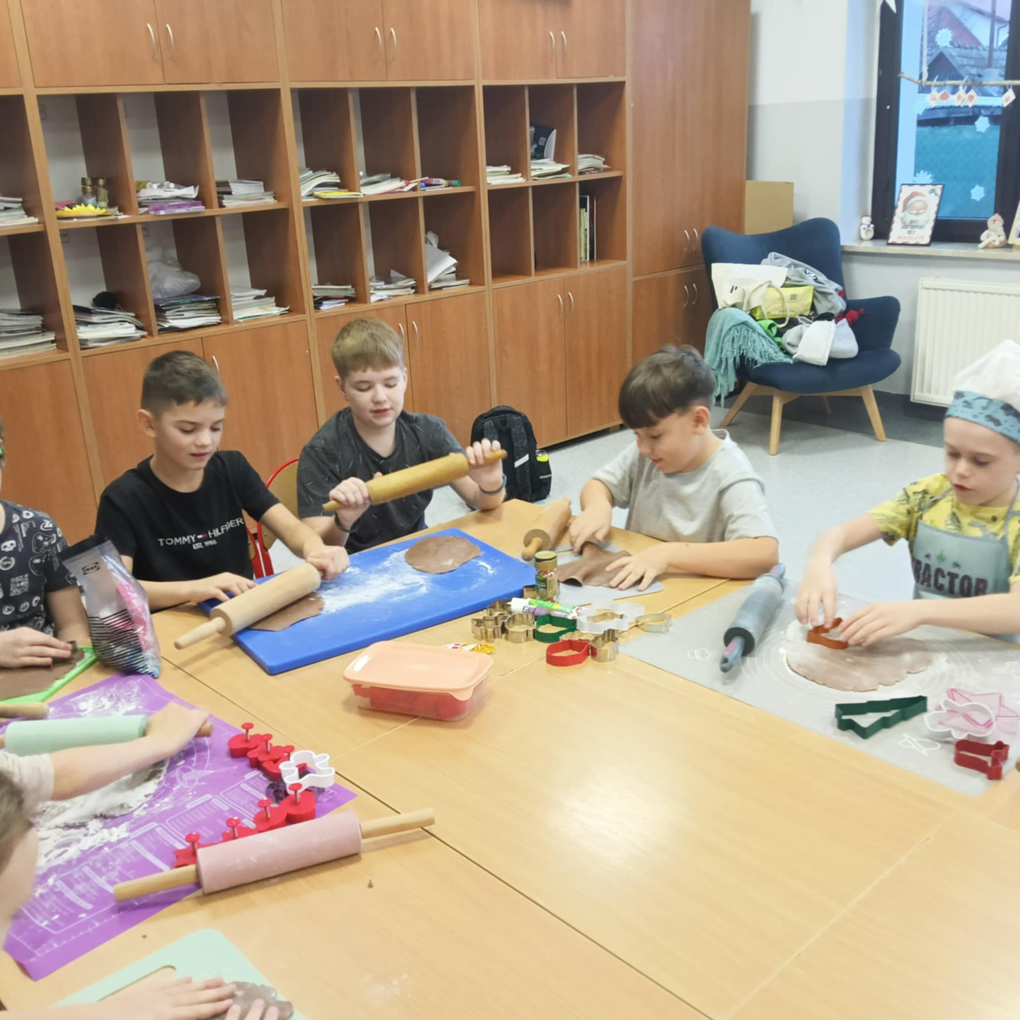 Uczniowie z ogromnym zaangażowaniem wykrawali różnorodne ksztaÅ‚ty ciasteczek, piekli je, a nastÄ™pnie dekorowali kolorowymi lukrami i posypkami. CaÅ‚oÅ›ci towarzyszyÅ‚y Å›wiÄ…teczne melodie, które wprowadziÅ‚y wyjÄ…tkowy nastrój i sprawiÅ‚y, że praca staÅ‚a siÄ™ prawdziwÄ… zabawÄ…. Wspólne przygotowania dostarczyÅ‚y dzieciom wiele radoÅ›ci, byÅ‚y okazjÄ… do wspóÅ‚pracy i integracji, a także pozwoliÅ‚y stworzyć piÄ™kne wspomnienia zwiÄ…zane z magiÄ… Å›wiÄ…t.