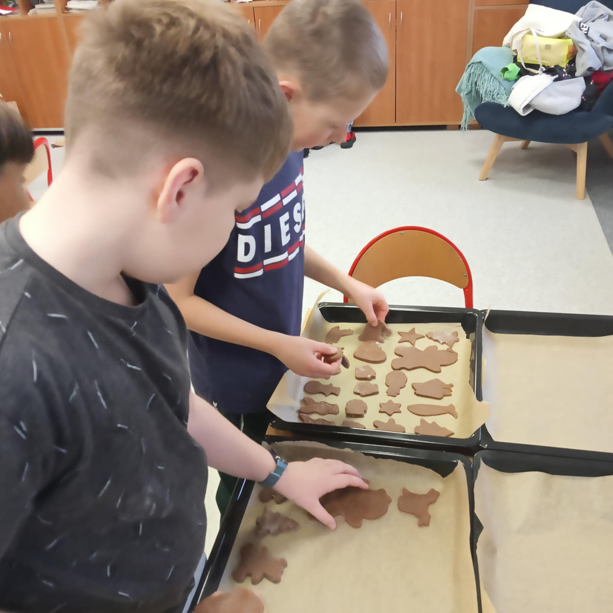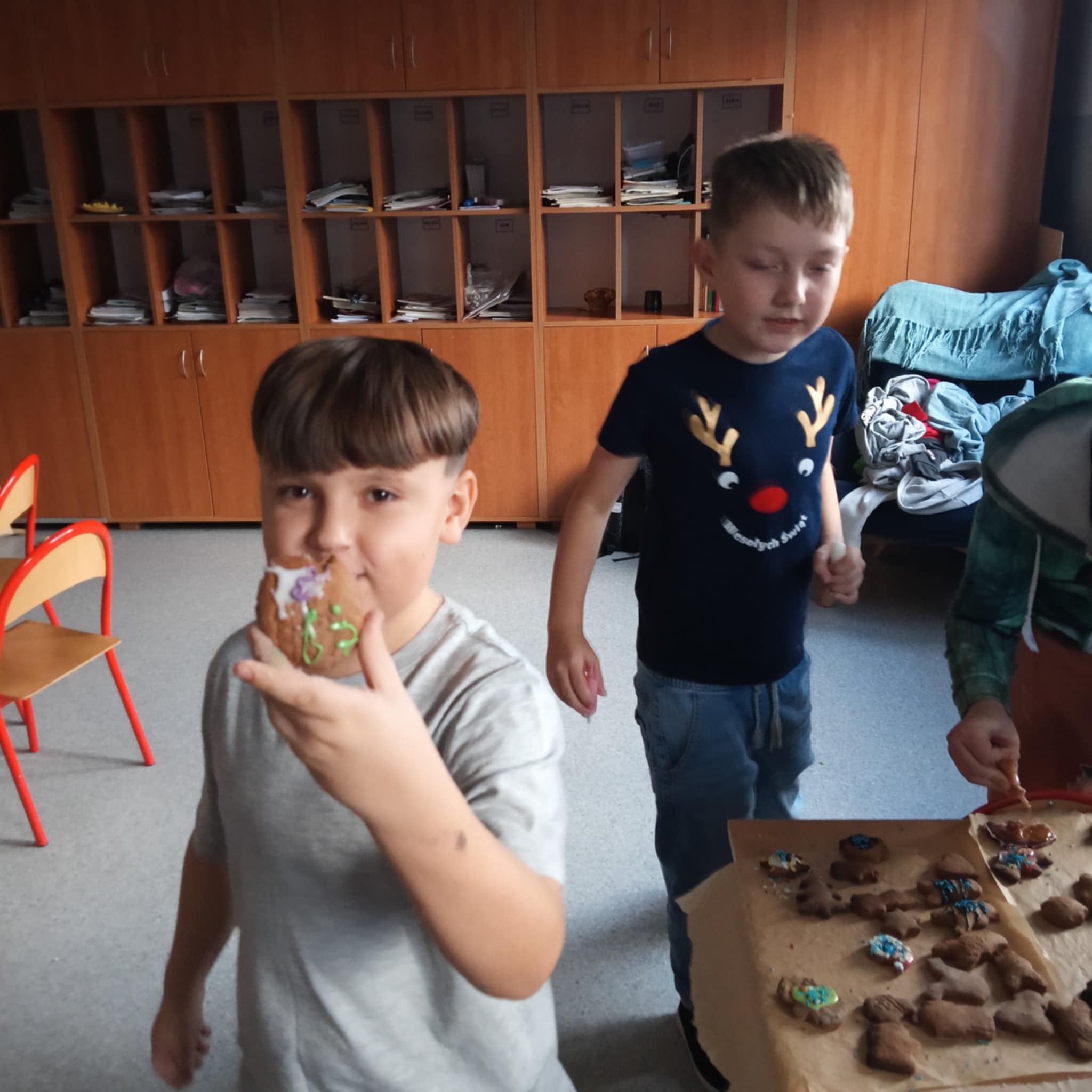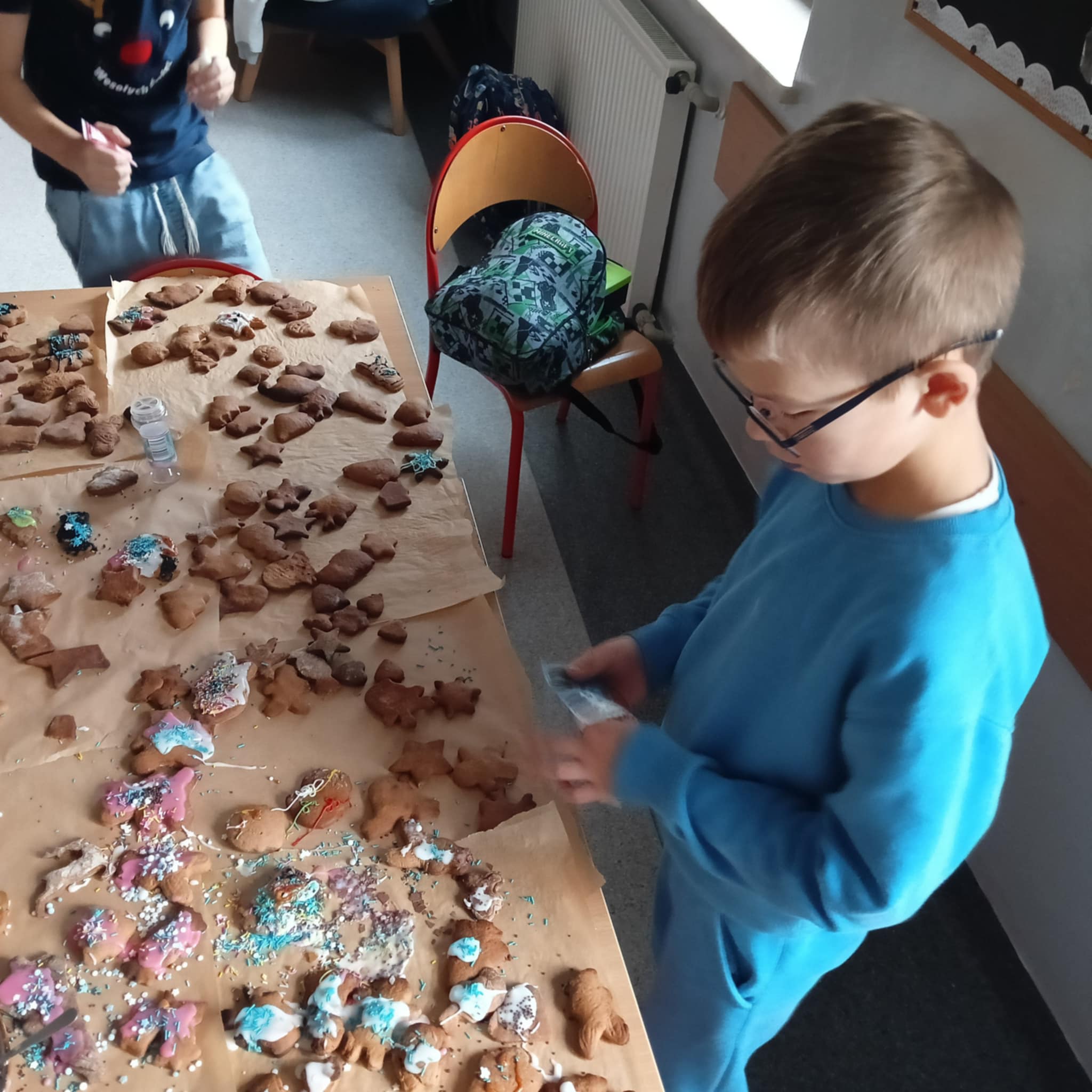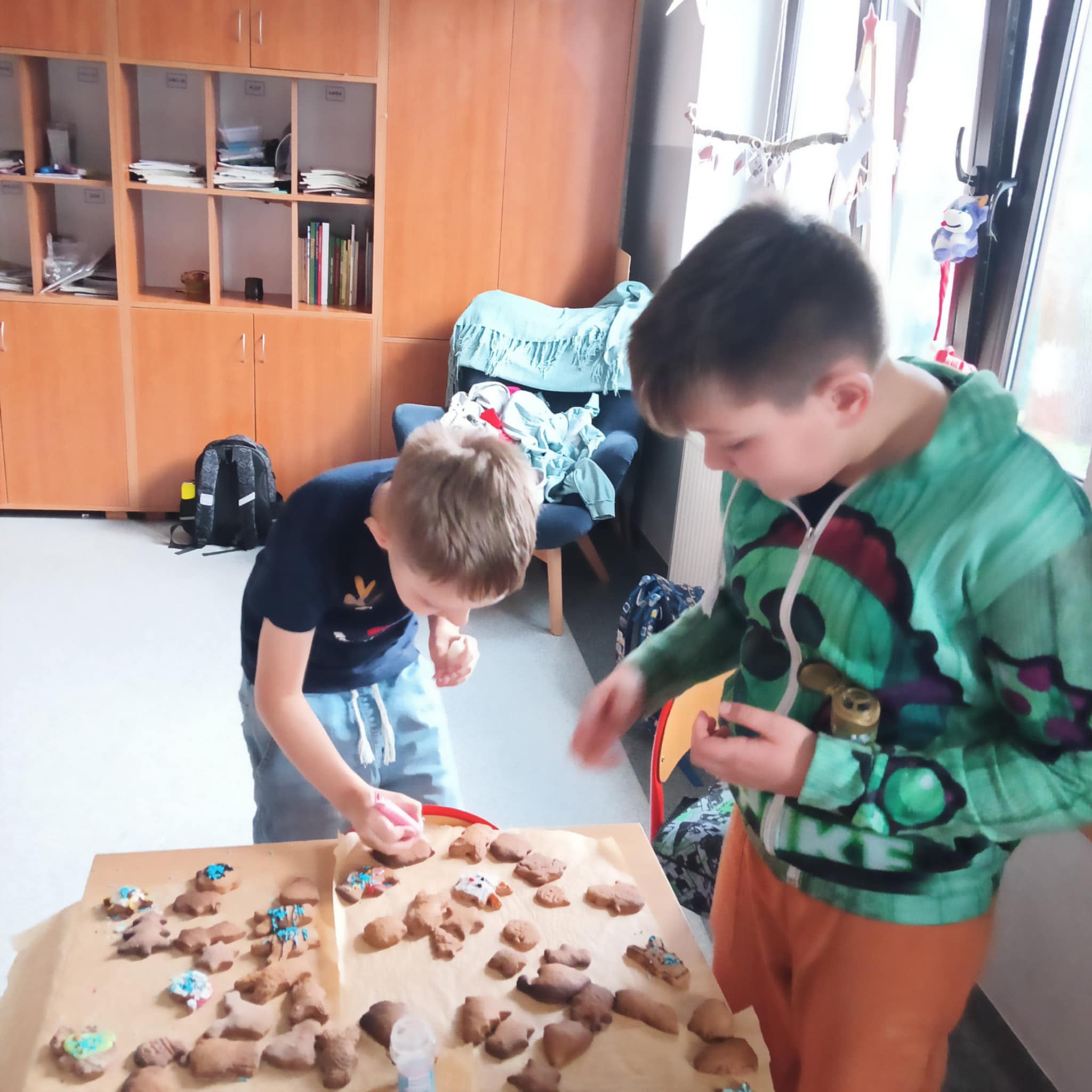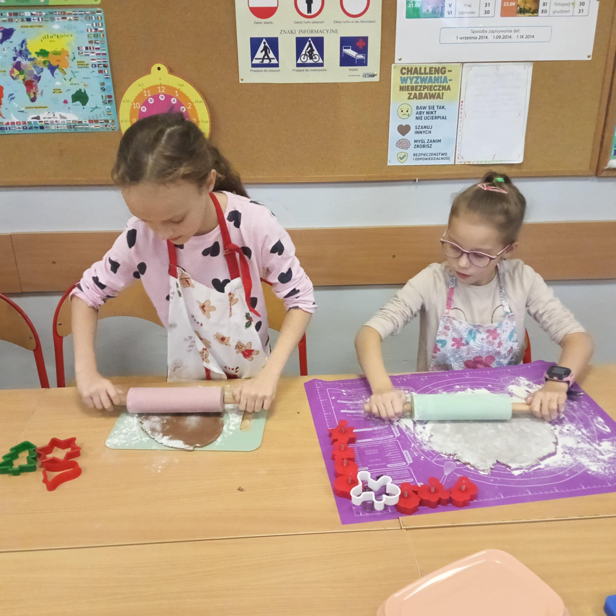 Uczniowie z ogromnym zaangażowaniem wykrawali różnorodne ksztaÅ‚ty ciasteczek, piekli je, a nastÄ™pnie dekorowali kolorowymi lukrami i posypkami. CaÅ‚oÅ›ci towarzyszyÅ‚y Å›wiÄ…teczne melodie, które wprowadziÅ‚y wyjÄ…tkowy nastrój i sprawiÅ‚y, że praca staÅ‚a siÄ™ prawdziwÄ… zabawÄ…. Wspólne przygotowania dostarczyÅ‚y dzieciom wiele radoÅ›ci, byÅ‚y okazjÄ… do wspóÅ‚pracy i integracji, a także pozwoliÅ‚y stworzyć piÄ™kne wspomnienia zwiÄ…zane z magiÄ… Å›wiÄ…t.