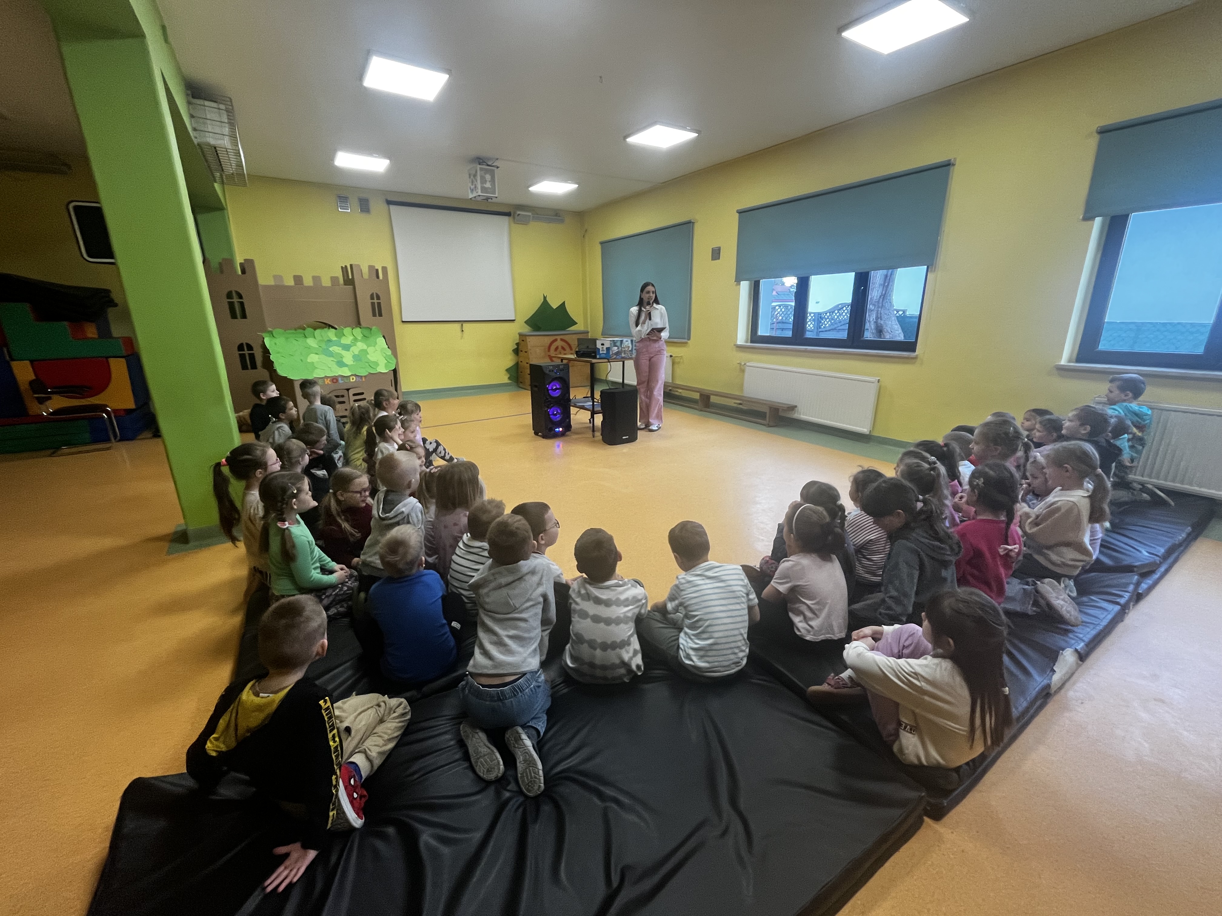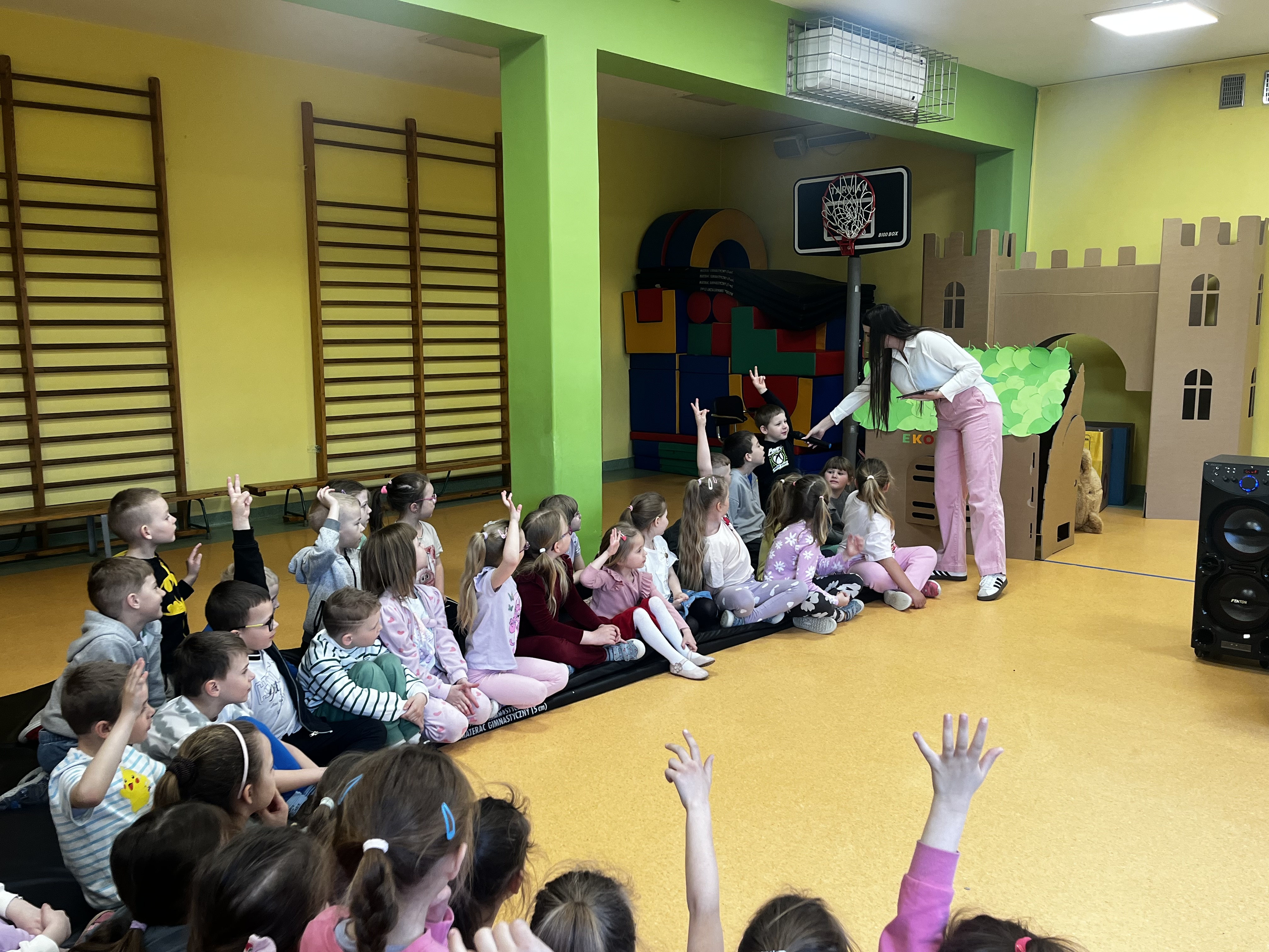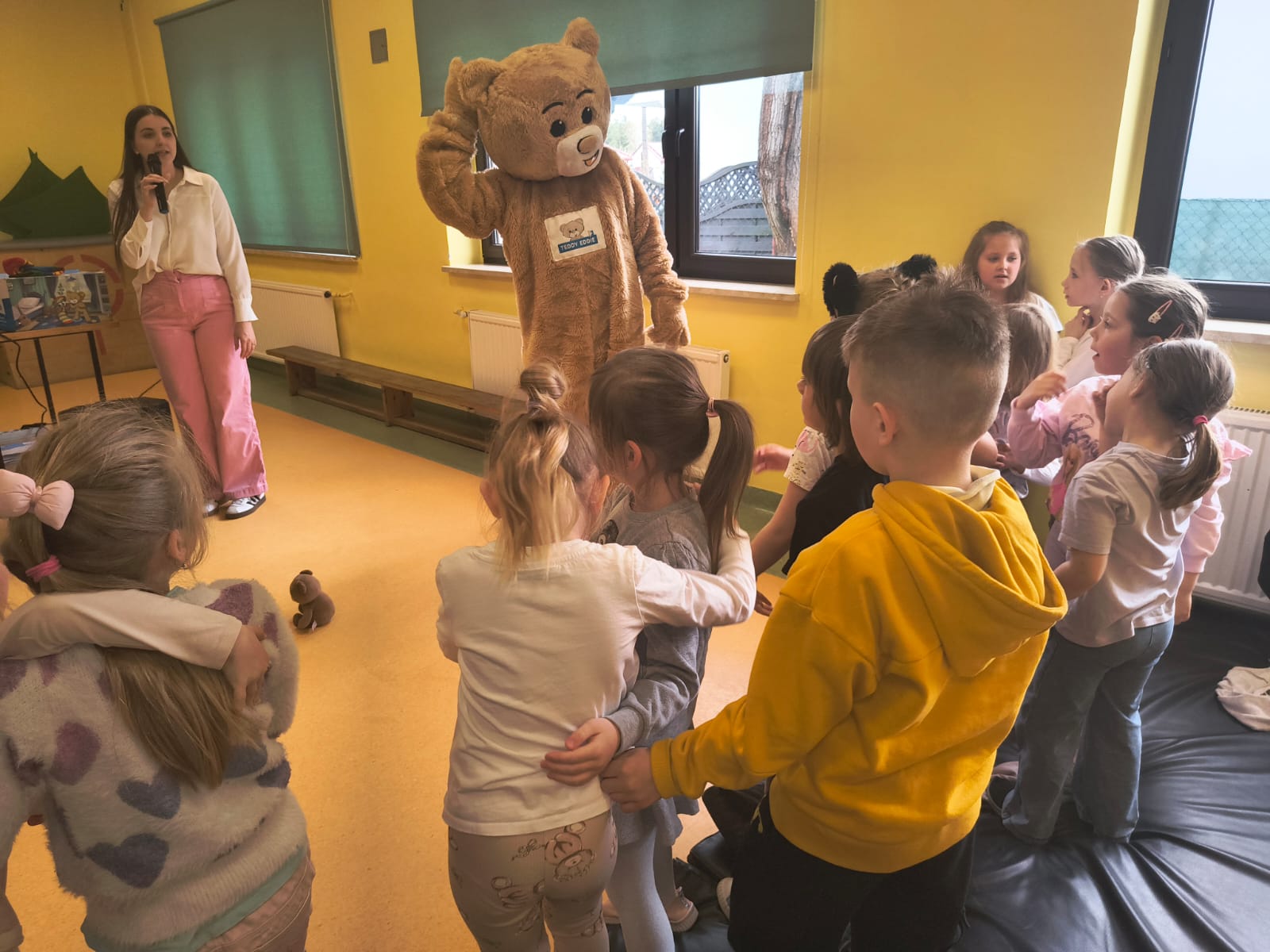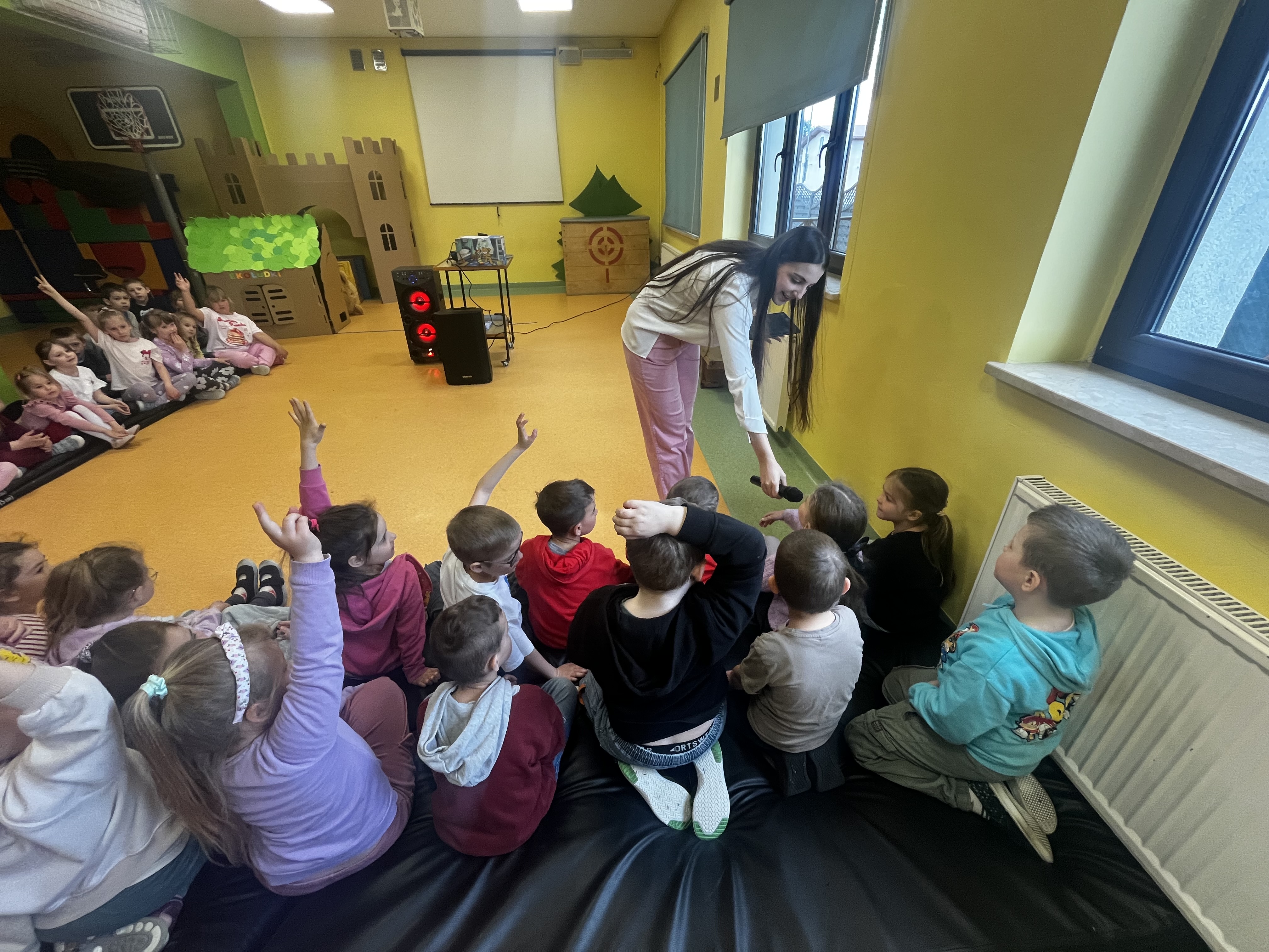 Podczas występu szczególną uwagę zwrócono na emocje – radość, smutek, złość czy zdziwienie – które były przedstawiane w sposób przystępny i zrozumiały dla najmłodszych. Dzięki interaktywnym elementom dzieci mogły aktywnie uczestniczyć w przedstawieniu, nazywać emocje oraz reagować na polecenia w języku angielskim.