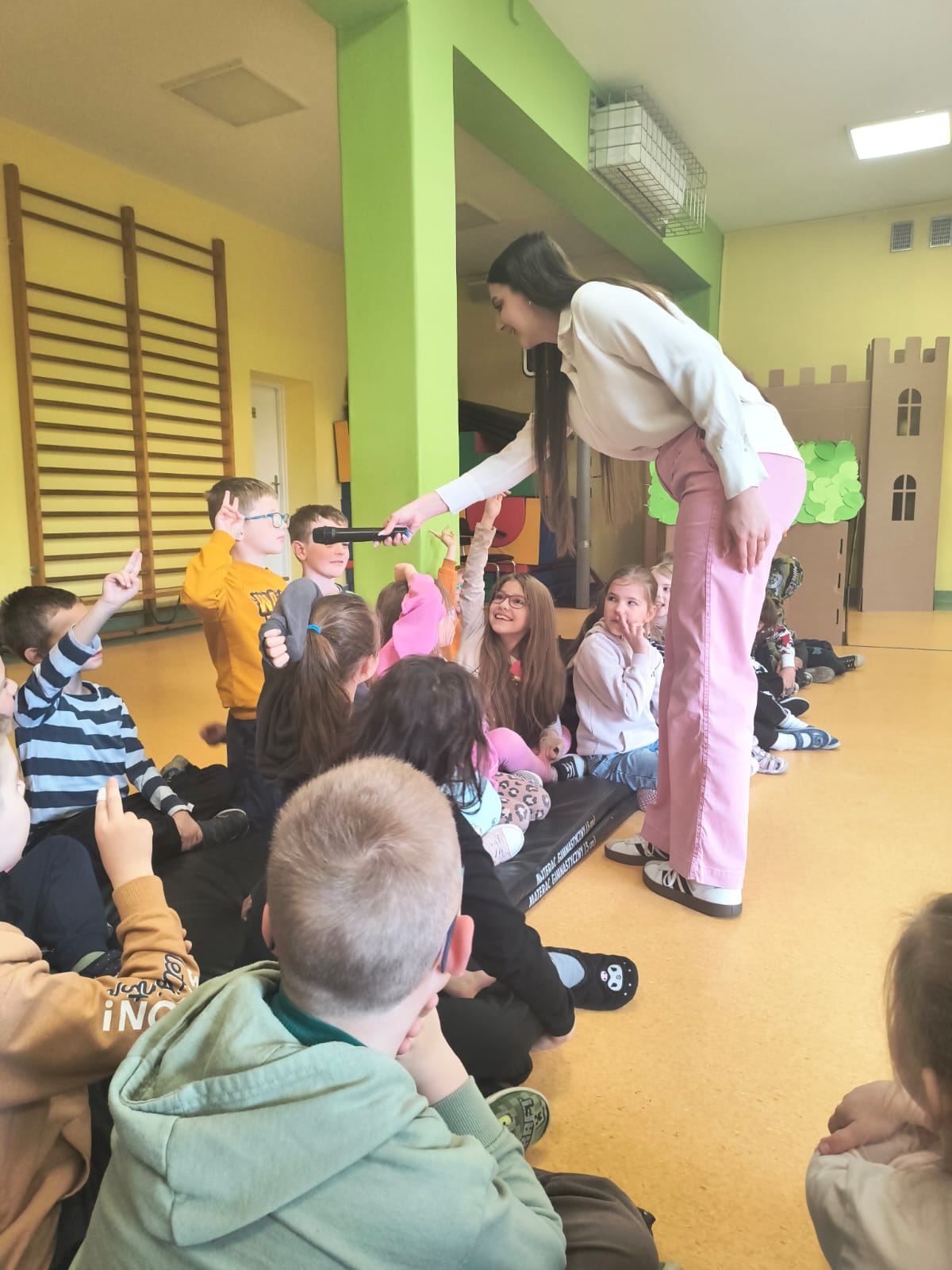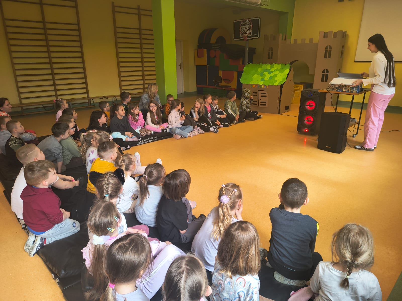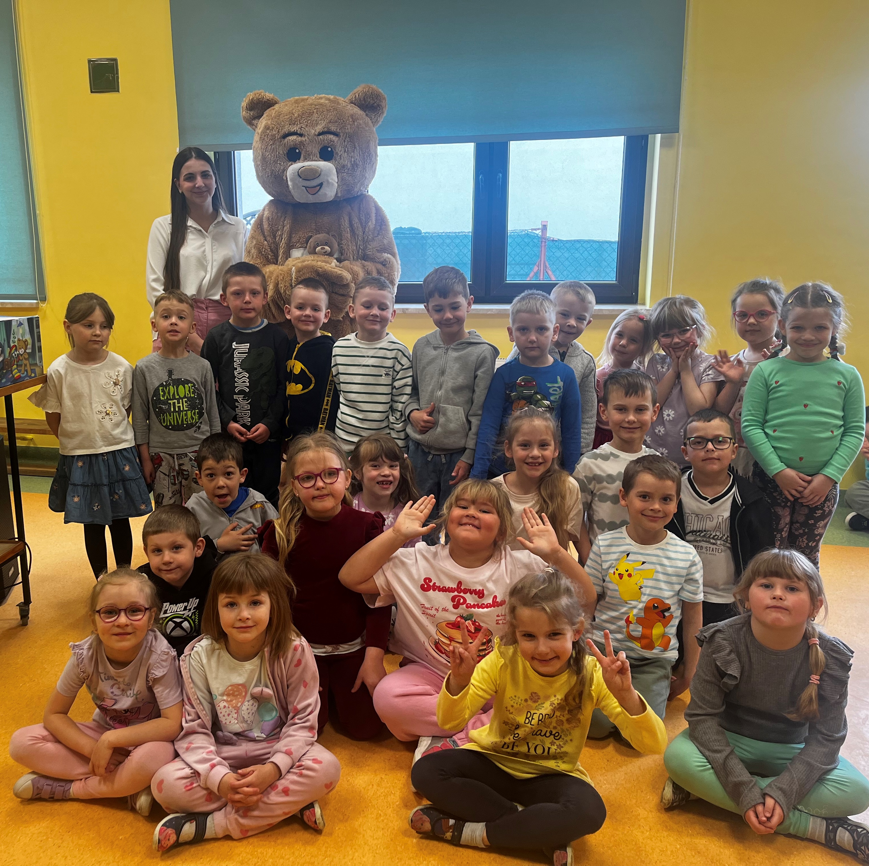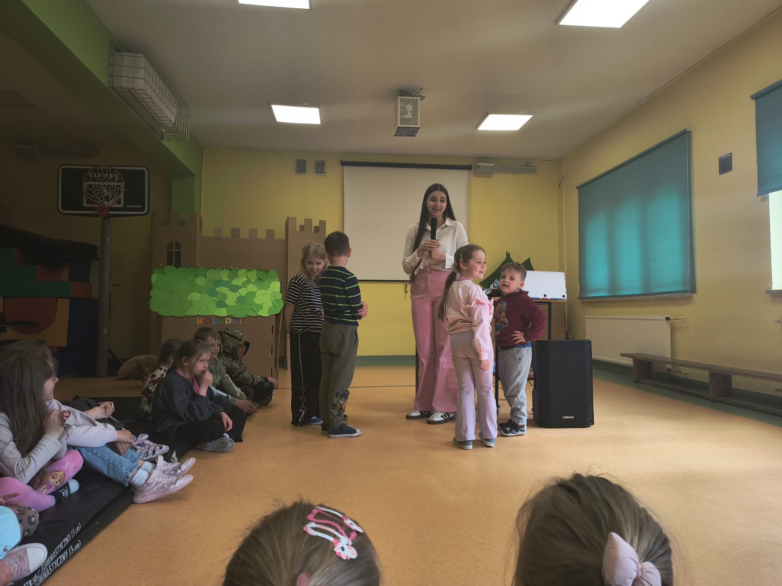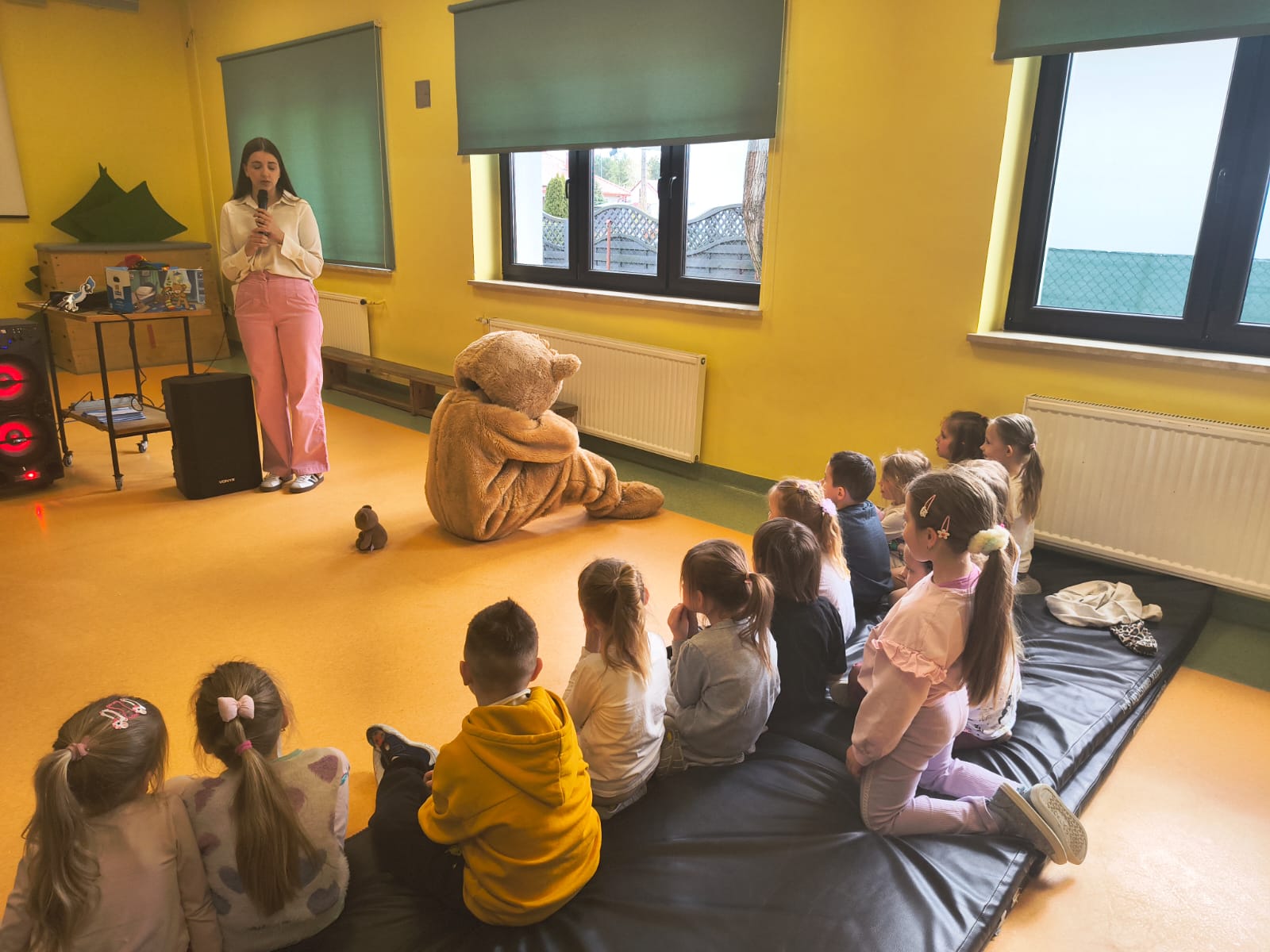 Podczas występu szczególną uwagę zwrócono na emocje – radość, smutek, złość czy zdziwienie – które były przedstawiane w sposób przystępny i zrozumiały dla najmłodszych. Dzięki interaktywnym elementom dzieci mogły aktywnie uczestniczyć w przedstawieniu, nazywać emocje oraz reagować na polecenia w języku angielskim.