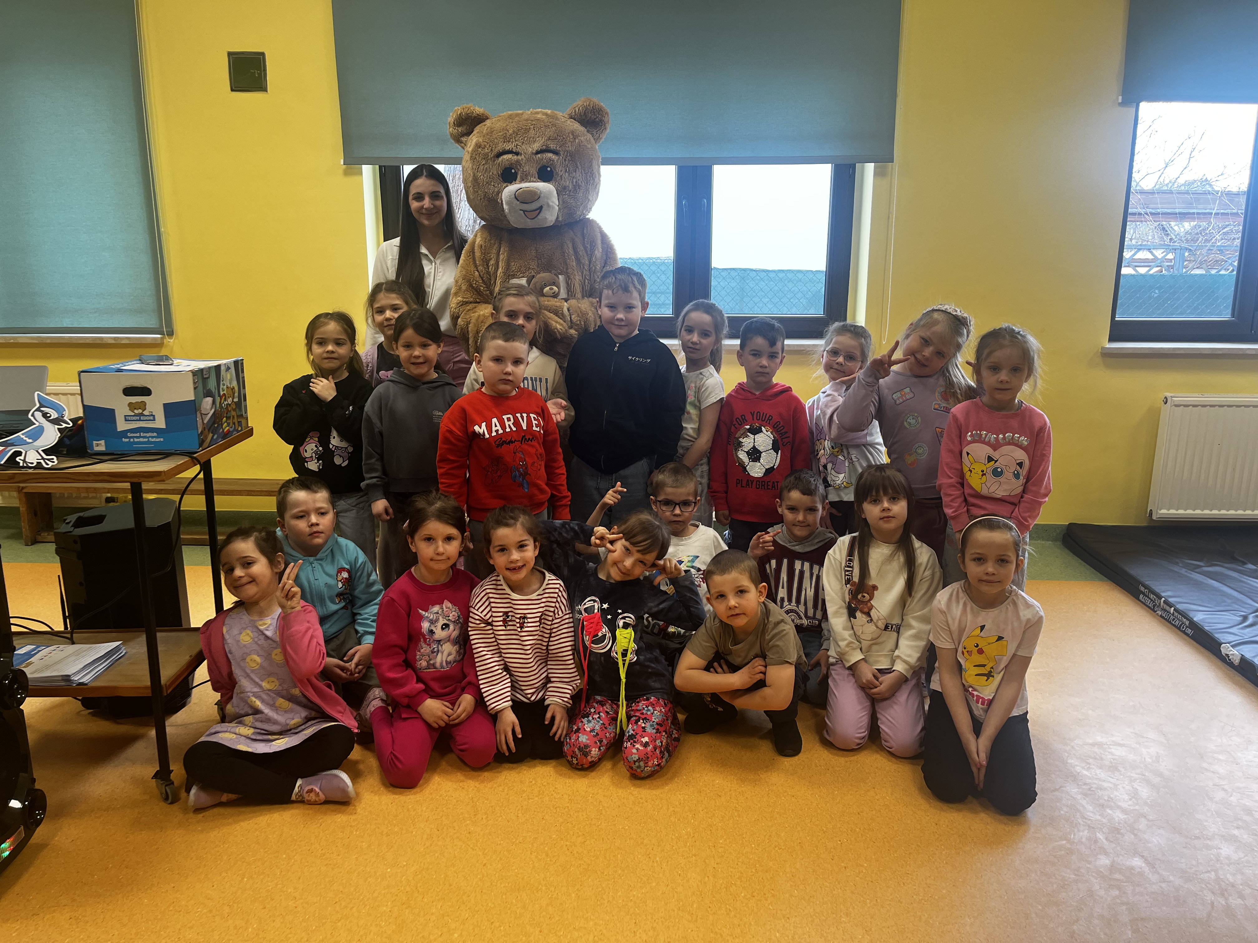 Przedstawienie „Eddie’s Show” było wyjątkowym wydarzeniem, które połączyło zabawę z nauką języka angielskiego oraz rozpoznawaniem i wyrażaniem emocji. Dzieci z dużym zainteresowaniem śledziły losy bohatera, ucząc się prostych słów i zwrotów w języku angielskim w naturalnych, codziennych sytuacjach.