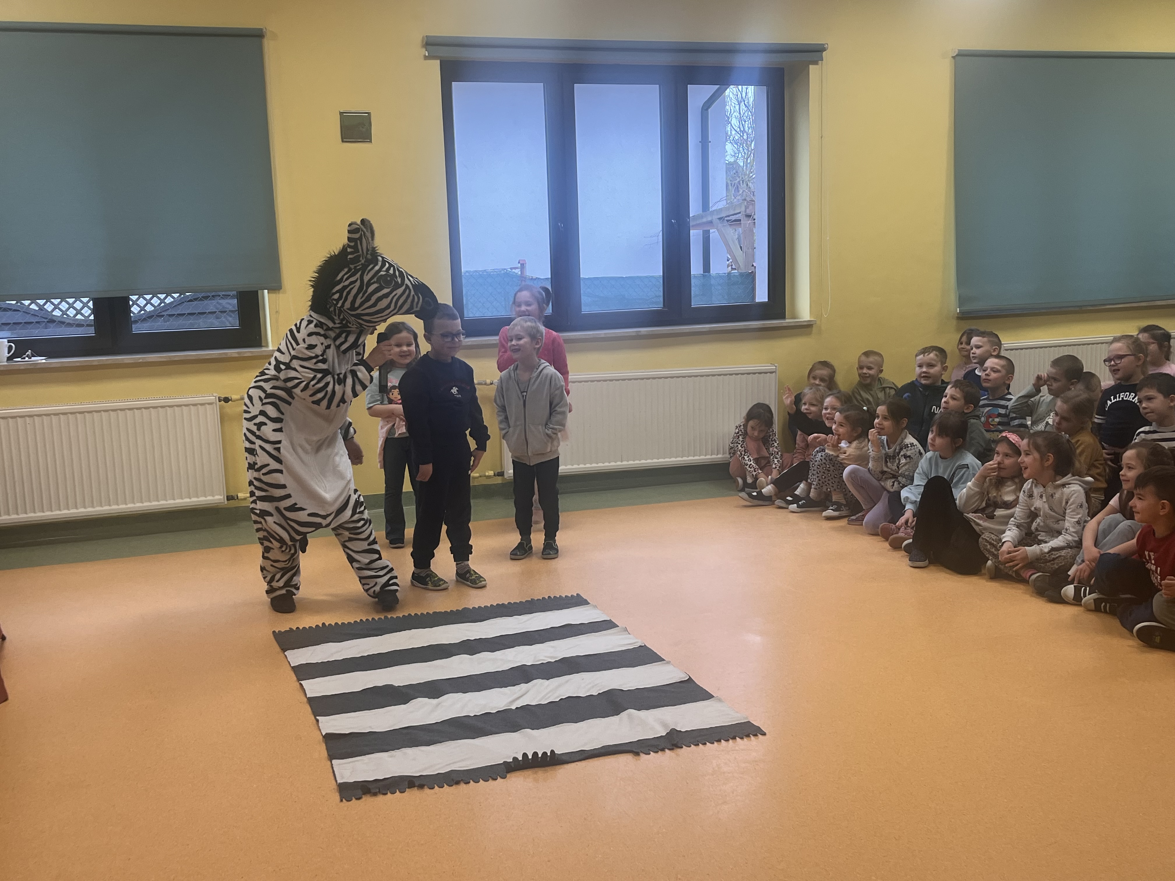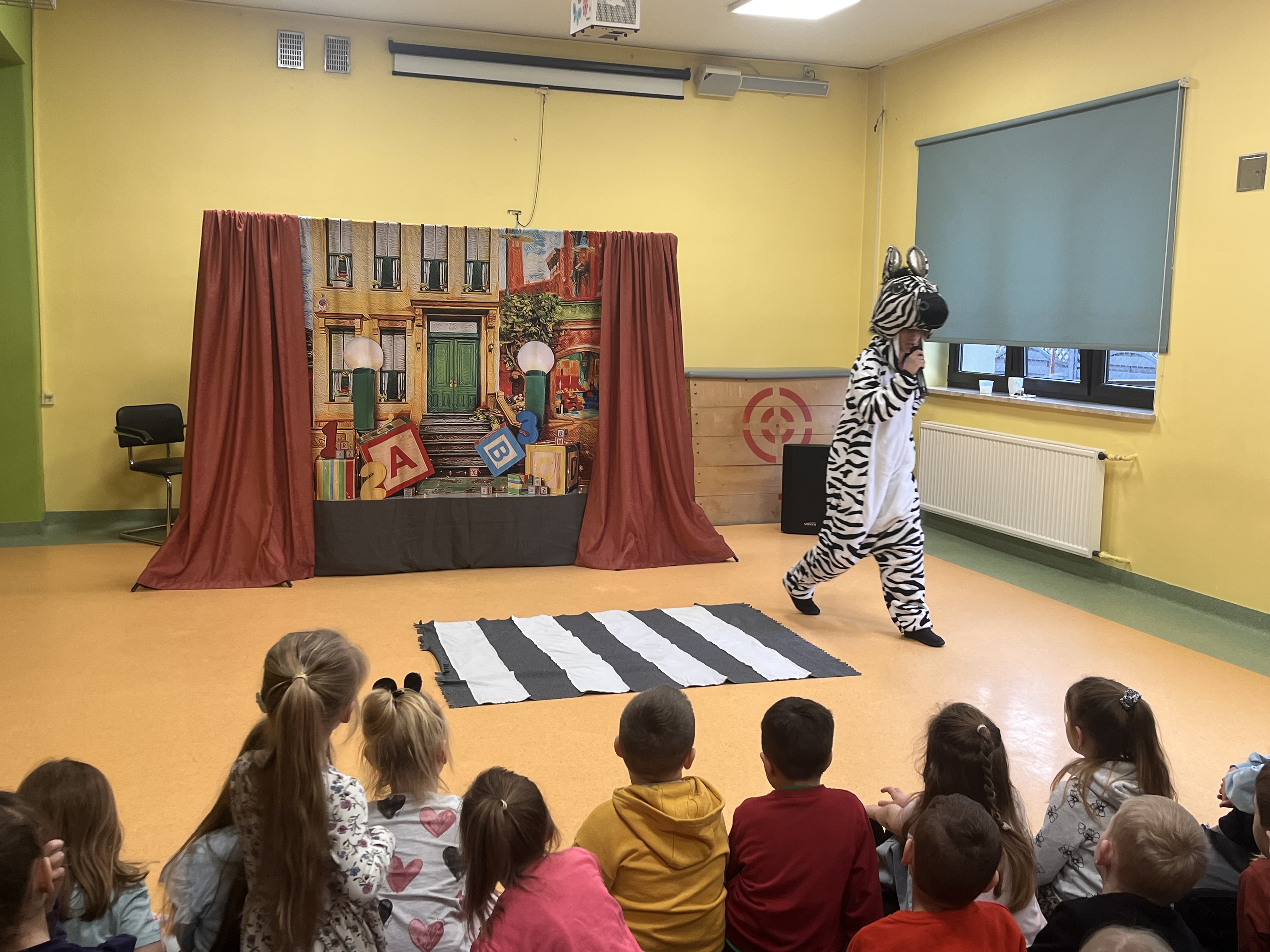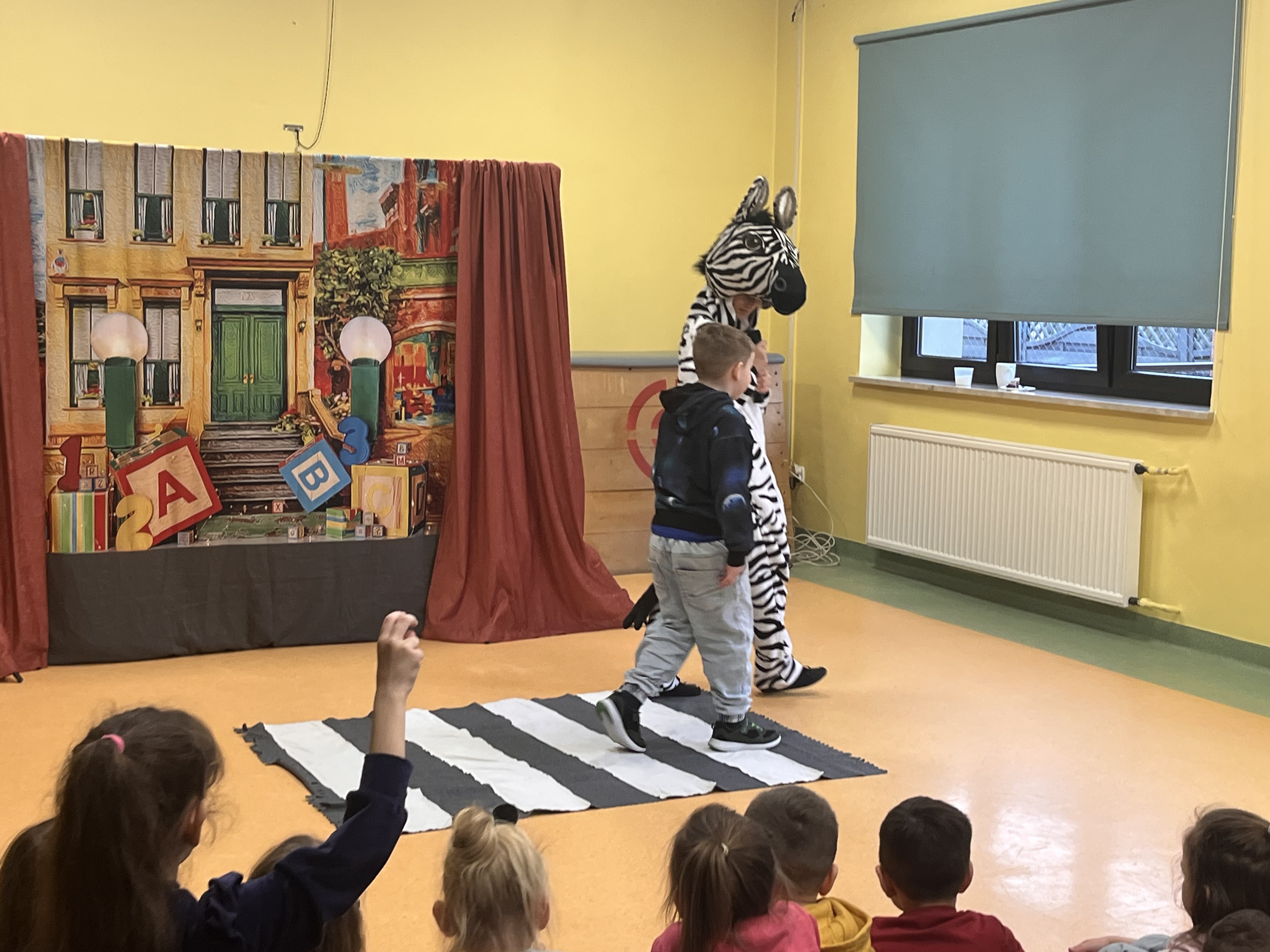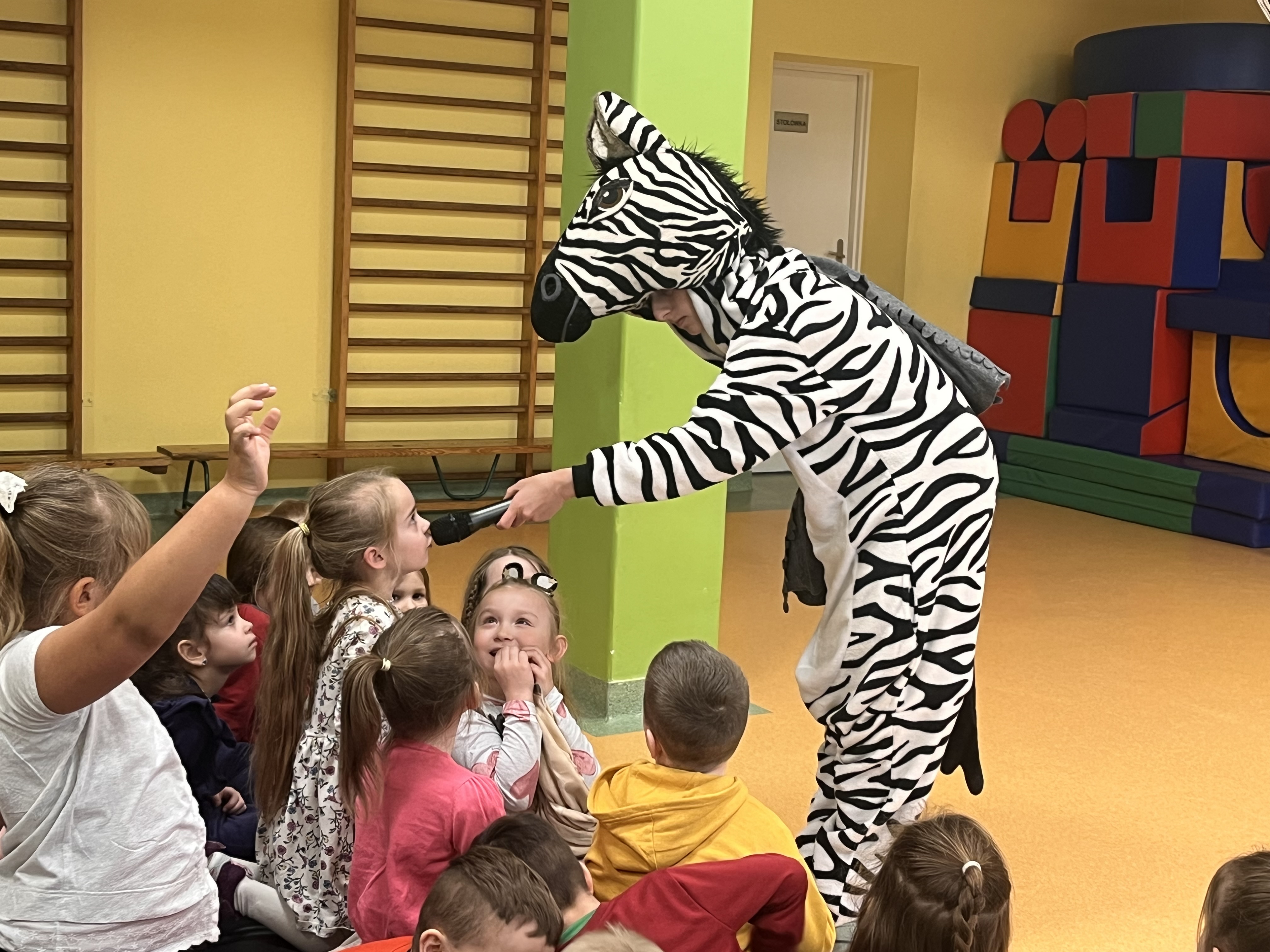 Oddział przedszkolny ponownie odwiedził Teatr Małe Formy z Krakowa z przedstawieniem "Zebra w krainie bezpieczeństwa". Dzieci poznały zasady bezpiecznego poruszania się po pasach oraz na drodze a także jak zachowywać się podczas różnych sytuacji, które mogą spotkać nas na ulicy.