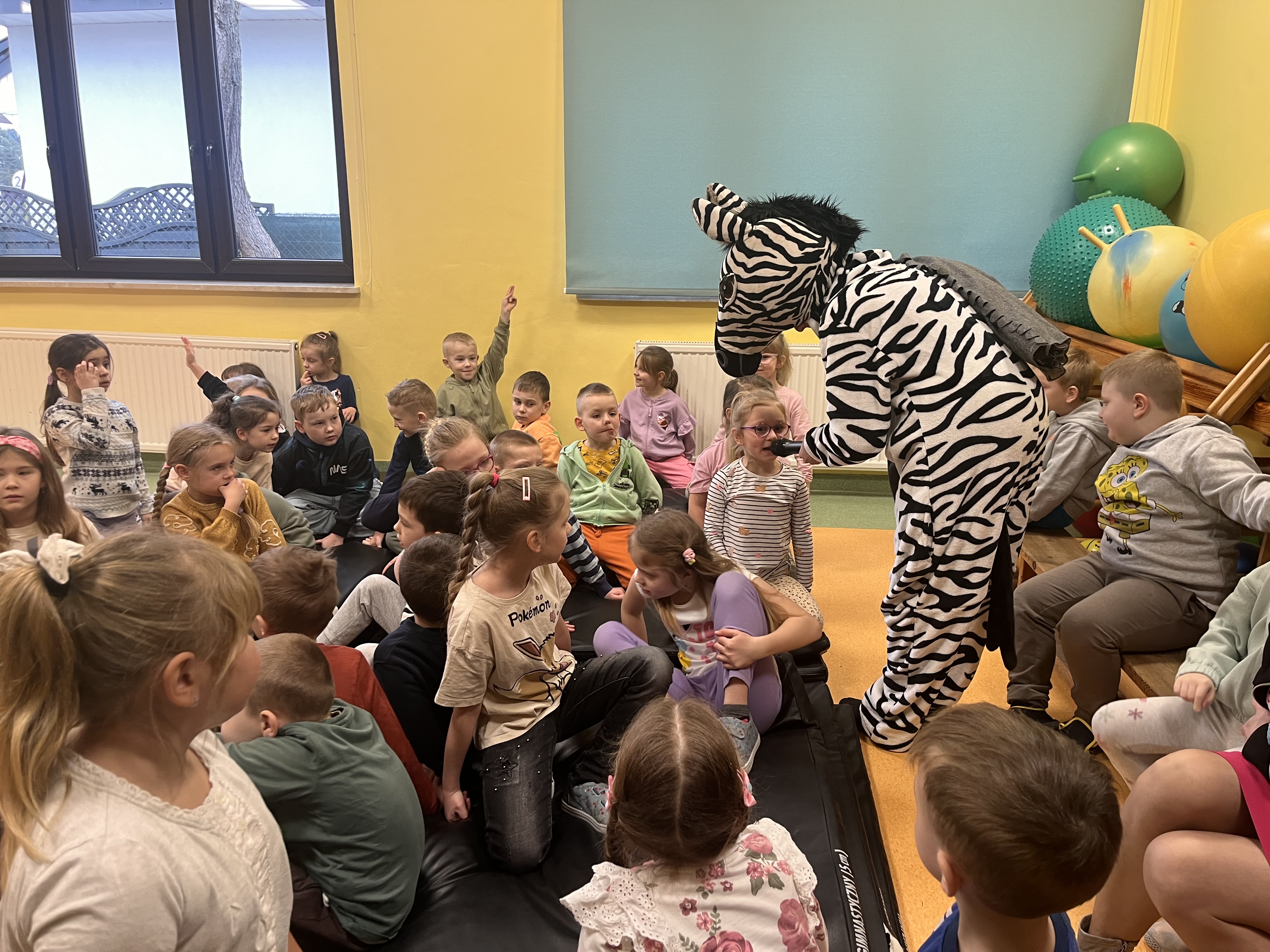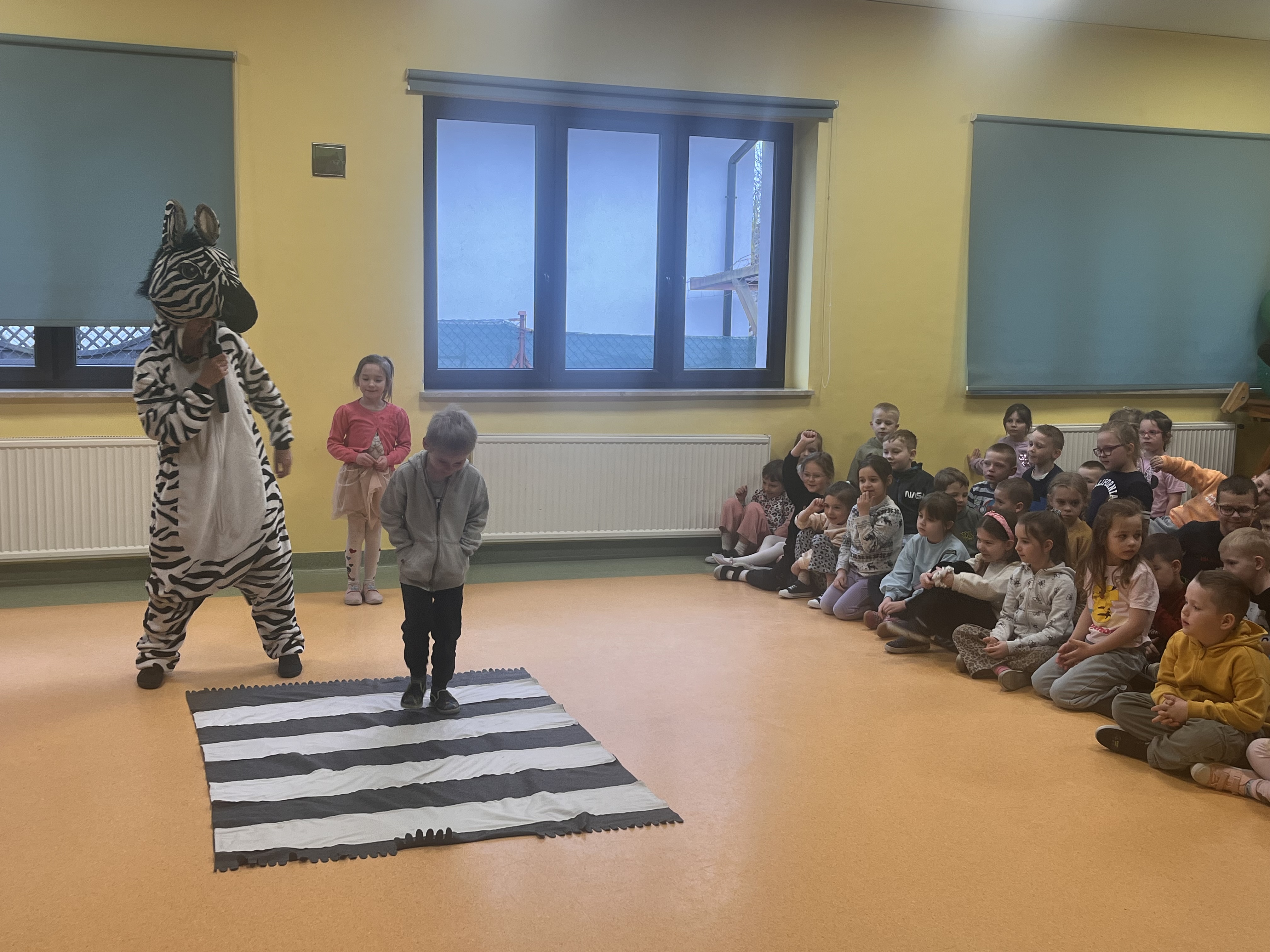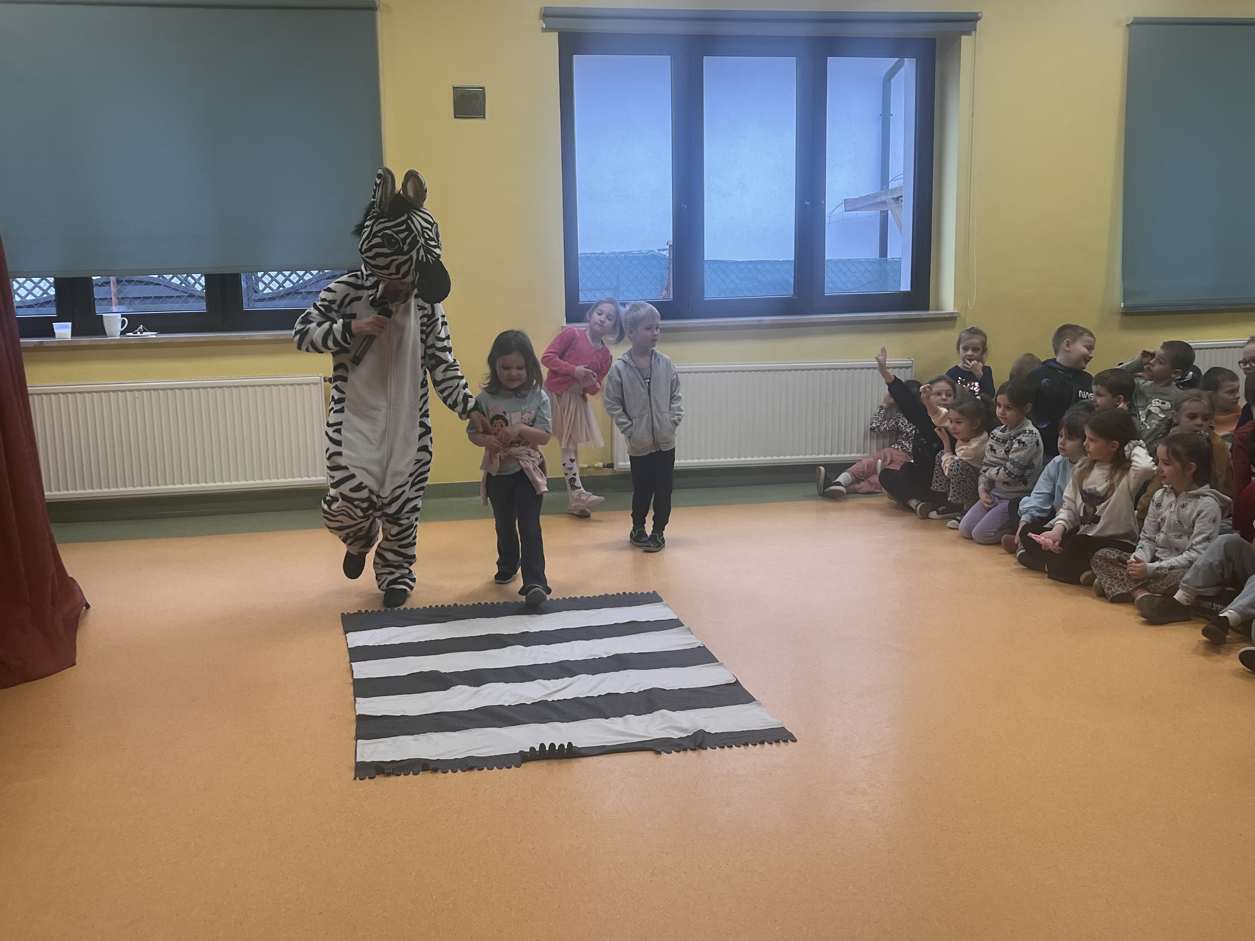 Oddział przedszkolny ponownie odwiedził Teatr Małe Formy z Krakowa z przedstawieniem "Zebra w krainie bezpieczeństwa". Dzieci poznały zasady bezpiecznego poruszania się po pasach oraz na drodze a także jak zachowywać się podczas różnych sytuacji, które mogą spotkać nas na ulicy.