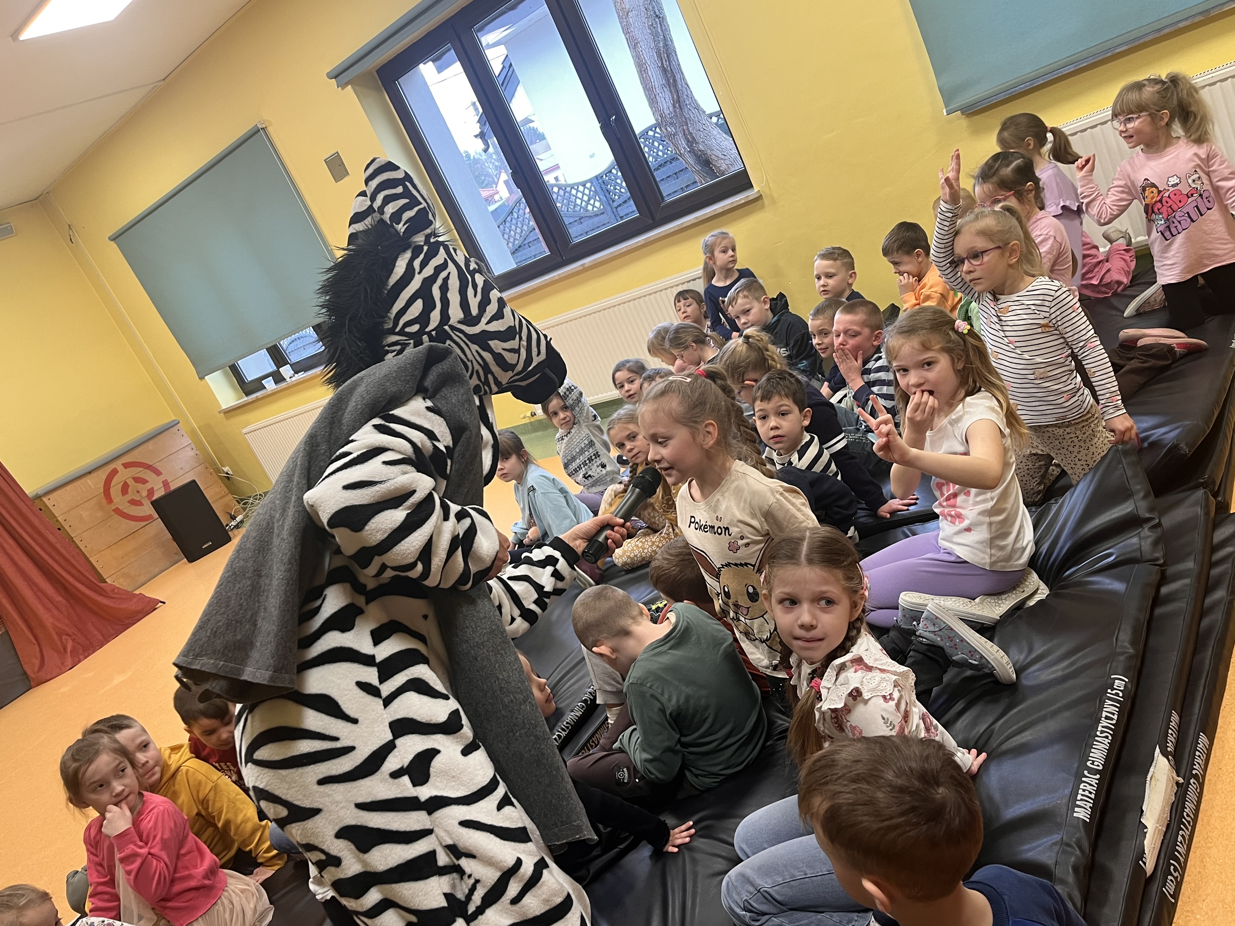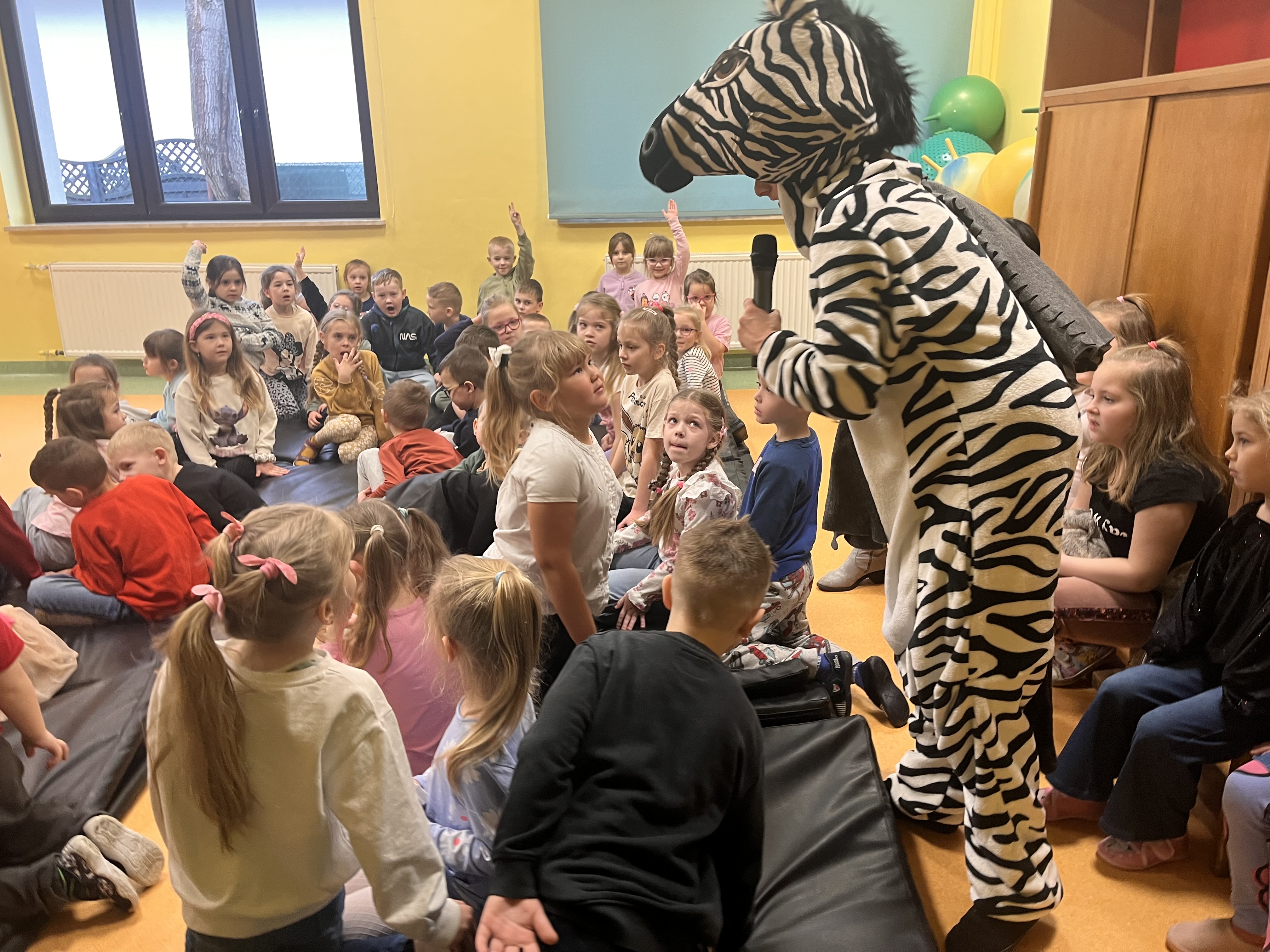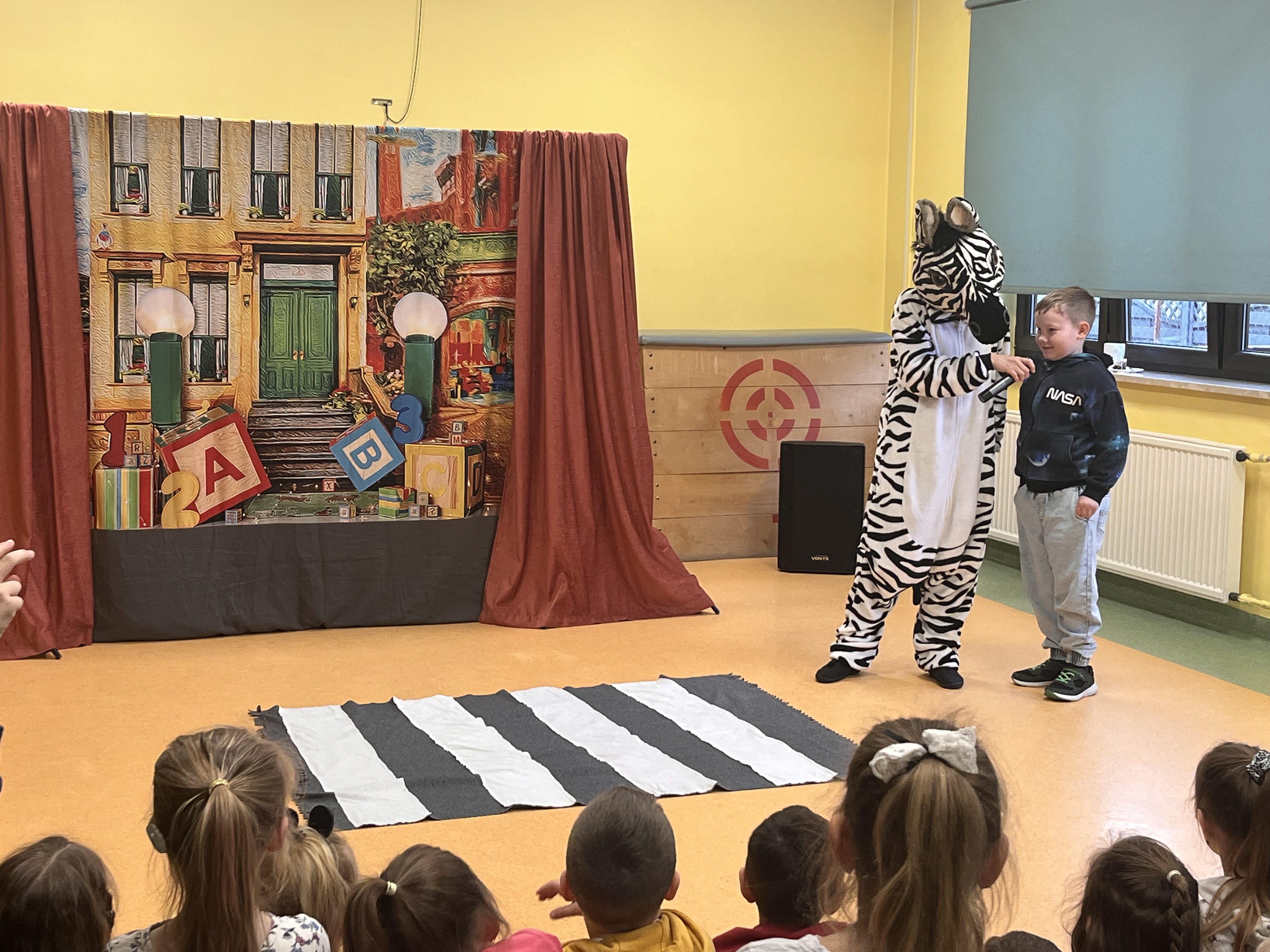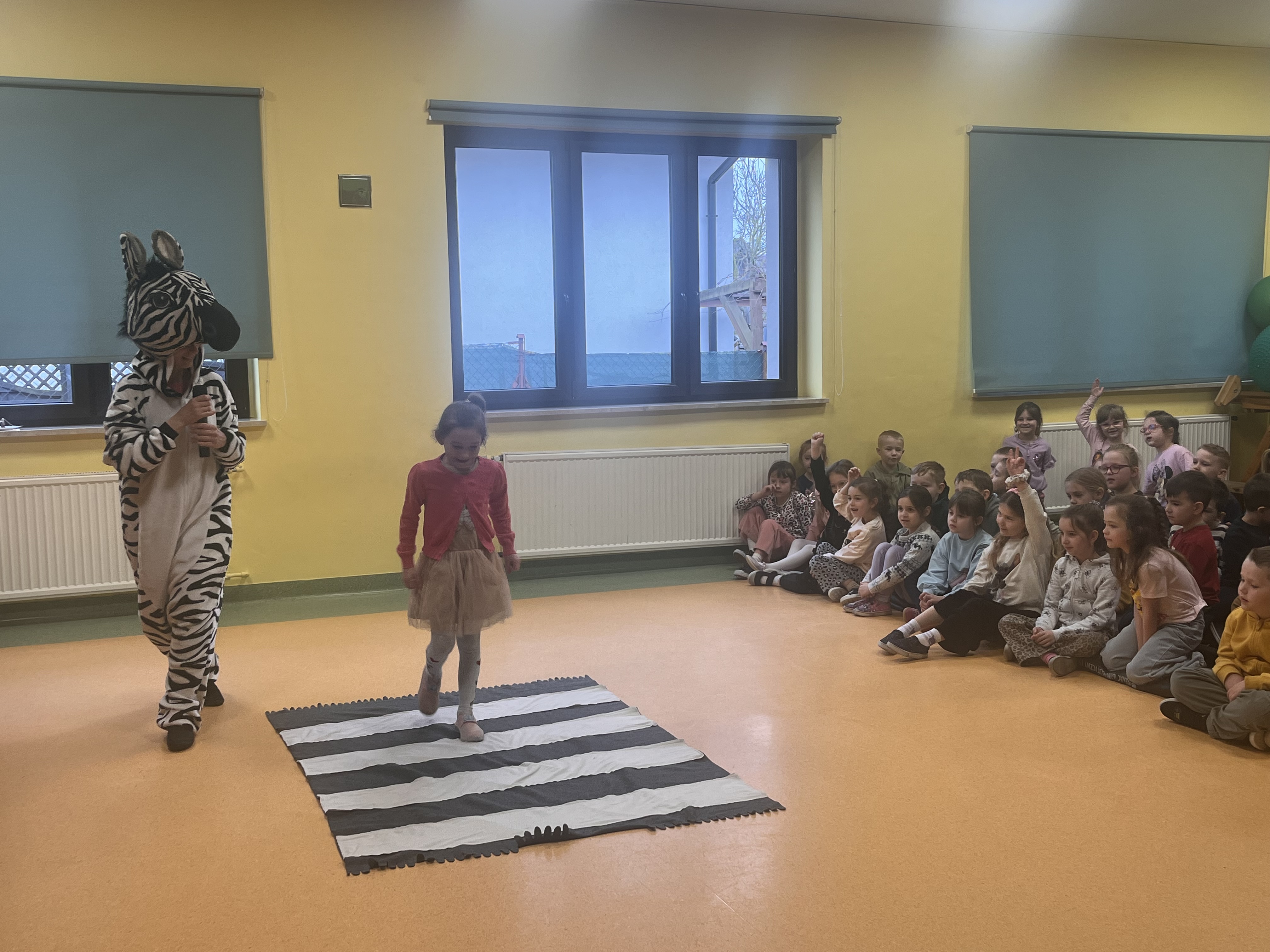 Oddział przedszkolny ponownie odwiedził Teatr Małe Formy z Krakowa z przedstawieniem "Zebra w krainie bezpieczeństwa". Dzieci poznały zasady bezpiecznego poruszania się po pasach oraz na drodze a także jak zachowywać się podczas różnych sytuacji, które mogą spotkać nas na ulicy.