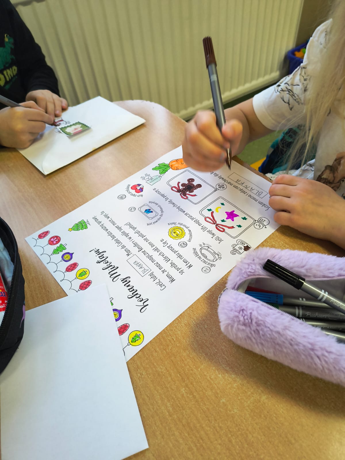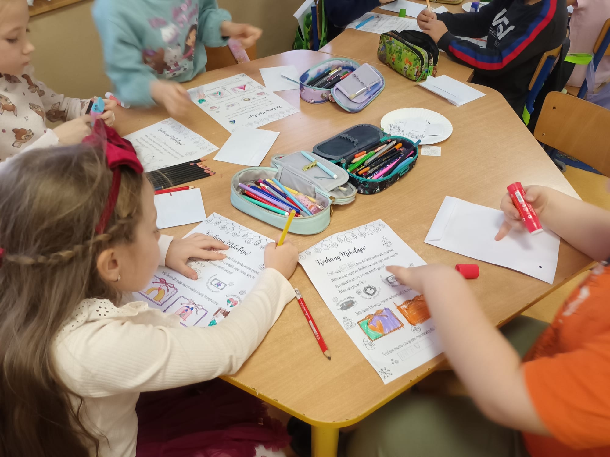 Na początku zajęć rozmawialiśmy o tradycjach mikołajkowych oraz o tym, skąd pochodzi zwyczaj pisania listów.