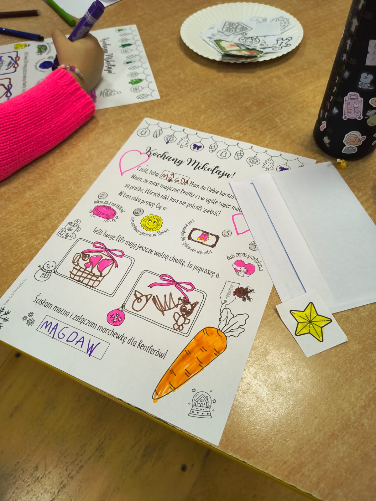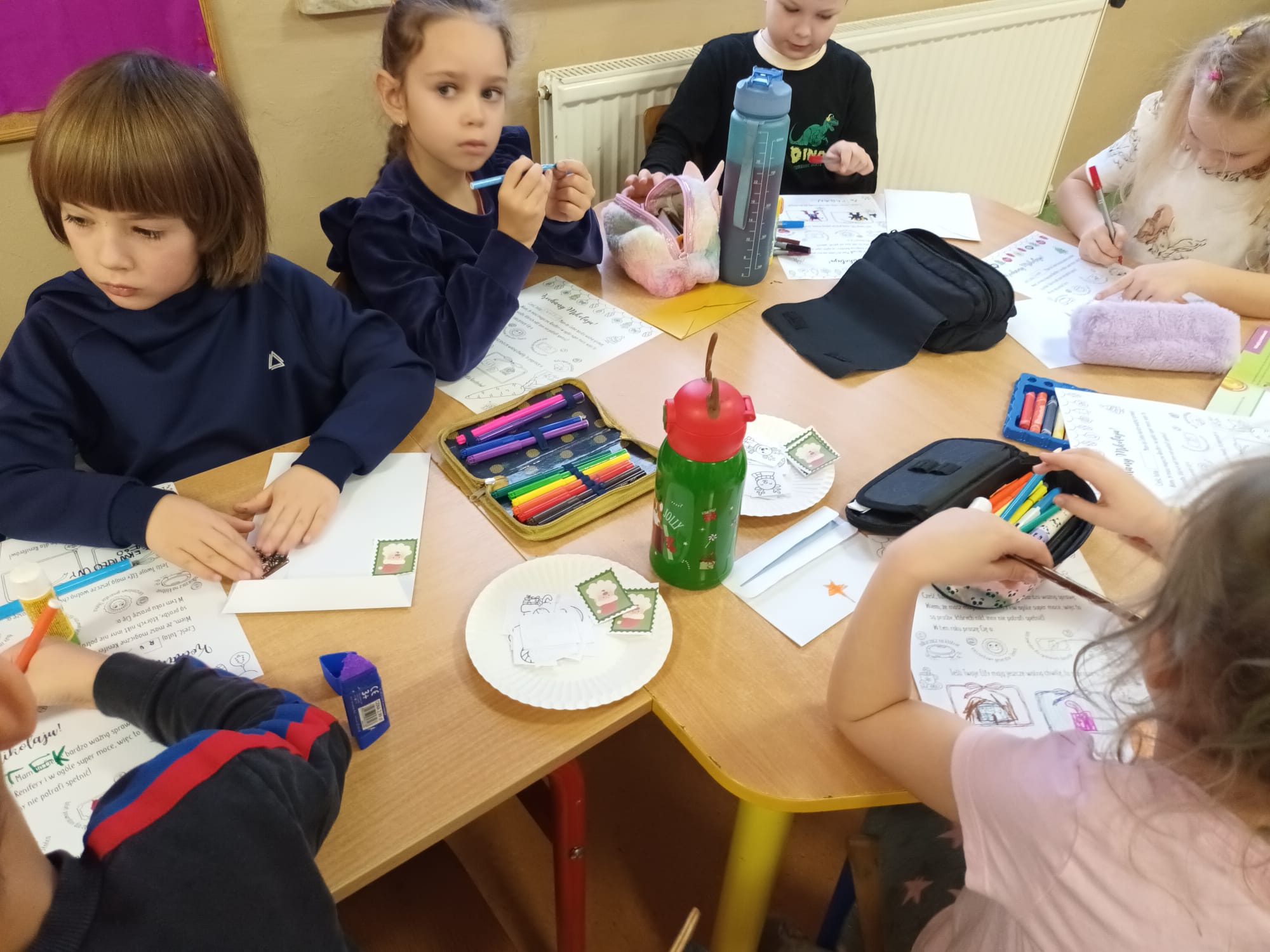 Następnie dzieci otrzymały kolorowe kartki, naklejki, kredki i pisaki, aby ich listy były jak najbardziej wyjątkowe.