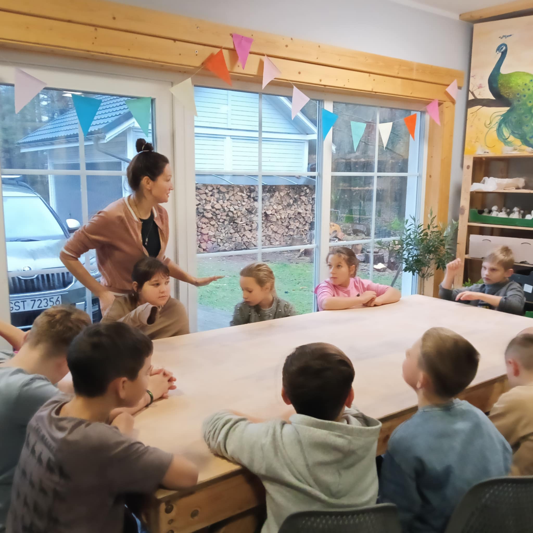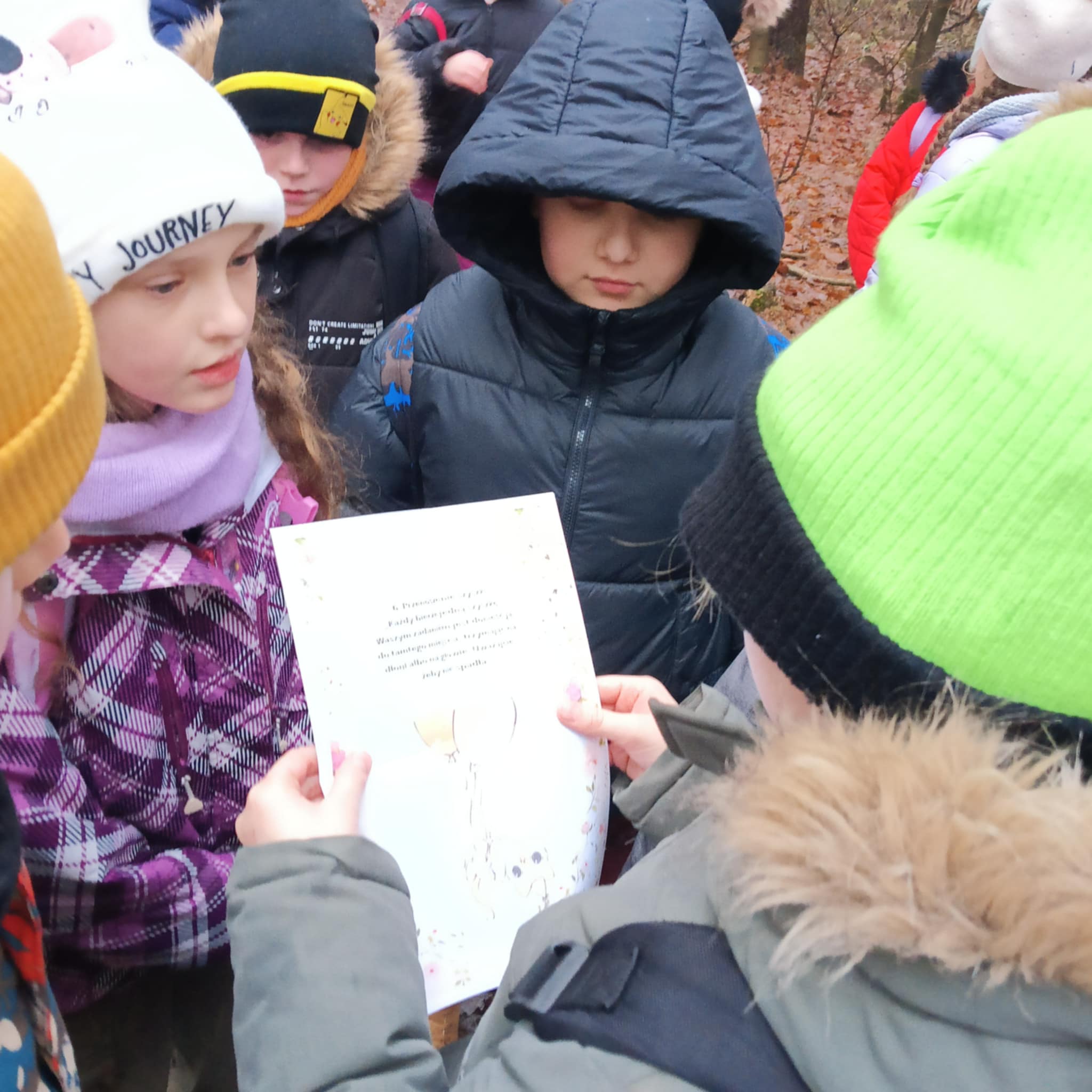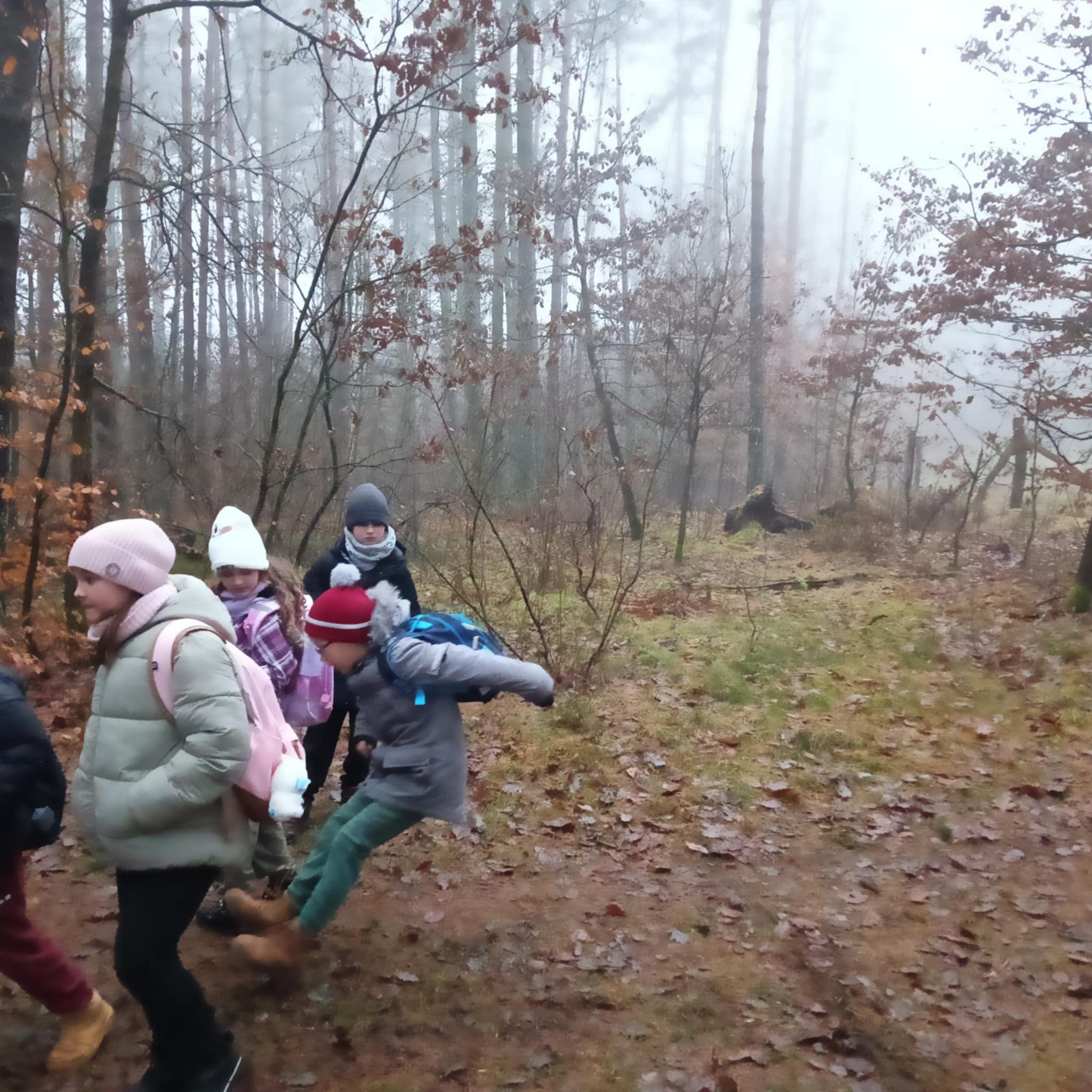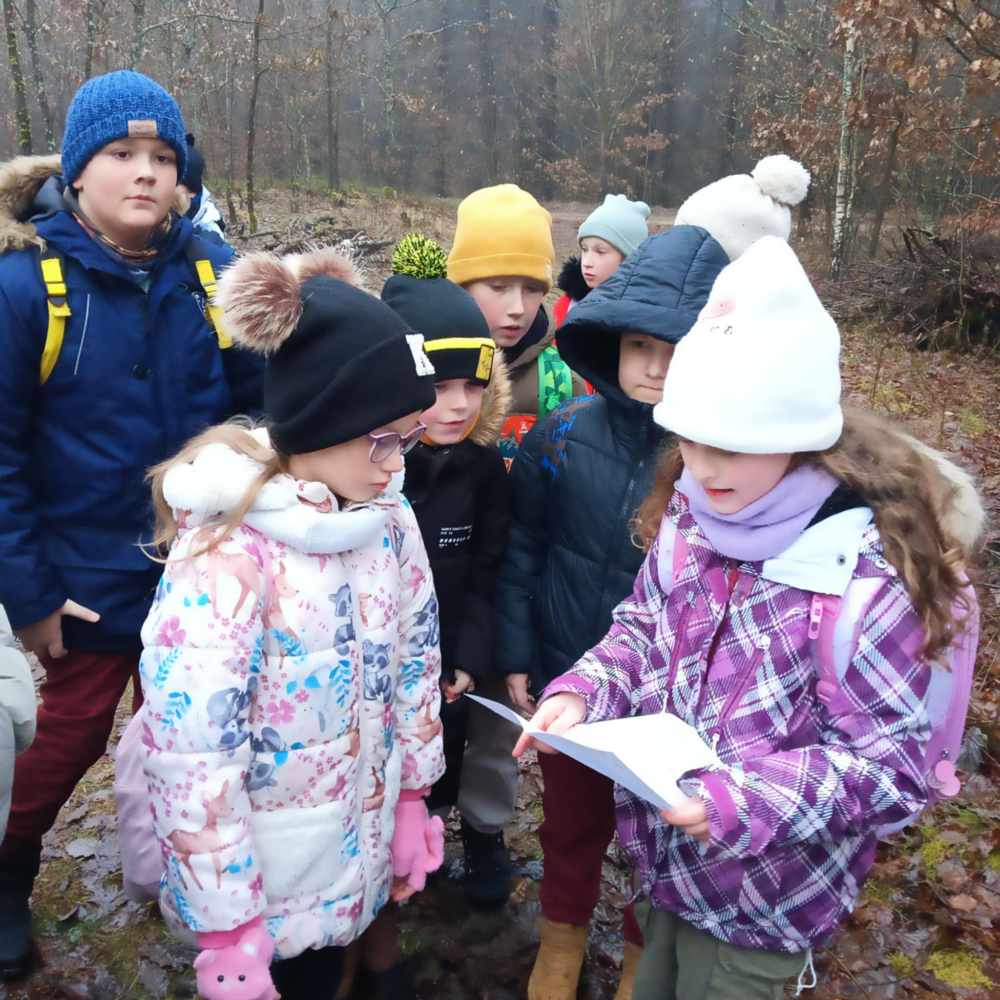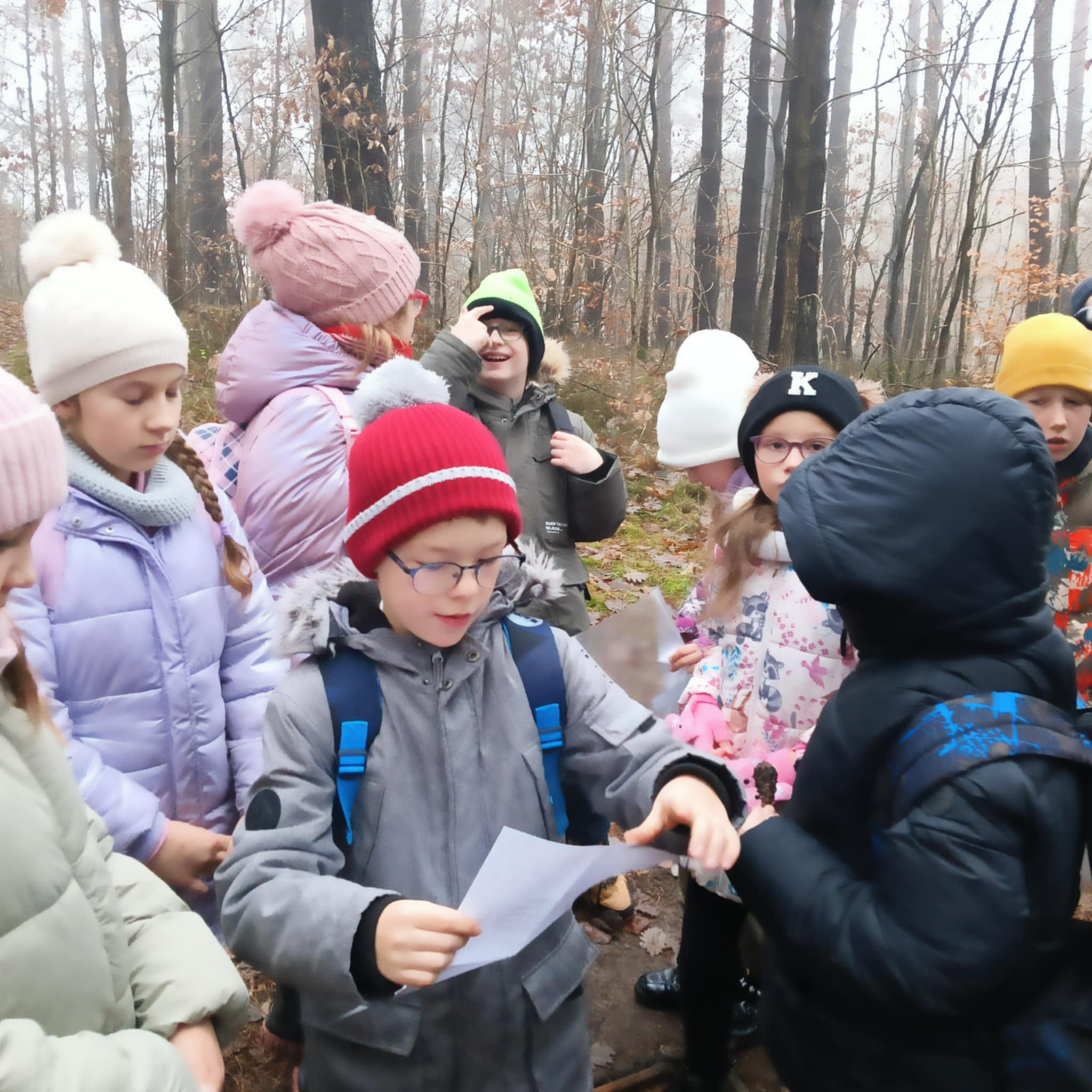 Dnia 05.12.2025r. klasa 3c wybrała się na świąteczne warsztaty ceramiczne do Pani Doroty Wróbel. Już sama droga była niezwykła – uczniowie musieli przejść 1,5 km przez las, rozwiązując zadania przygotowane przez gospodynię. Wszyscy wykonywali je z ogromnym zaangażowaniem i radością. Na końcu wędrówki dzieci zobaczyły biały domek stojący przy stawie, w którym mieszka Gang Słodziaków – pies Sonia, kot, króliczki i kaczki biegusy. W progu czekała już Pani Dorota, która przywitała klasę bardzo serdecznie.