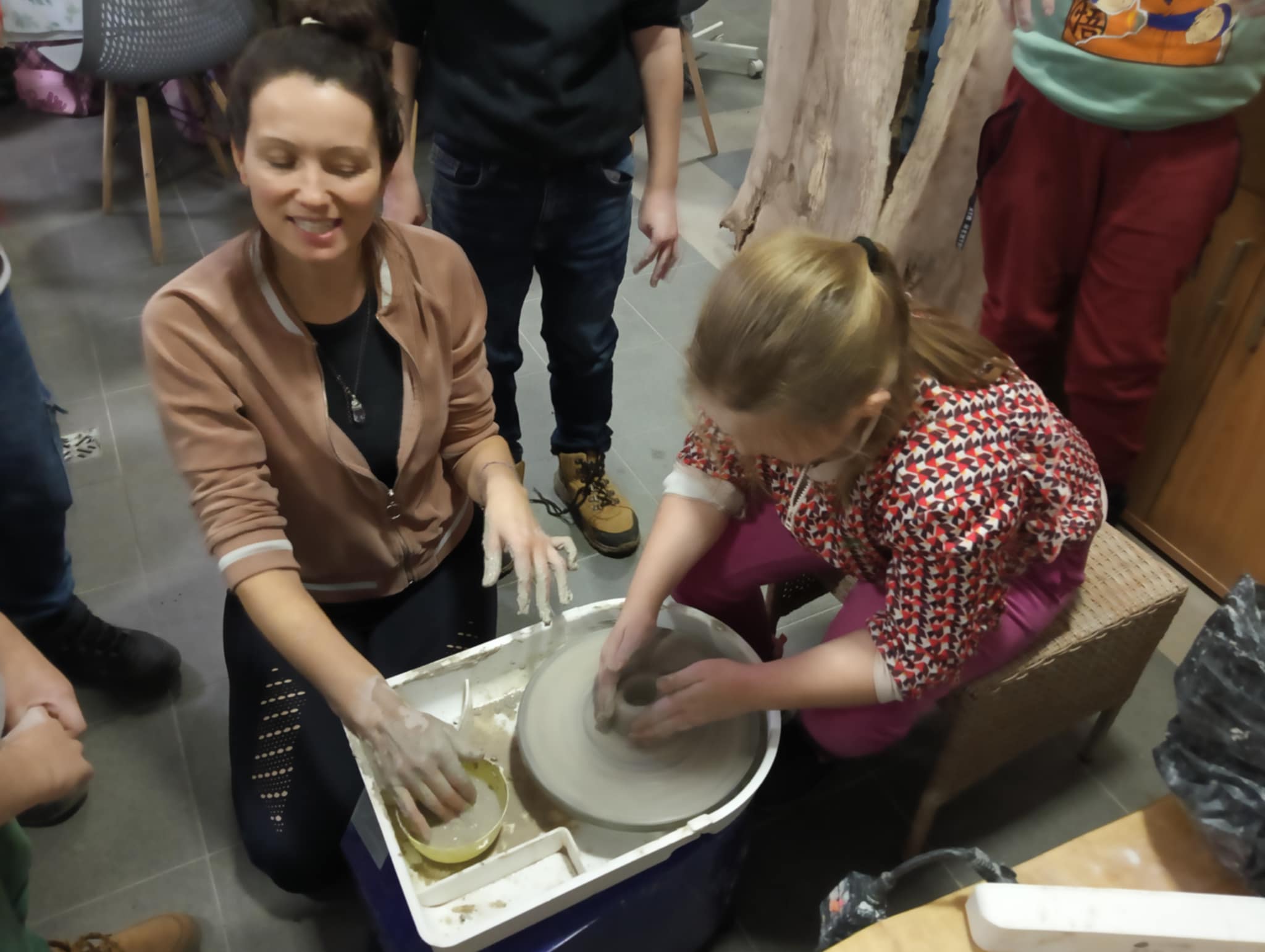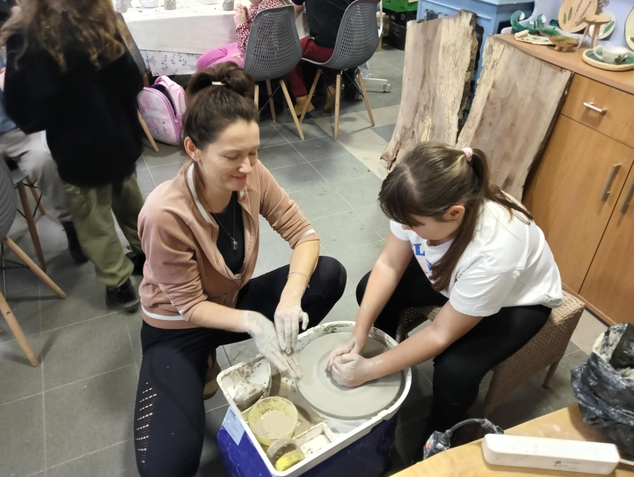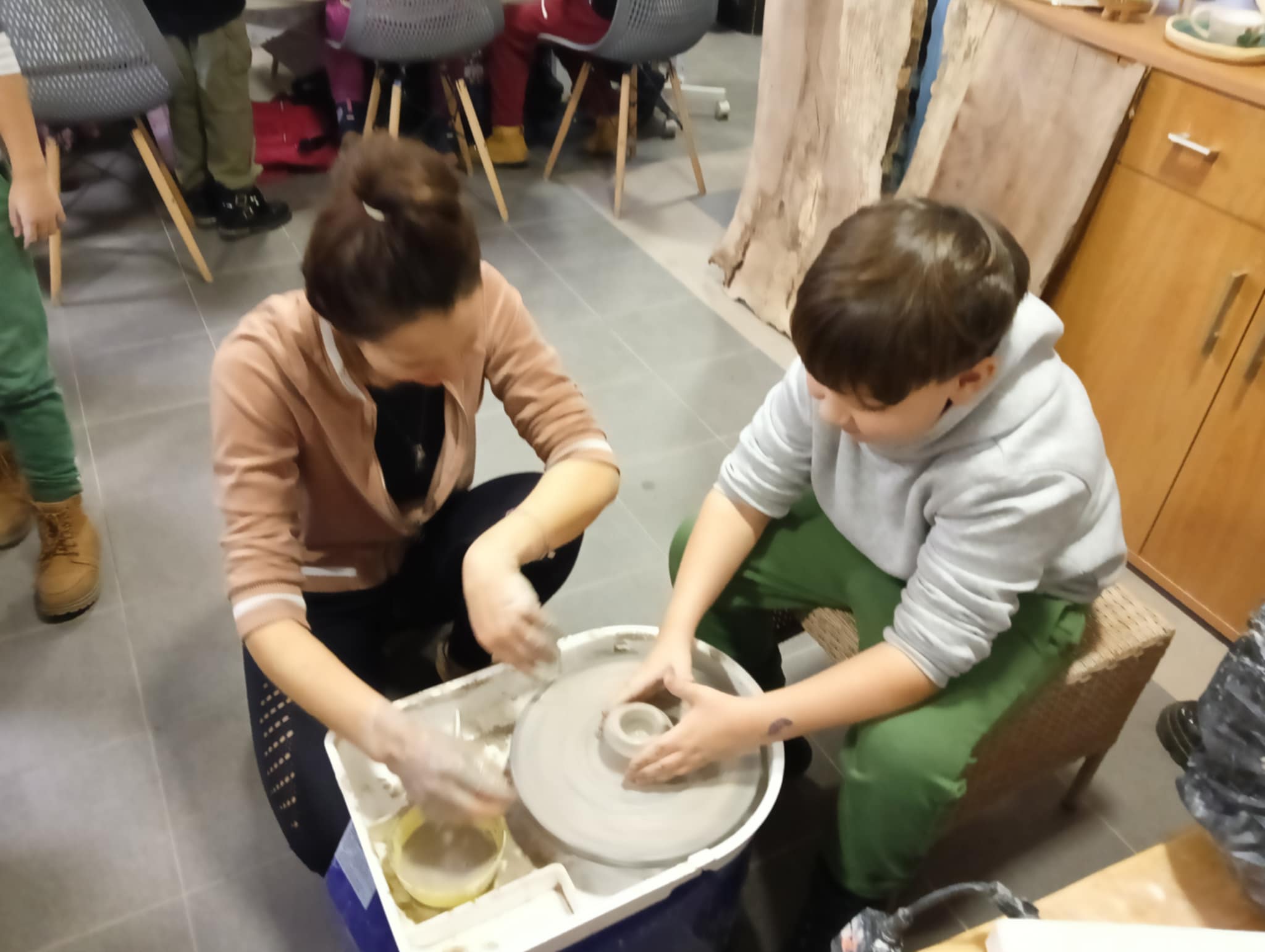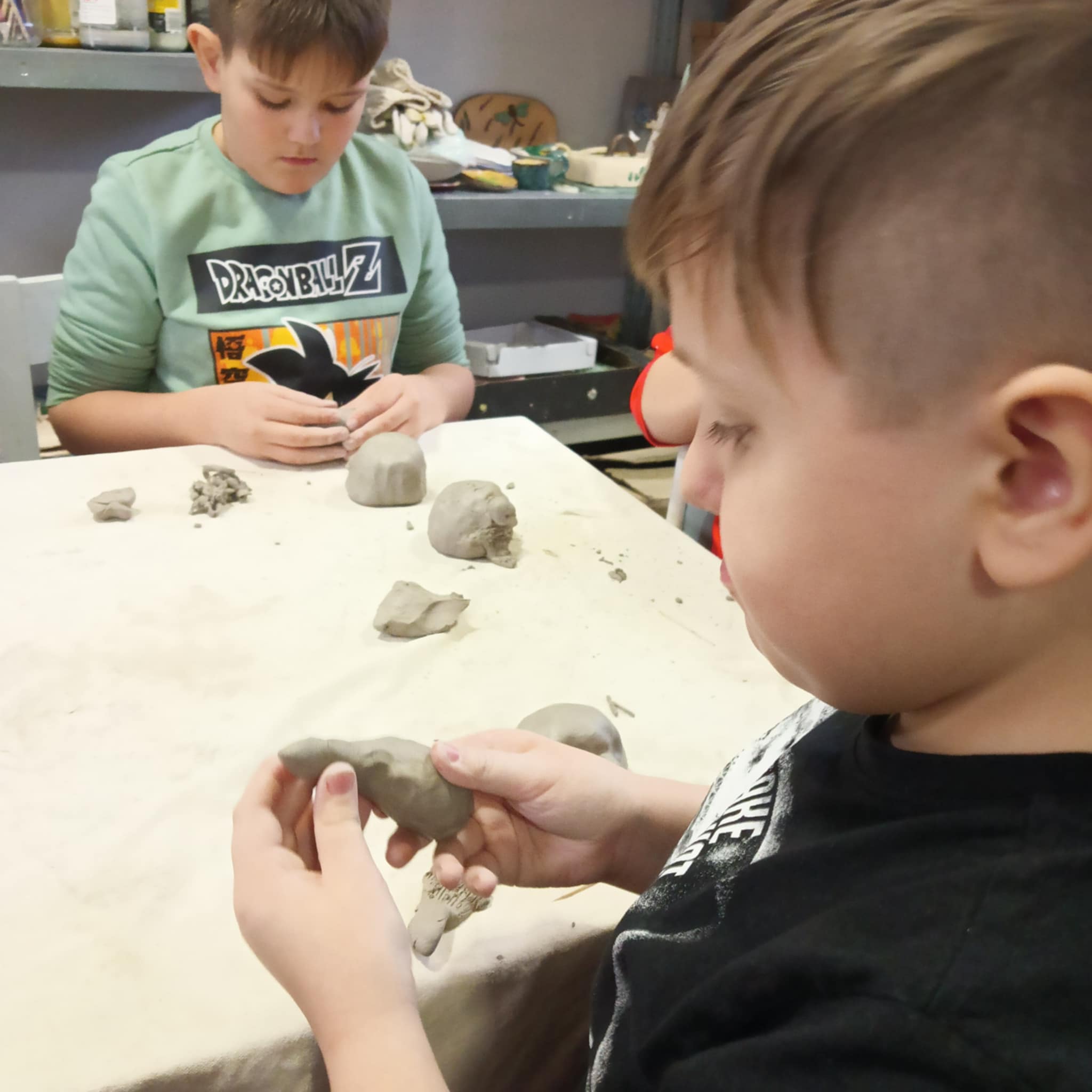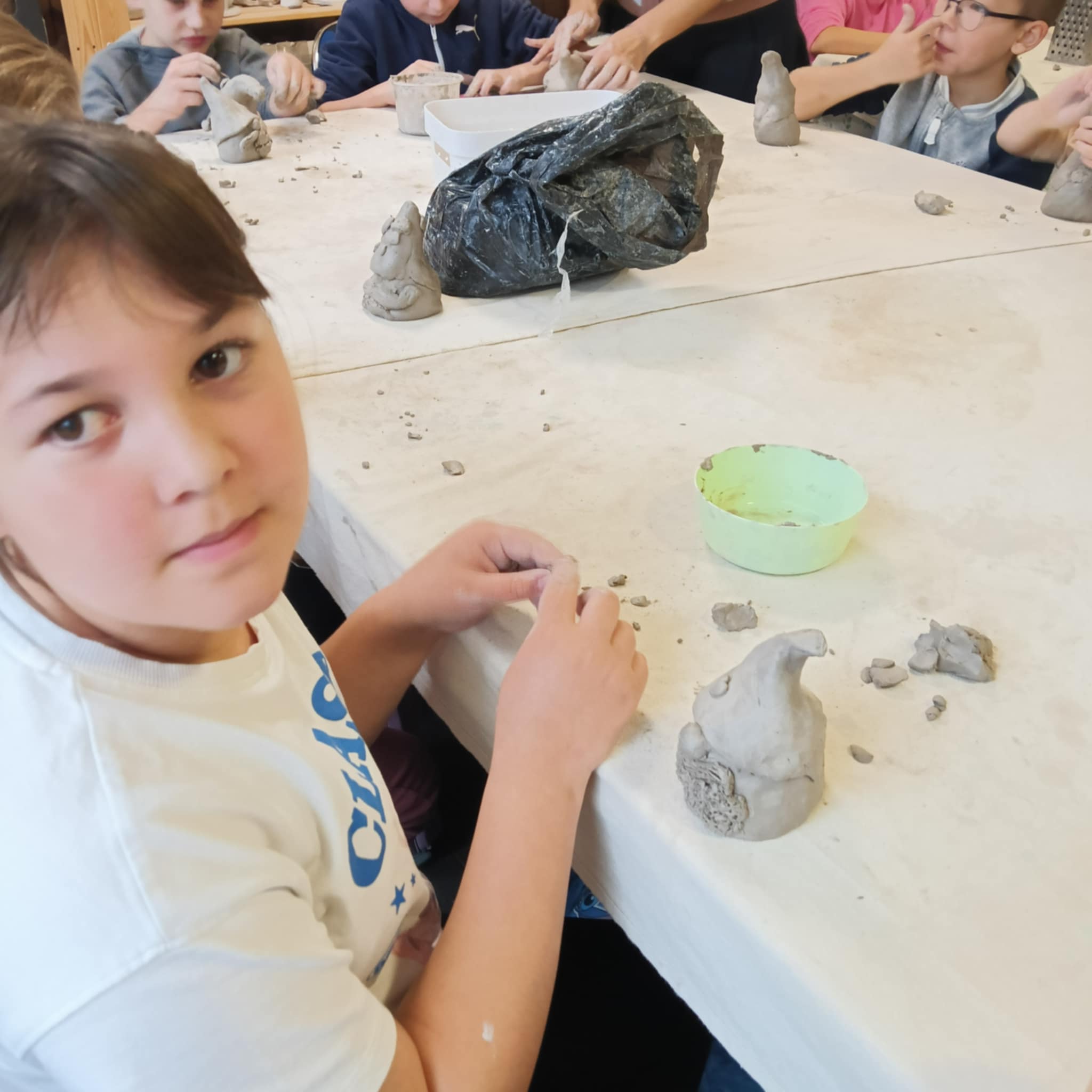 Podczas warsztatów uczniowie poznali tajniki pracy z gliną, dowiedzieli się skąd się ją wydobywa i krok po kroku nauczyli się, jak ulepić świątecznego skrzata. Największą atrakcją było lepienie na kole garncarskim – sprawiło ono dzieciom mnóstwo radości i pozwoliło poczuć się jak prawdziwi artyści. Na zakończenie wycieczki uczniowie nakarmili króliczki, podziwiali kaczki biegusy i bawili się z pieskiem Sonią.