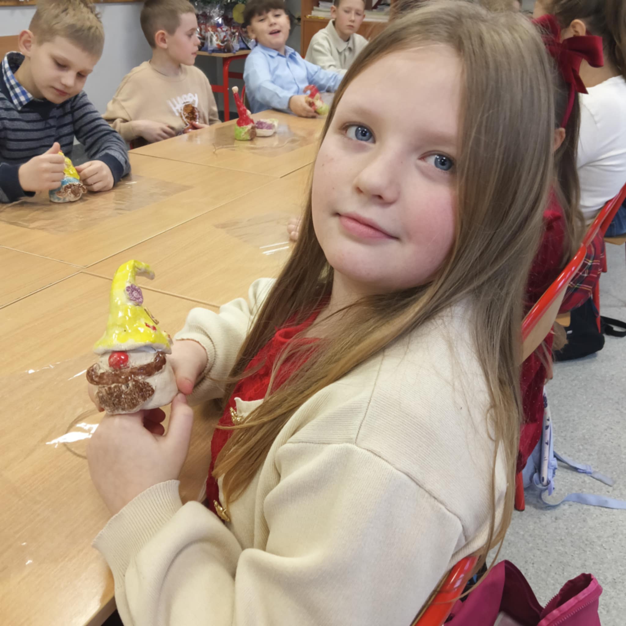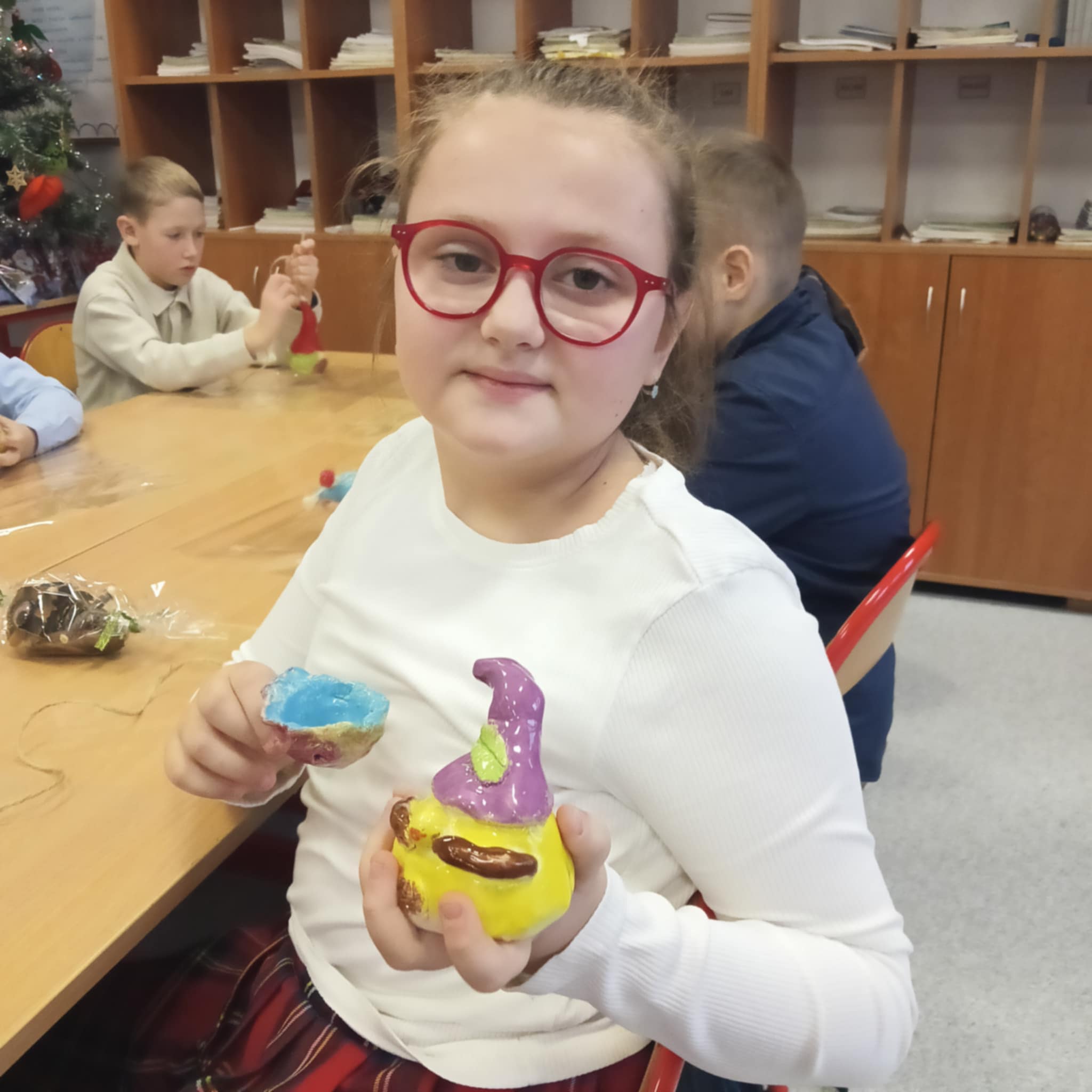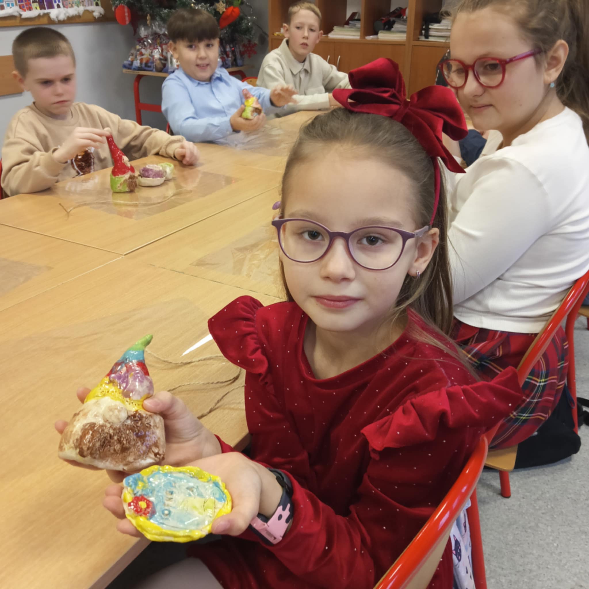 Po zakończeniu procesu wypalania skrzaty wróciły do szkoły, gdzie dzieci samodzielnie je zapakowały, przygotowując w ten sposób wyjątkowy, własnoręcznie wykonany prezent świąteczny dla Rodziców.