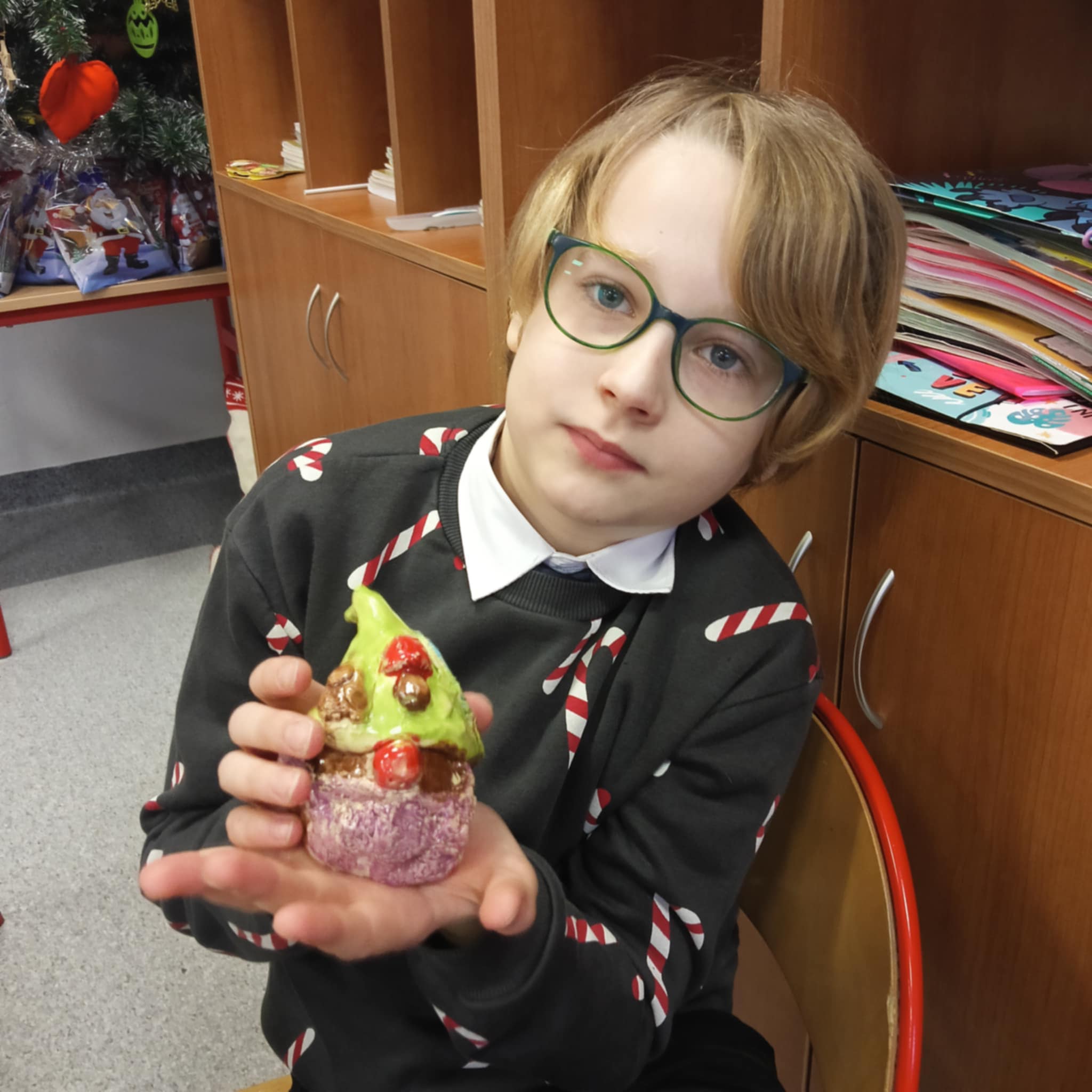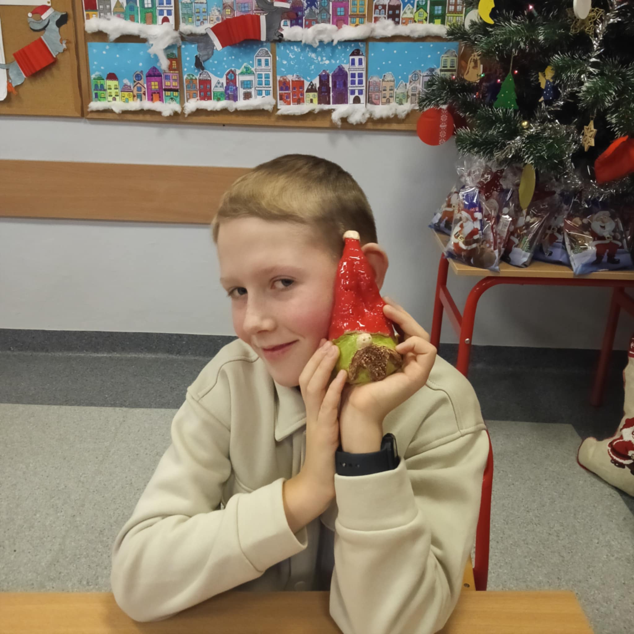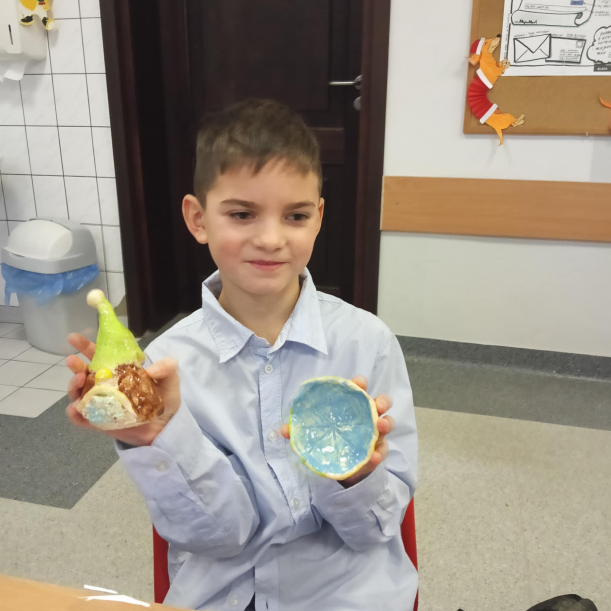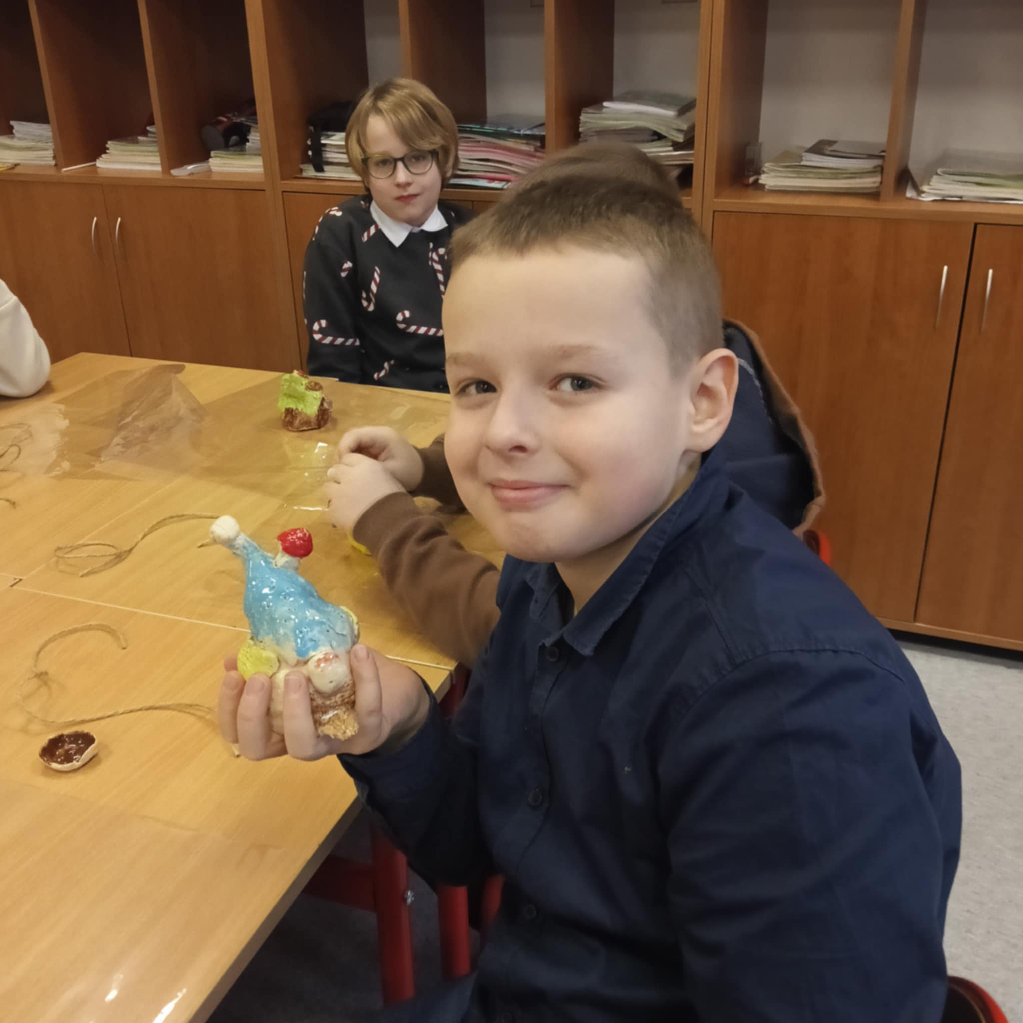 Po zakończeniu procesu wypalania skrzaty wróciły do szkoły, gdzie dzieci samodzielnie je zapakowały, przygotowując w ten sposób wyjątkowy, własnoręcznie wykonany prezent świąteczny dla Rodziców.