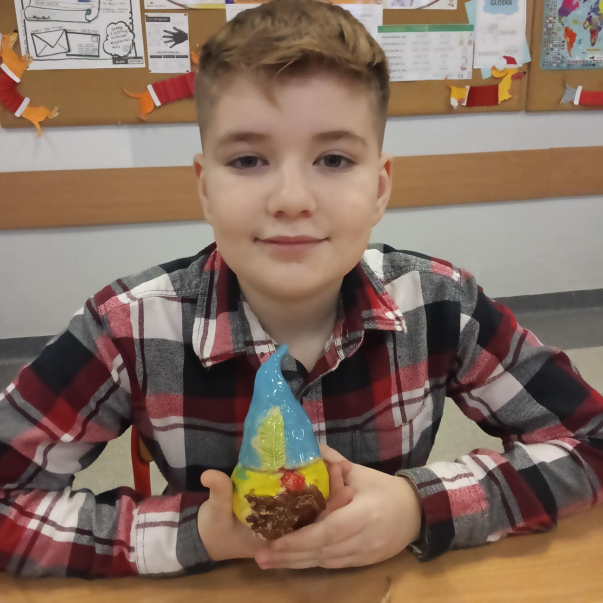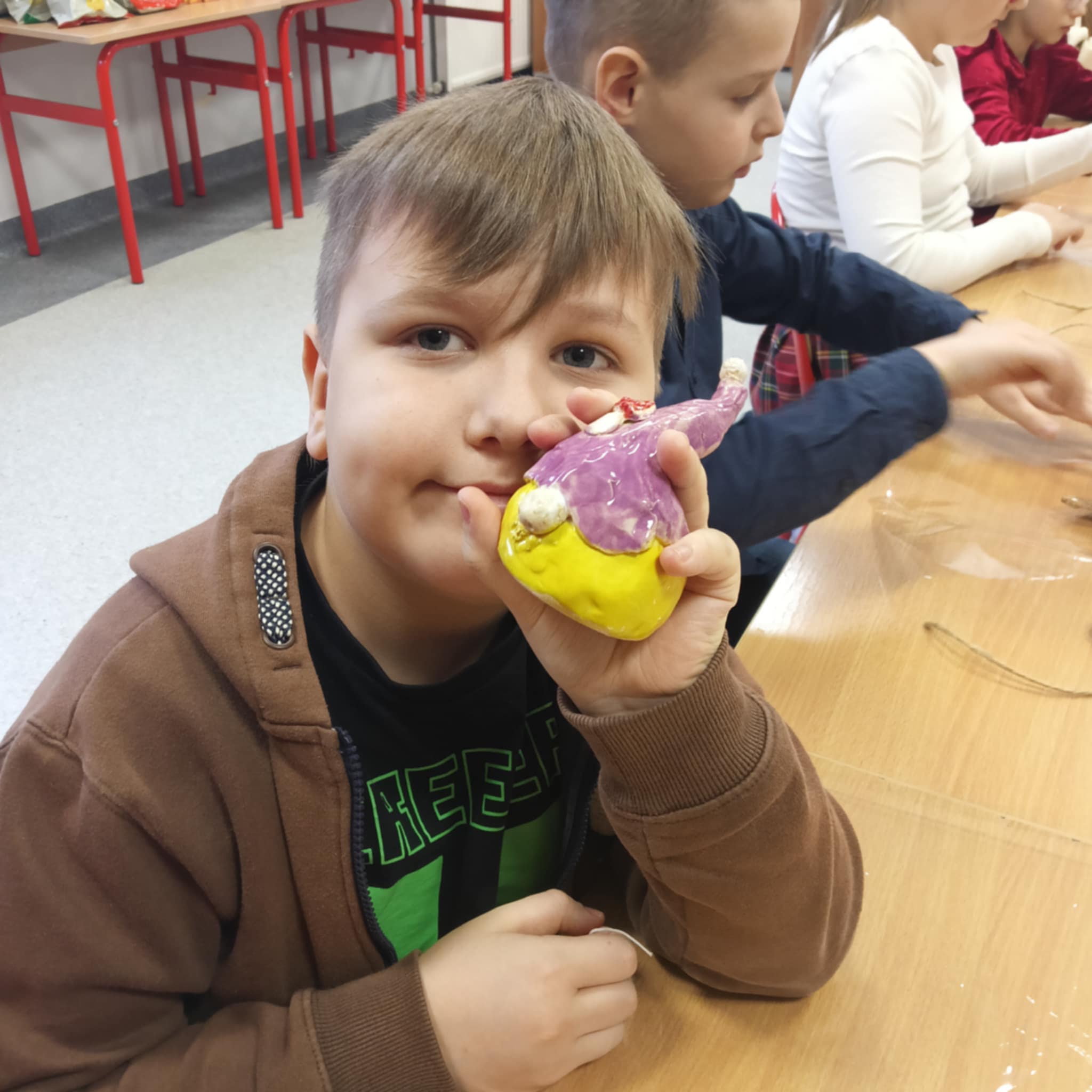 Tym razem uczniowie klasy 3c mieli okazję zobaczyć swoje własnoręcznie wykonane wcześniej skrzaty, które zostały już wypalone w piecu ceramicznym. Podczas zajęć figurki zostały oszkliwione, a następnie zabrane do ponownego wypalenia, aby uzyskać trwały i efektowny wygląd.
