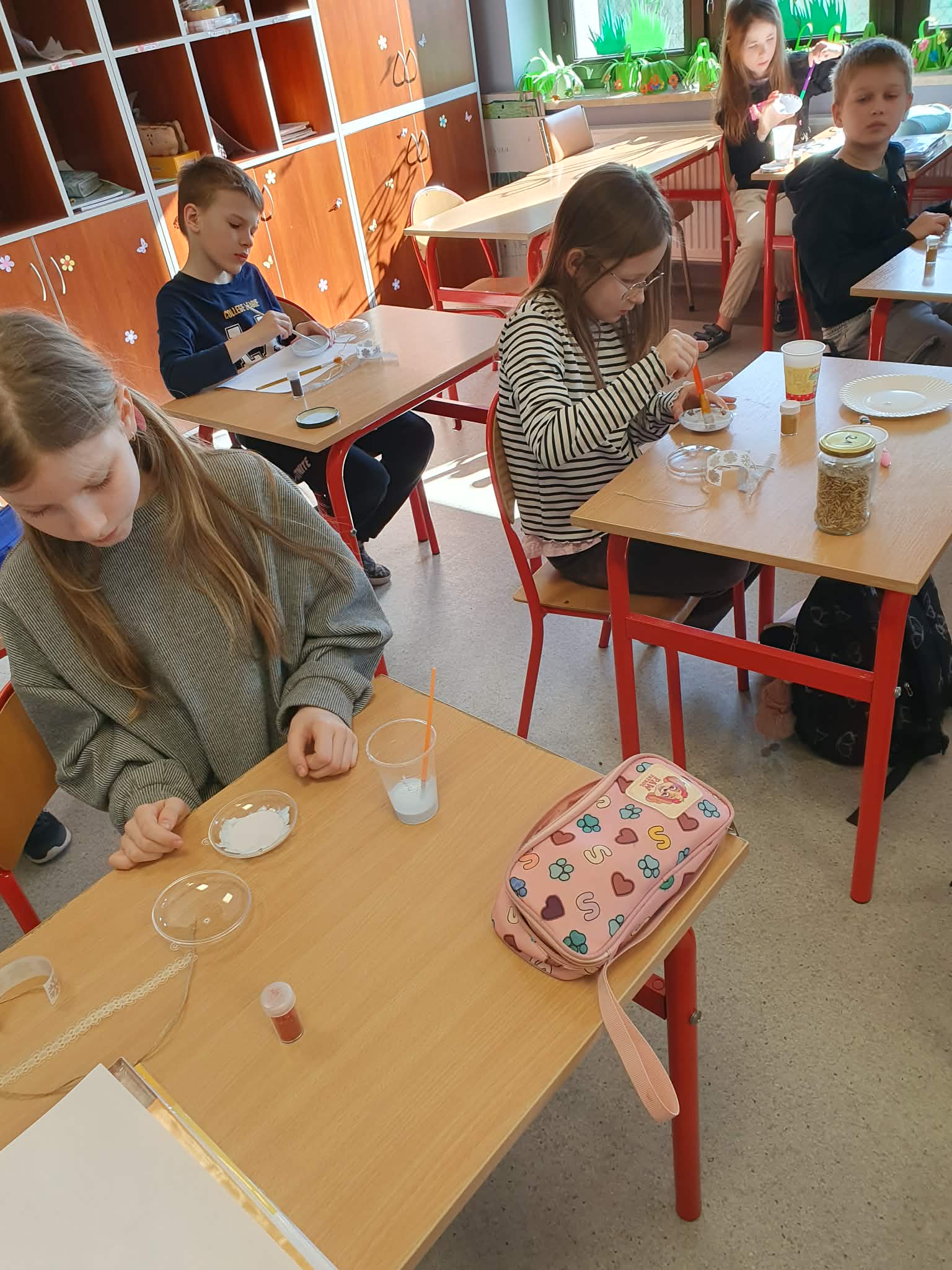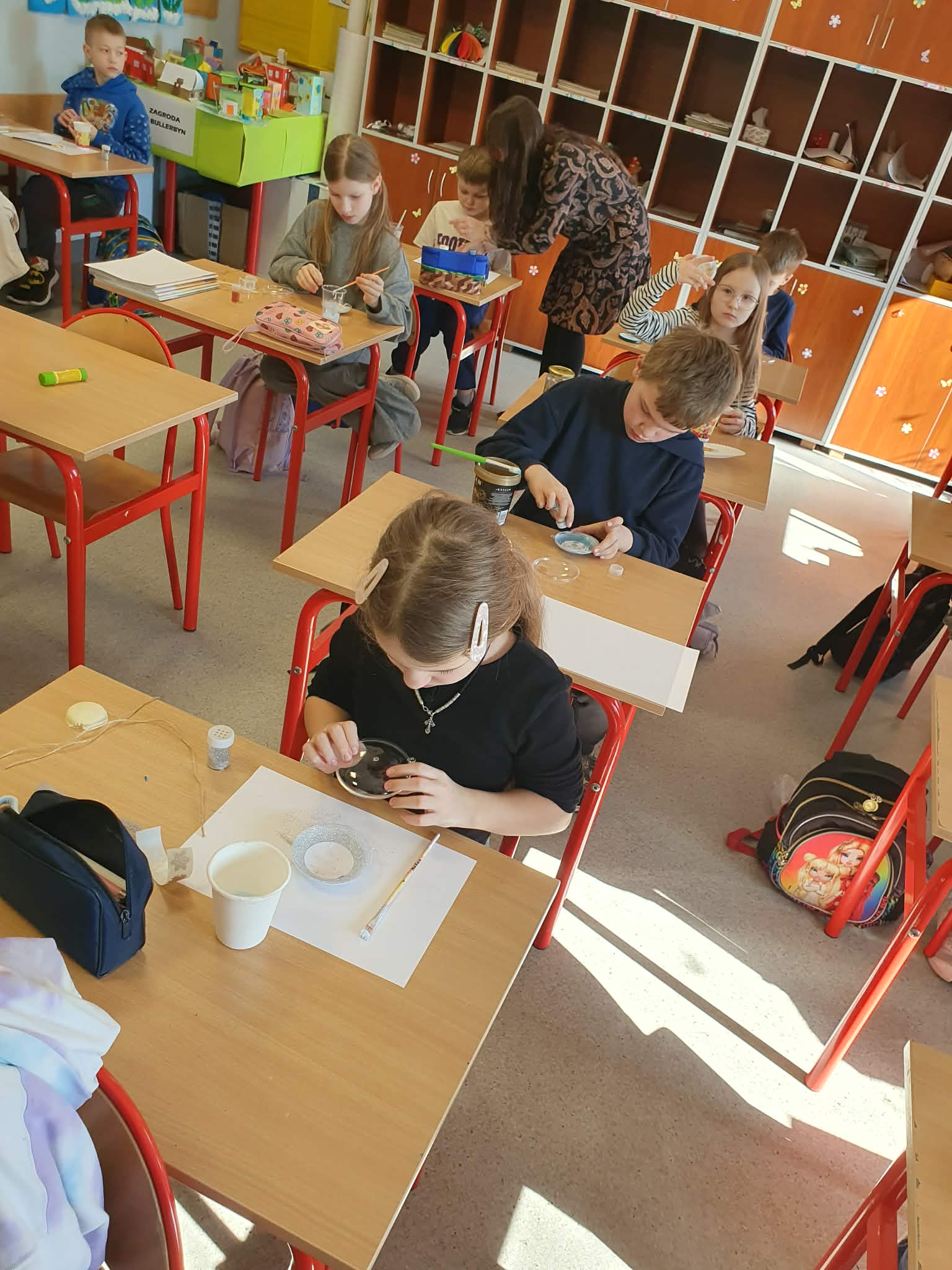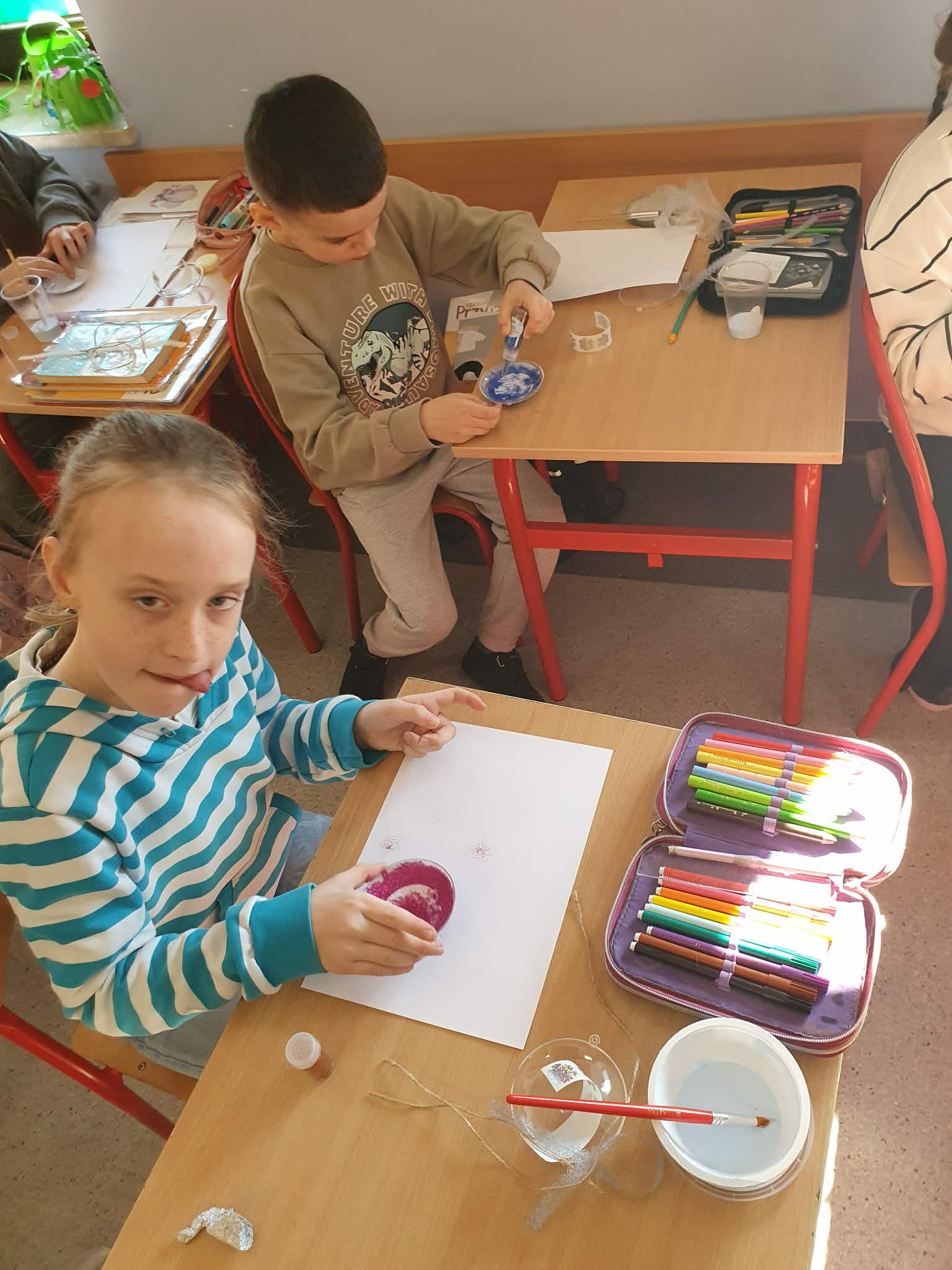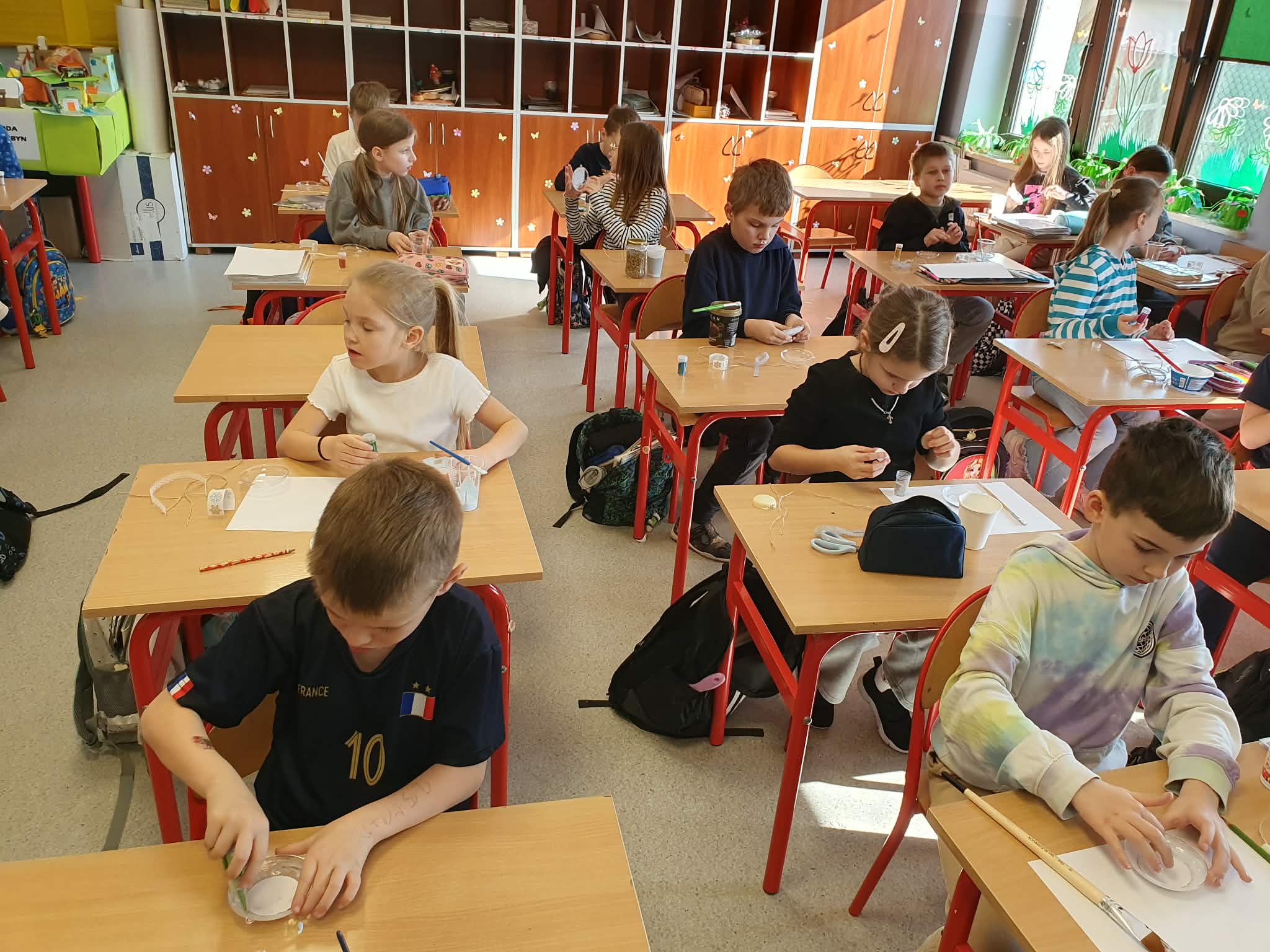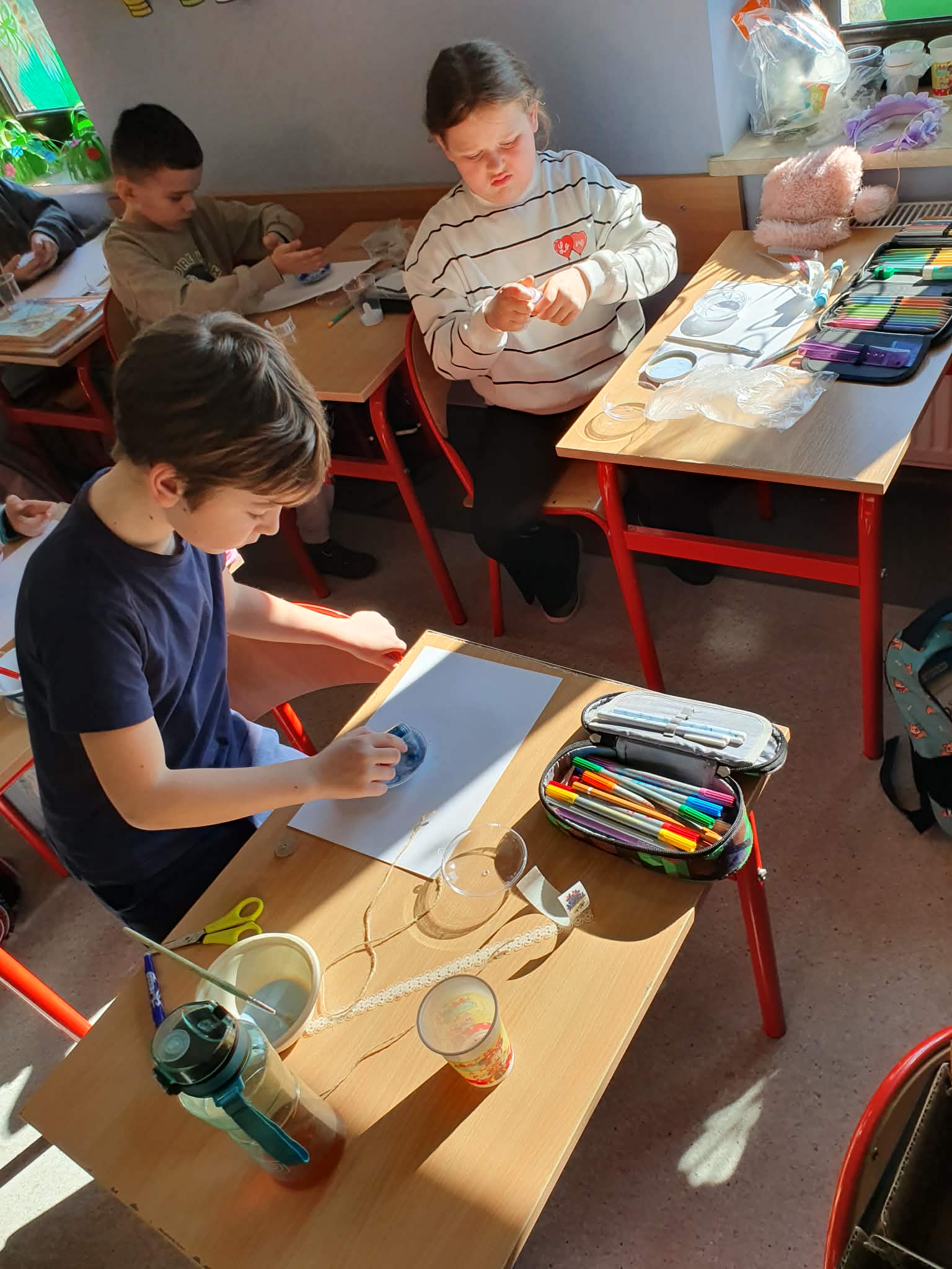 Podczas zajęć uczniowie mieli okazję nie tylko poznać nowe techniki plastyczne, ale również wykazać się własną kreatywnością i pomysłowością. Każdy kolejny etap pracy wzbudzał w dzieciach coraz większe zainteresowanie i ekscytację – z niecierpliwością oczekiwały na efekt końcowy swoich dzieł.