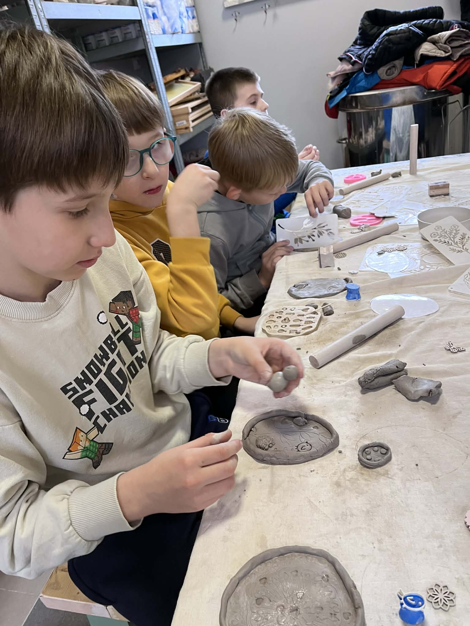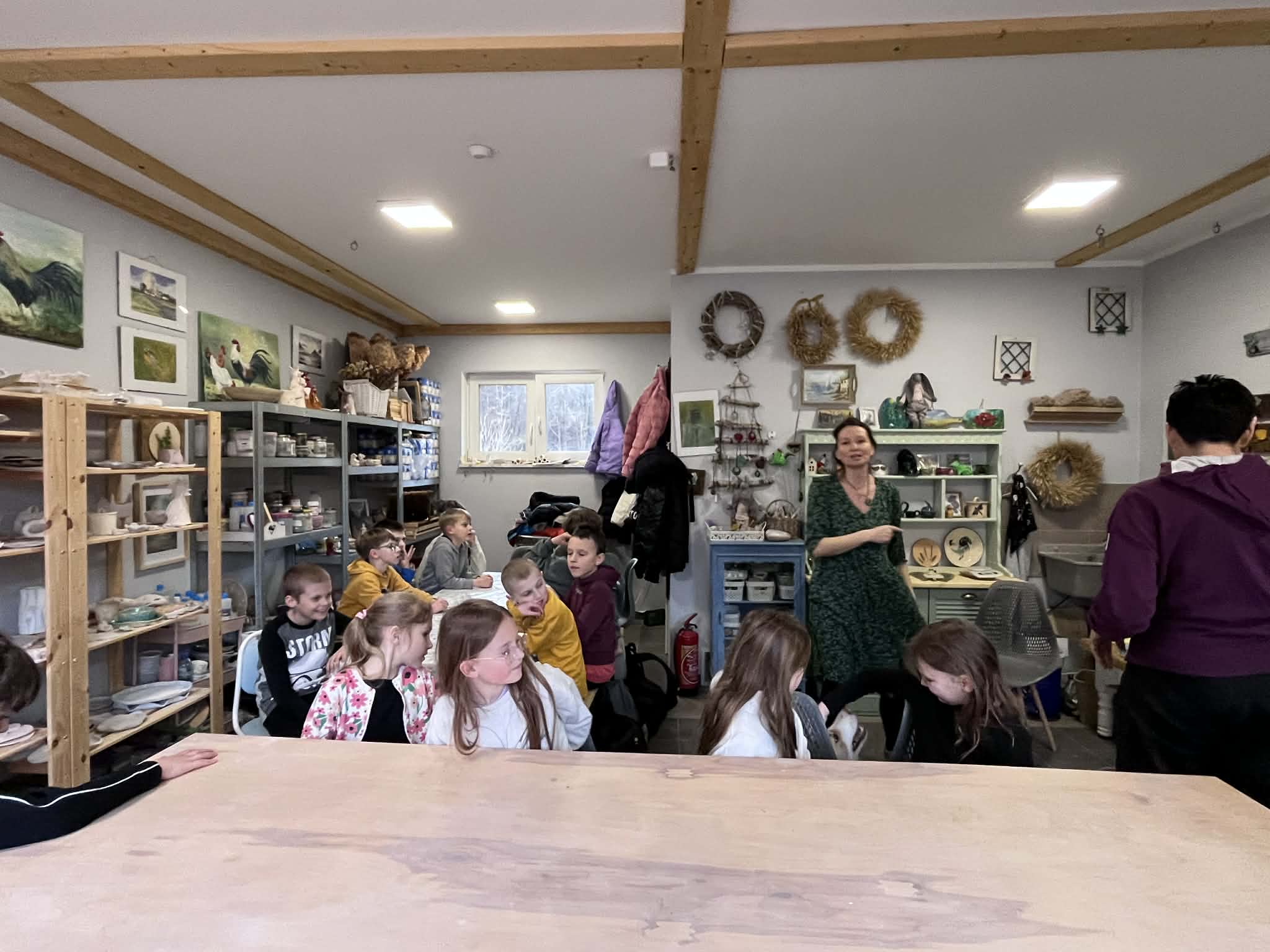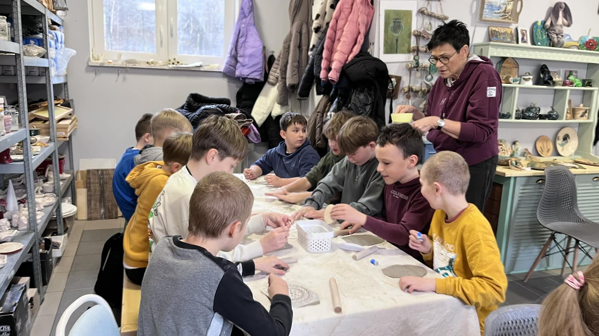 Dnia 17.03.2026r. uczniowie klasy 3b udali się na wycieczkę do urokliwej miejscowości o nazwie Bytonia. Zwiedzili tam szkołę, w której znajduje się pięknie urządzona sala kociewska. Dzieci mogły tam podziwiać stare eksponaty oraz przyjrzeć się z bliska jak wyglądał oryginalny strój kociewski. Następnie uczniowie udali się na warsztaty lepienia z gliny. Zanim dotarli na miejsce spotkania, dzieci musiały zmierzyć się jeszcze z zadaniami podczas podchodów. Na miejscu, Pani Dorota, wprowadziła wszystkich w niezwykły świat sztuki. Każdy z uczniów miał okazję zrobić własnymi rękami arcydzieło z gliny - glinianą dekorację świąteczną. Po zajęciach dzieci mogły poobcować z naturą oglądając małe zwierzątka w tym „świeżo” wyklute kurczątka. Ten dzień był niewątpliwie pełen wrażeń i pozytywnych emocji.