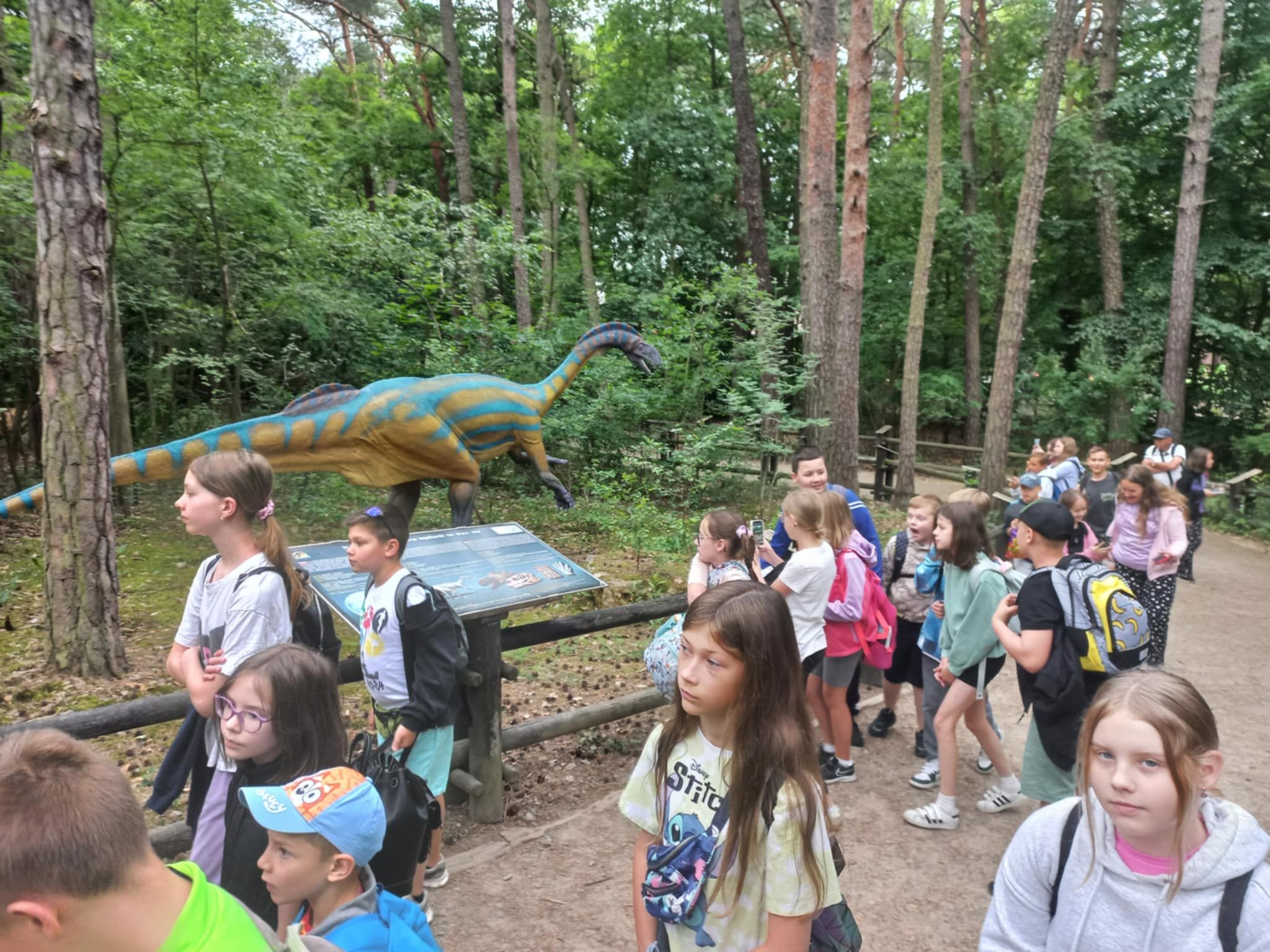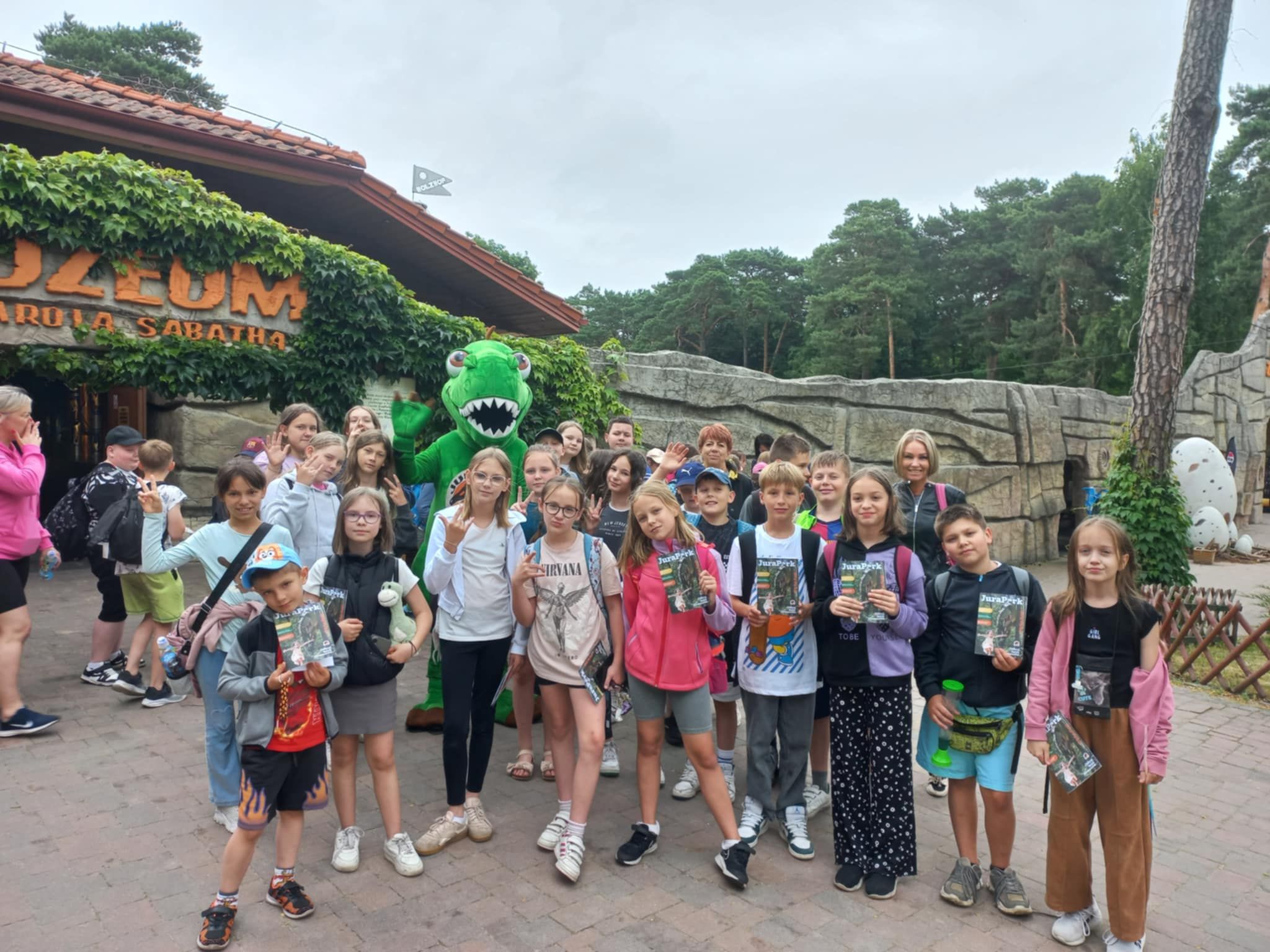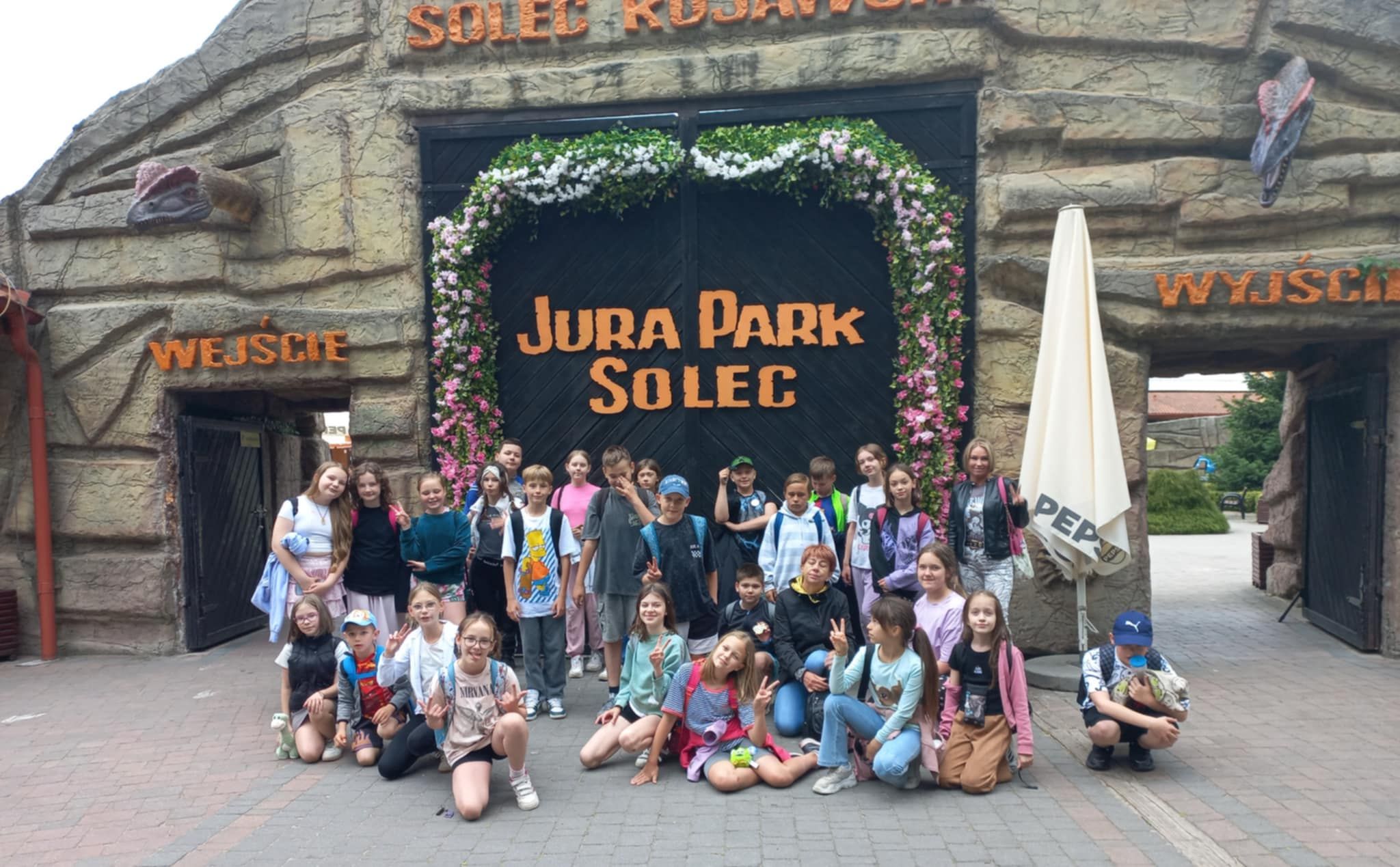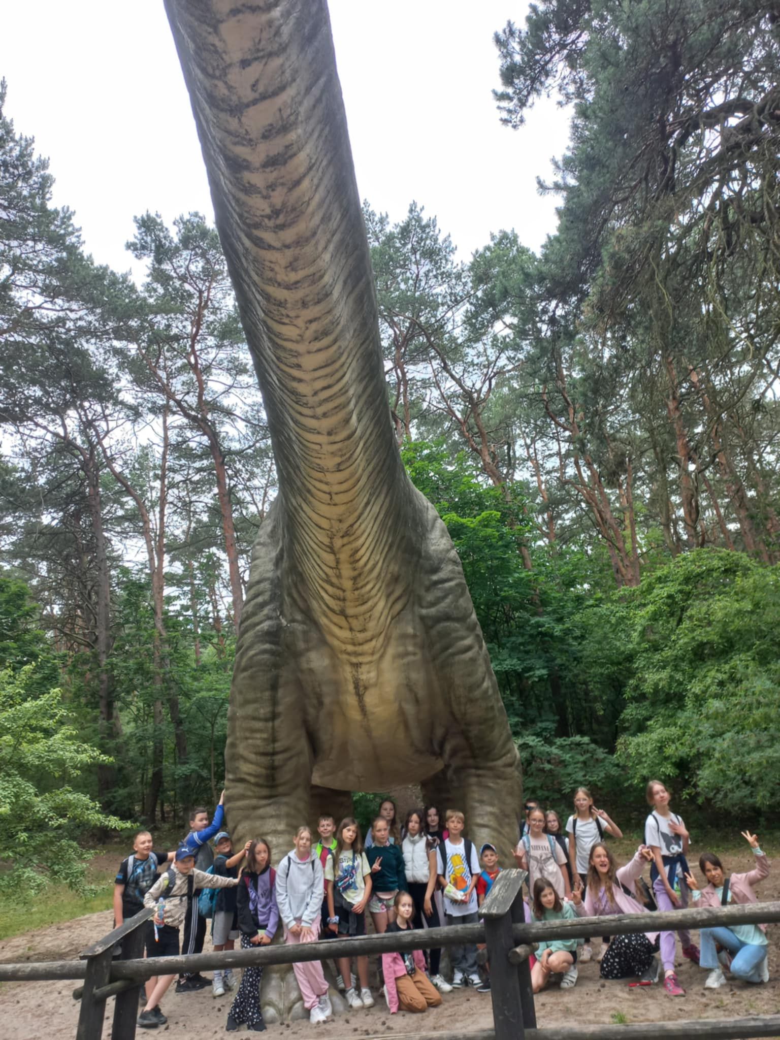 W poniedziałek 16 czerwca 2025r. uczniowie klasy 4b, wraz z opiekunami, wybrali się na klasową wycieczkę do Jura Parku w Solcu Kujawskim. Celem wycieczki było poznanie prehistorycznego świata dinozaurów, dostrzeżenie zmienności gatunków, poszerzenie zakresu zainteresowań dzieci. Czwartoklasiści wraz z przewodnikiem odbyli spacer wśród prehistorycznych stworzeń po specjalnie przygotowanej ścieżce edukacyjnej, przedstawiającej poszczególne okresy ery dinozaurów. Pośród doskonale zrekonstruowanych modeli dinozaurów dzieci zapoznały się z różnorodnością tego zaginionego już świata. Następnie wraz z przewodnikiem obejrzeliśmy Polskę w miniaturze oraz wzbogaciliśmy naszą dotychczasową wiedzę. Polska w miniaturze - to 21 miniatur zabytkowych budowli, które wykonane zostały z niezwykłą starannością i dbałością o szczegóły. Kolejnym punktem wycieczki było Kino Emocji – Cinema 3D, w którym ponownie odkrywaliśmy nowy, nieznany nam świat! Po smacznym posiłku, pełni nowych sił, ruszyliśmy do Muzeum Skamieniałości. Tam wraz z przewodnikiem, który dostarczył nam wielu ciekawych informacji wzbogacając przy tym naszą dotychczasową wiedzę, podziwialiśmy bogatą kolekcję skamieniałości z następujących po sobie okresów w dziejach Ziemi. Na koniec dużo radości dostarczyły dzieciom rozmaite atrakcje w parku zabaw - zjeżdżalnie, trampoliny, wieże, karuzele łańcuchowe, statek piracki, itp. Nie zabrakło również czasu na zakup pamiątek, które będą miłym wspomnieniem spędzonego czasu w Jura Parku.