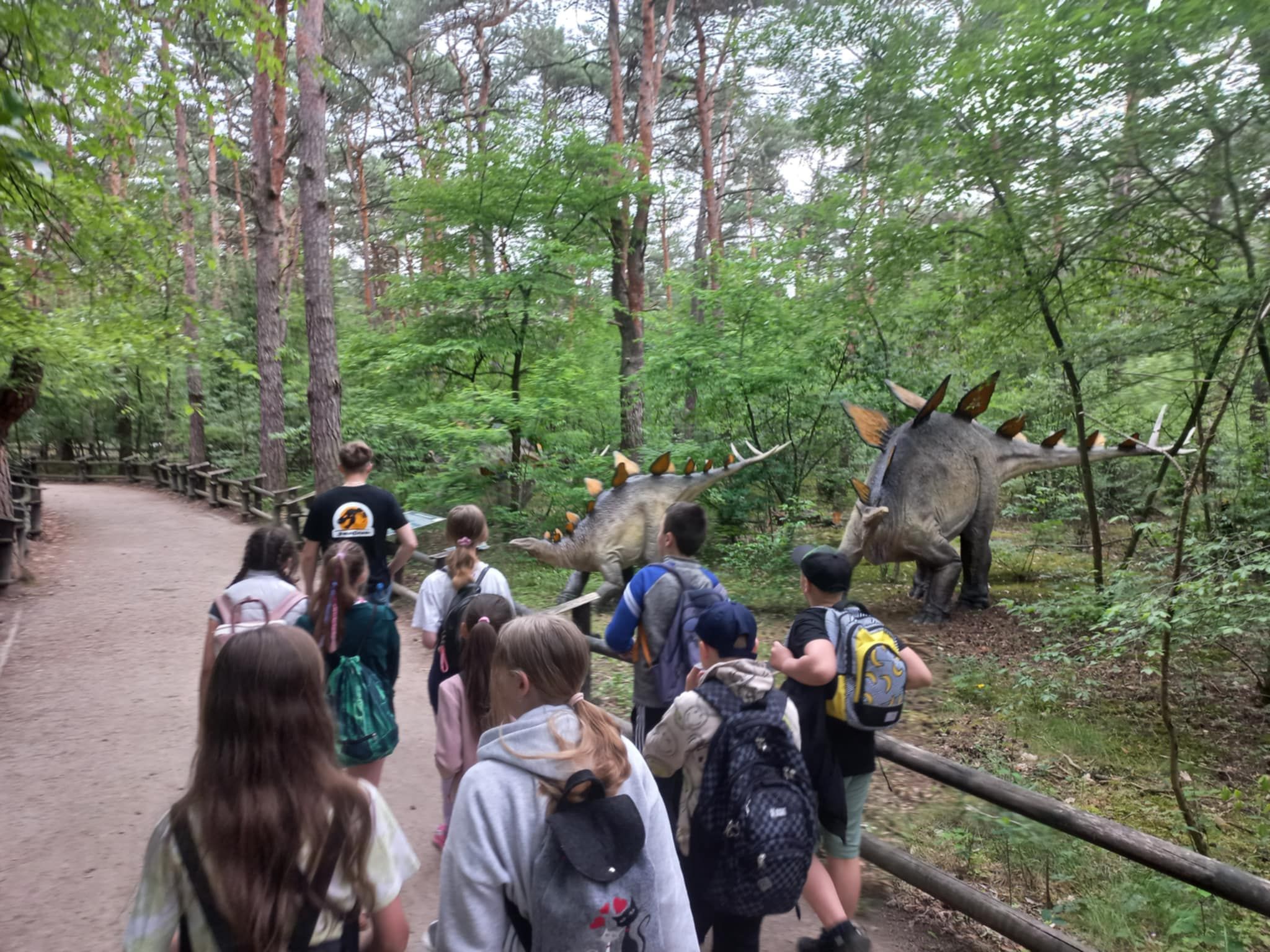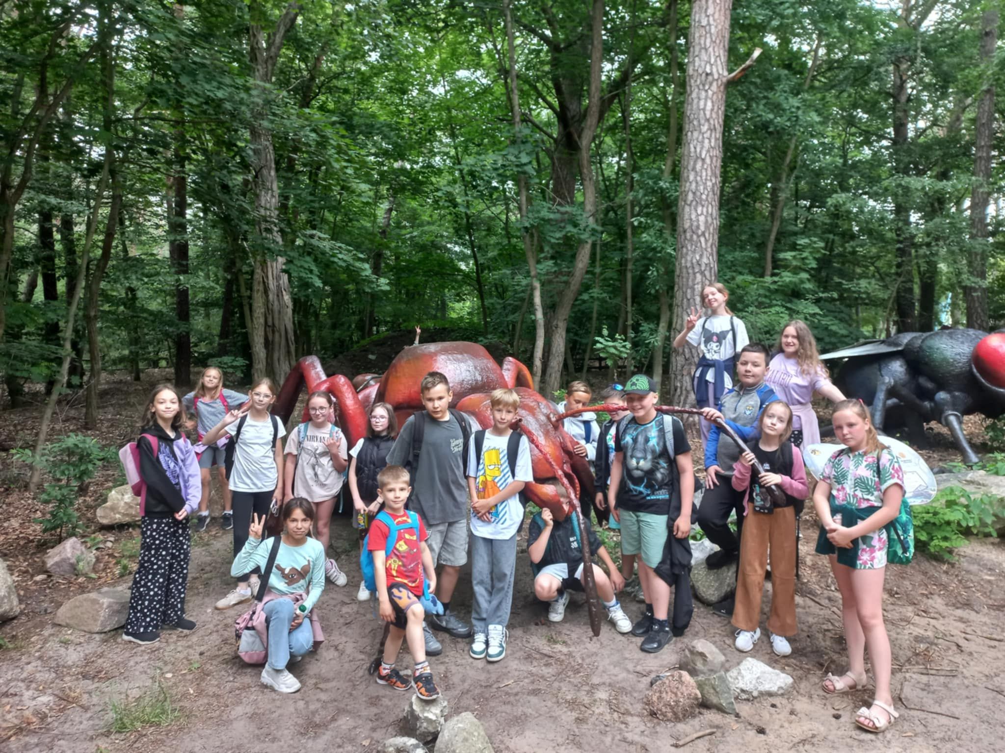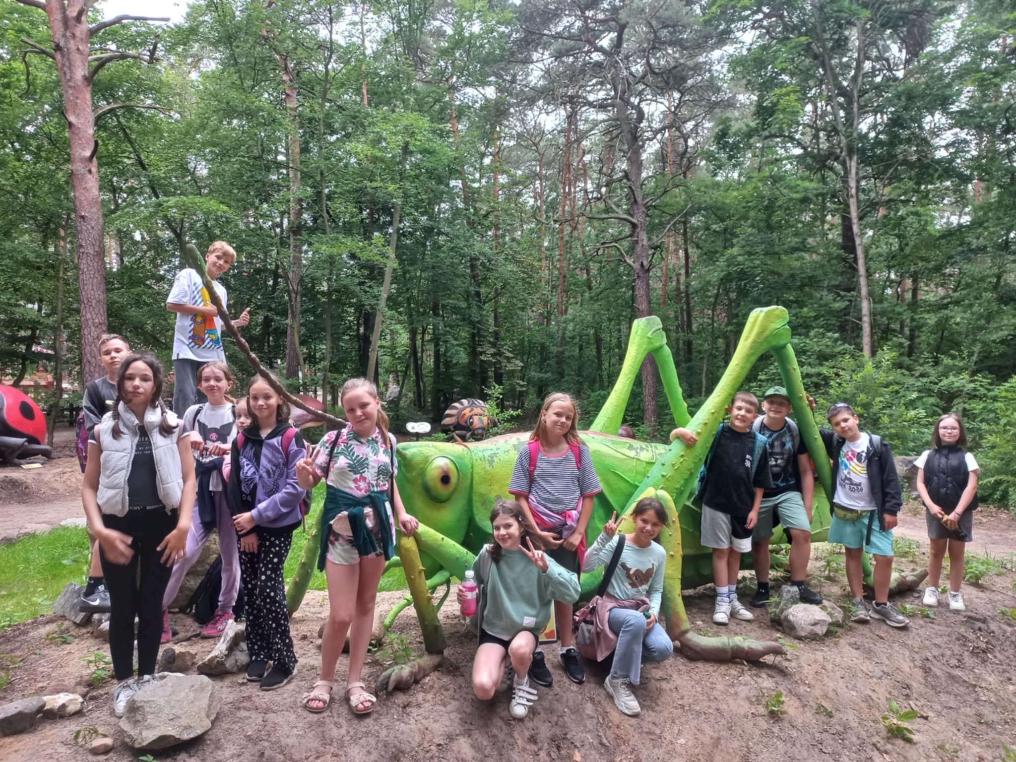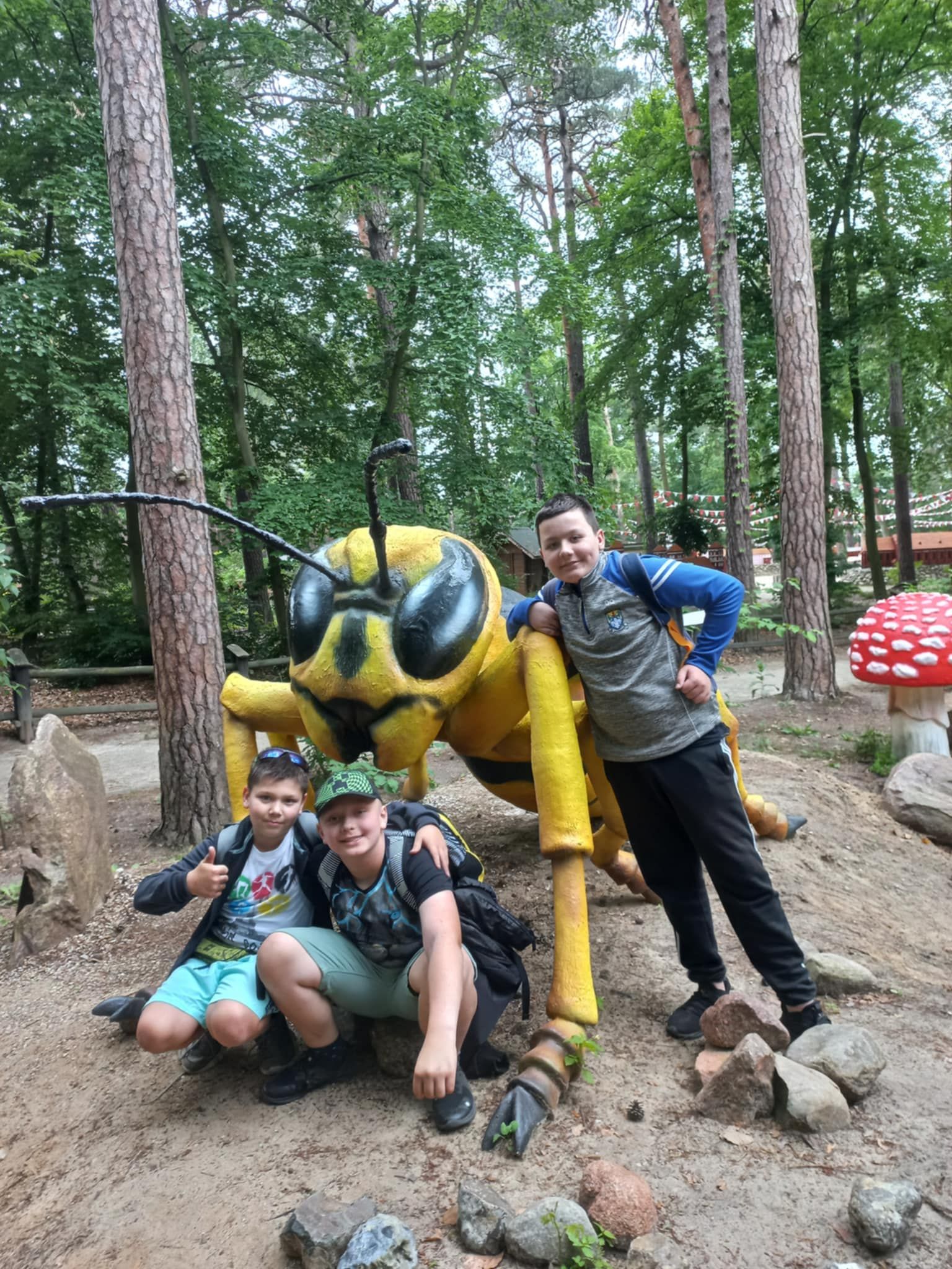 W poniedziałek 16 czerwca 2025r. uczniowie klasy 4b, wraz z opiekunami, wybrali się na klasową wycieczkę do Jura Parku w Solcu Kujawskim. Celem wycieczki było poznanie prehistorycznego świata dinozaurów, dostrzeżenie zmienności gatunków, poszerzenie zakresu zainteresowań dzieci. Czwartoklasiści wraz z przewodnikiem odbyli spacer wśród prehistorycznych stworzeń po specjalnie przygotowanej ścieżce edukacyjnej, przedstawiającej poszczególne okresy ery dinozaurów. Pośród doskonale zrekonstruowanych modeli dinozaurów dzieci zapoznały się z różnorodnością tego zaginionego już świata. Następnie wraz z przewodnikiem obejrzeliśmy Polskę w miniaturze oraz wzbogaciliśmy naszą dotychczasową wiedzę. Polska w miniaturze - to 21 miniatur zabytkowych budowli, które wykonane zostały z niezwykłą starannością i dbałością o szczegóły. Kolejnym punktem wycieczki było Kino Emocji – Cinema 3D, w którym ponownie odkrywaliśmy nowy, nieznany nam świat! Po smacznym posiłku, pełni nowych sił, ruszyliśmy do Muzeum Skamieniałości. Tam wraz z przewodnikiem, który dostarczył nam wielu ciekawych informacji wzbogacając przy tym naszą dotychczasową wiedzę, podziwialiśmy bogatą kolekcję skamieniałości z następujących po sobie okresów w dziejach Ziemi. Na koniec dużo radości dostarczyły dzieciom rozmaite atrakcje w parku zabaw - zjeżdżalnie, trampoliny, wieże, karuzele łańcuchowe, statek piracki, itp. Nie zabrakło również czasu na zakup pamiątek, które będą miłym wspomnieniem spędzonego czasu w Jura Parku.