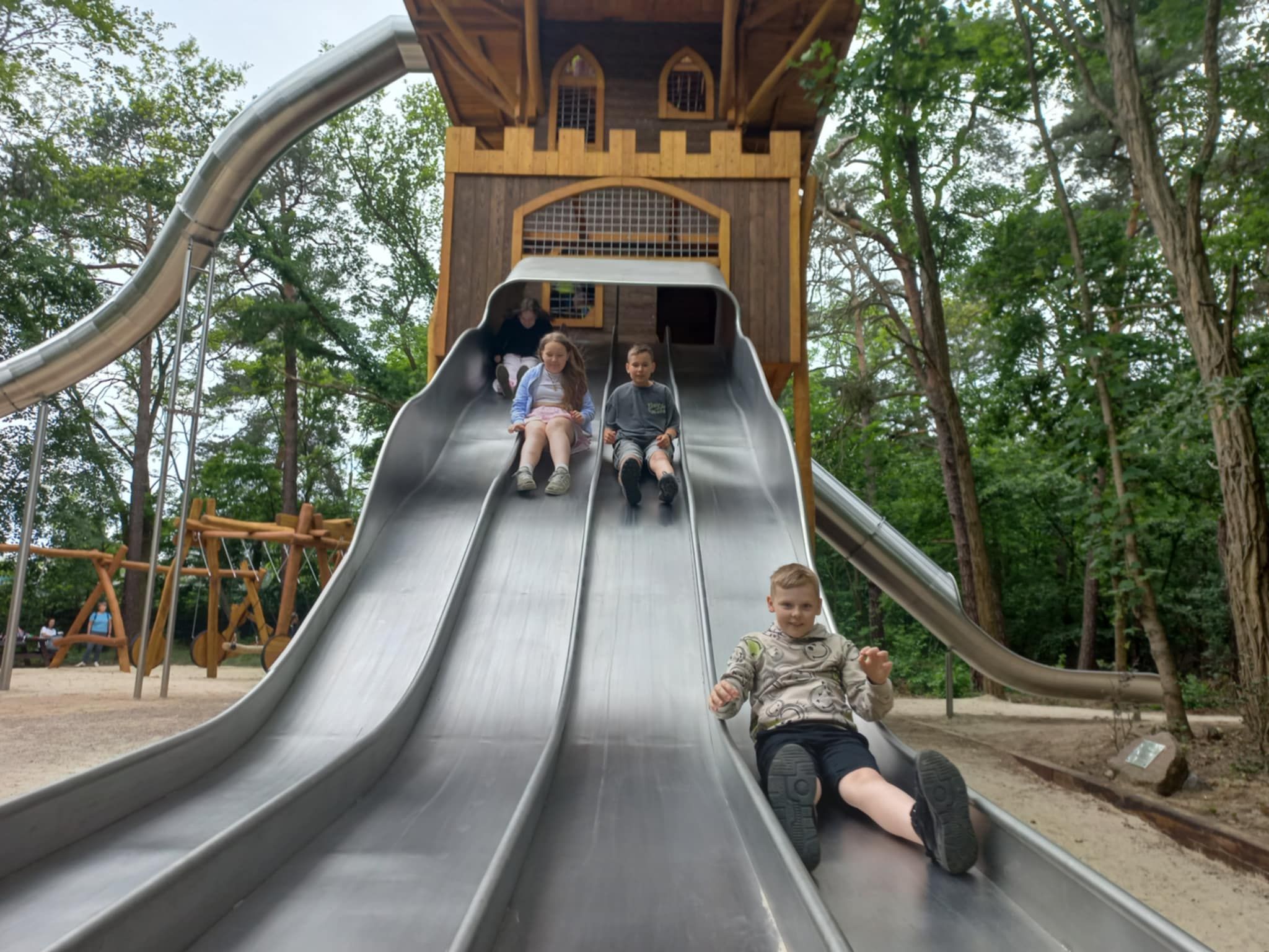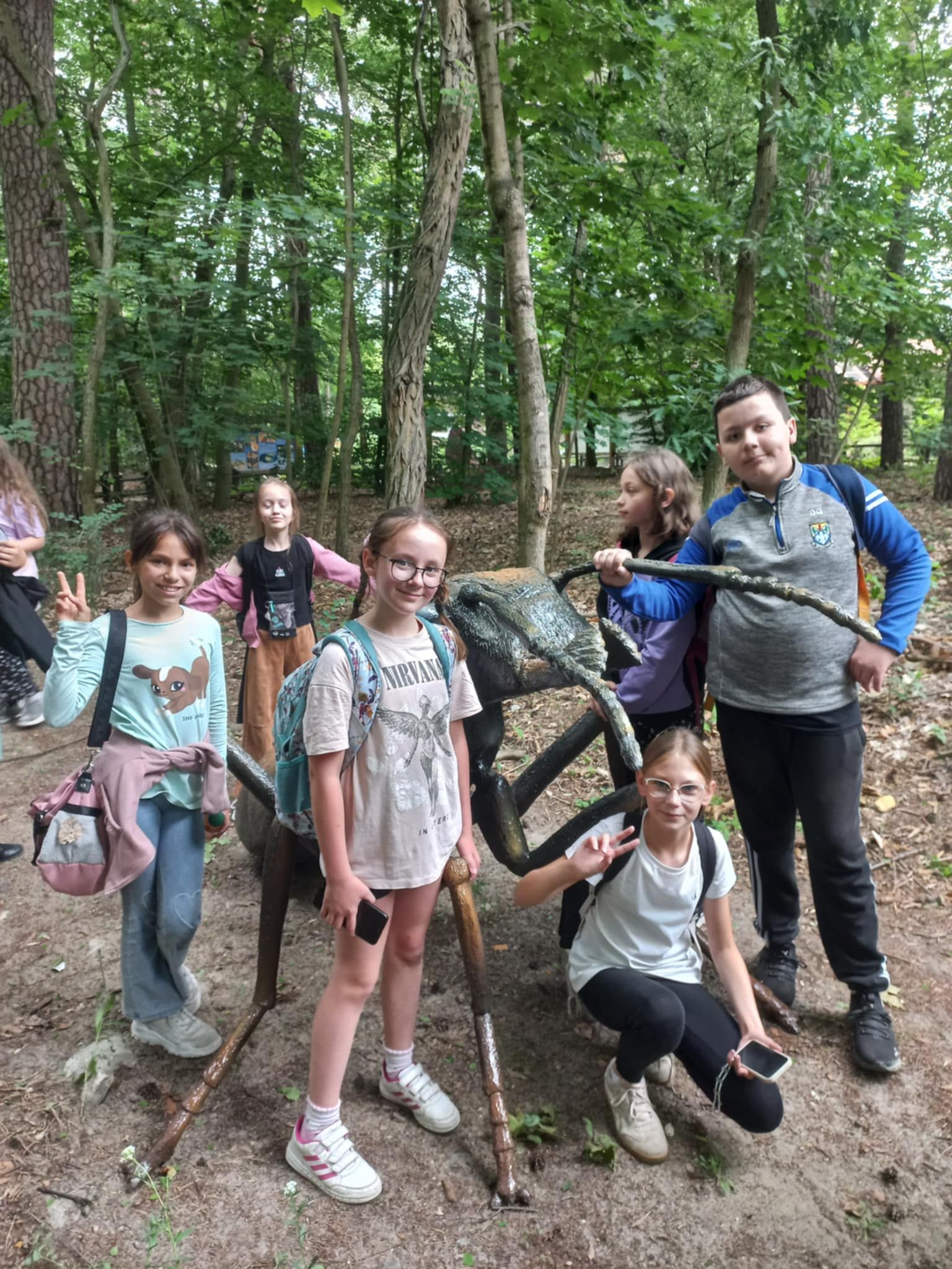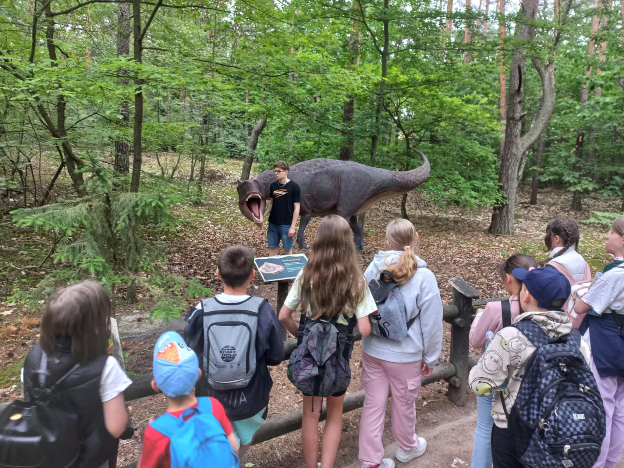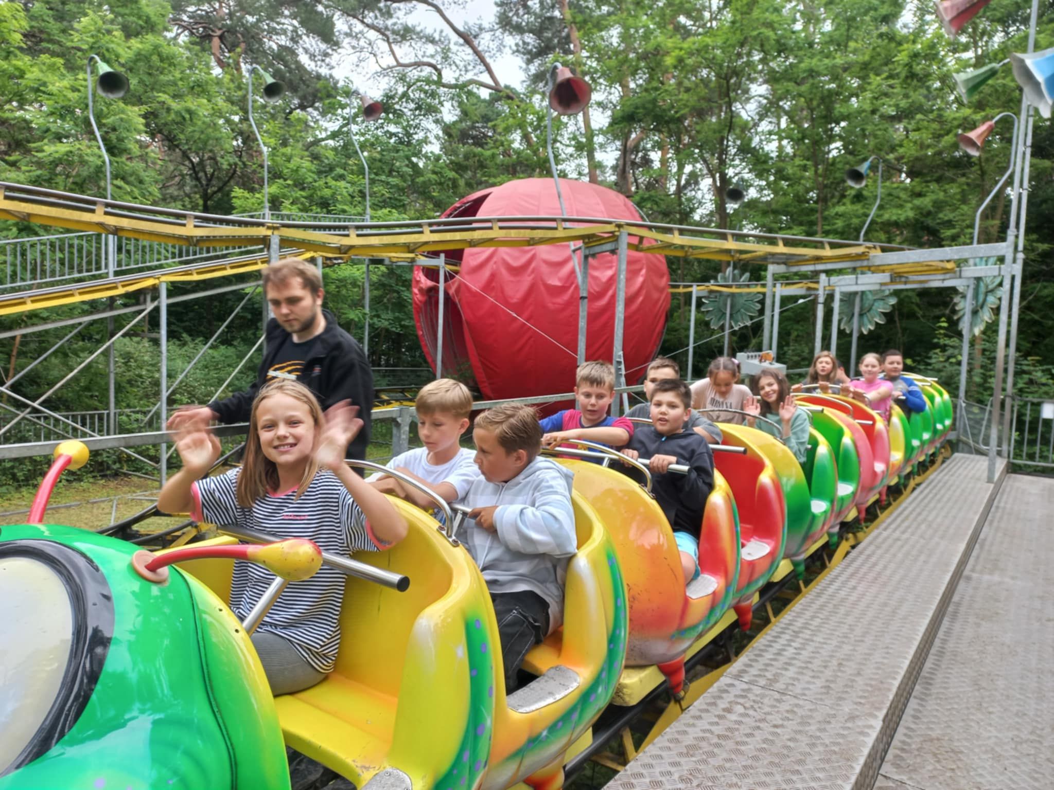 W poniedziałek 16 czerwca 2025r. uczniowie klasy 4b, wraz z opiekunami, wybrali się na klasową wycieczkę do Jura Parku w Solcu Kujawskim. Celem wycieczki było poznanie prehistorycznego świata dinozaurów, dostrzeżenie zmienności gatunków, poszerzenie zakresu zainteresowań dzieci. Czwartoklasiści wraz z przewodnikiem odbyli spacer wśród prehistorycznych stworzeń po specjalnie przygotowanej ścieżce edukacyjnej, przedstawiającej poszczególne okresy ery dinozaurów. Pośród doskonale zrekonstruowanych modeli dinozaurów dzieci zapoznały się z różnorodnością tego zaginionego już świata. Następnie wraz z przewodnikiem obejrzeliśmy Polskę w miniaturze oraz wzbogaciliśmy naszą dotychczasową wiedzę. Polska w miniaturze - to 21 miniatur zabytkowych budowli, które wykonane zostały z niezwykłą starannością i dbałością o szczegóły. Kolejnym punktem wycieczki było Kino Emocji – Cinema 3D, w którym ponownie odkrywaliśmy nowy, nieznany nam świat! Po smacznym posiłku, pełni nowych sił, ruszyliśmy do Muzeum Skamieniałości. Tam wraz z przewodnikiem, który dostarczył nam wielu ciekawych informacji wzbogacając przy tym naszą dotychczasową wiedzę, podziwialiśmy bogatą kolekcję skamieniałości z następujących po sobie okresów w dziejach Ziemi. Na koniec dużo radości dostarczyły dzieciom rozmaite atrakcje w parku zabaw - zjeżdżalnie, trampoliny, wieże, karuzele łańcuchowe, statek piracki, itp. Nie zabrakło również czasu na zakup pamiątek, które będą miłym wspomnieniem spędzonego czasu w Jura Parku.