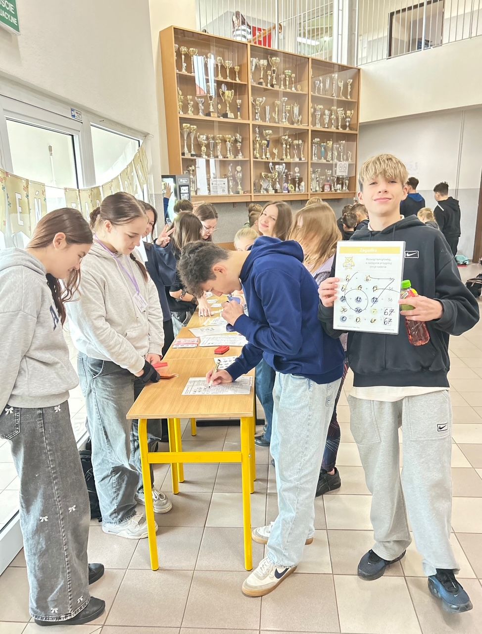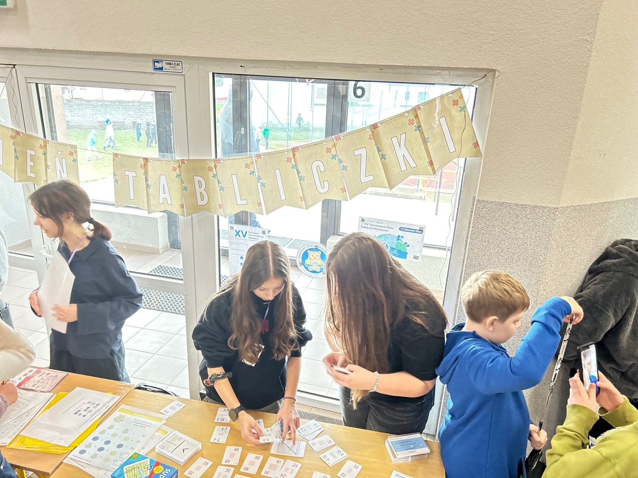 W piątek, 21 listopada obchodziliśmy w naszej szkole XIII Światowy Dzień Tabliczki Mnożenia. Celem akcji, w której uczestniczyliśmy, było propagowanie nauki matematyki poprzez zabawę. Uczniowie w przyjemny, niecodzienny sposób mogli przypomnieć sobie tabliczkę mnożenia. Koordynatorkami tego przedsięwzięcia w naszej szkole były panie: Joanna Kowalonek, Dorota Kołtonowska i Magdalena Mięsiak. W myśl tegorocznego hasła: „Młodsi sprawdzają czy starsi tabliczkę mnożenia znają” w czasie każdej przerwy międzylekcyjnej egzaminatorzy z klas piątych przepytywali chętne osoby ze znajomości tabliczki mnożenia. Każdy, kto odpowiedział prawidłowo na pięć wylosowanych pytań, otrzymał odznakę Eksperta Tabliczki Mnożenia. Jeżeli egzamin skończył się niepowodzeniem, można było do niego ponownie przystąpić podczas kolejnej przerwy. Ponadto uczniowie, pod czujnym okiem ósmoklasistek, mogli rozwiązywać łamigłówki matematyczne oraz ćwiczyć tabliczkę mnożenia korzystając z Kart Grabowskiego. Światowy Dzień Tabliczki Mnożenia poprzedzony został konkursem „Mistrz Szybkiego Liczenia z MATZOO”, który został przeprowadzony na lekcjach informatyki przez pana Jacka Kujawę. W ramach obchodów ŚDTM przeprowadzony został również konkurs plastyczny, który polegał na przygotowaniu plakatu promującego tabliczkę mnożenia. Prace uczniów zostały wyeksponowane na szkolnej gazetce. Na zakończenie, w poniedziałek, 24 listopada uczniowie z klas 4 – 8 wzięli udział w corocznym już konkursie matematycznym „Mistrz Rachunku 2025”. Wyniki z wszystkich konkursów zostaną ogłoszone niebawem. Światowy Dzień Tabliczki Mnożenia to świetna inicjatywa propagująca matematykę, a przy okazji doskonała zabawa.